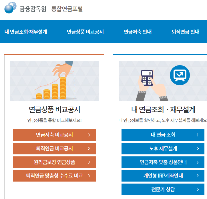 금융감독원에서 제공하는 통합연금포털 홈페이지에서 내 연금 정보를 모아 볼 수 있습니다.