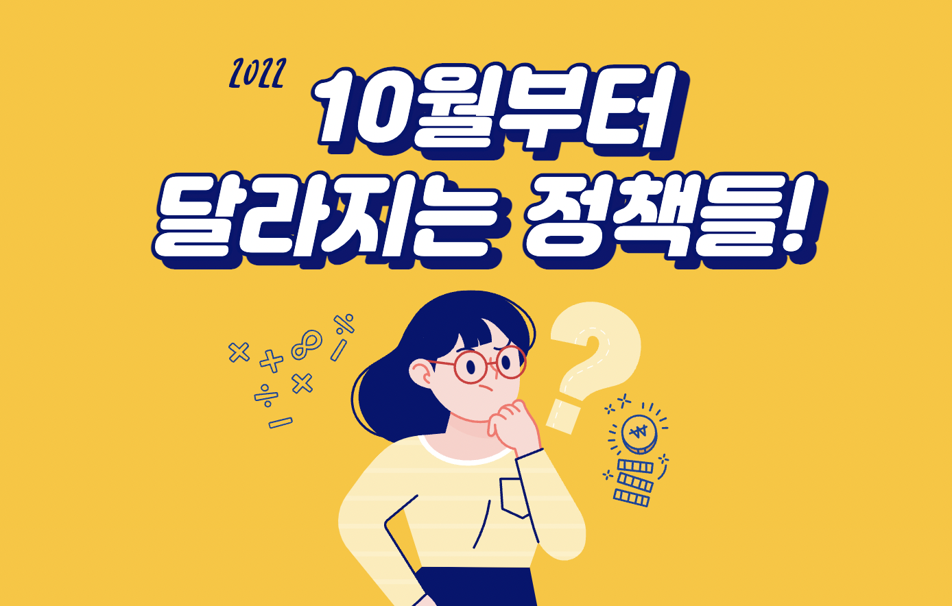 2022년이 벌써 10월이 시작되었습니다. 10월부터 바뀌는 주요한 정책들을 정리해 보고 손해 보거나 아쉬운 일들 없기를 바라봅니다.