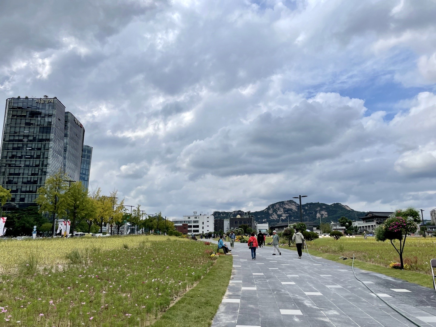 잔디밭에는 다양한 꽃들이 피어 있어서 사진도 많이 찍을 것 같고 아이들이 많이 뛰놀겠지. 이런 저런 걸 떠나서 광장은 늘 좋긴하다. 이 부지가 서울광장 크기의 3배가 된다고 한다. 쉼과 문화가 있는 열린광장이라고 했으니 여러 문화 행사를 기대해봐도 되지 않을까?