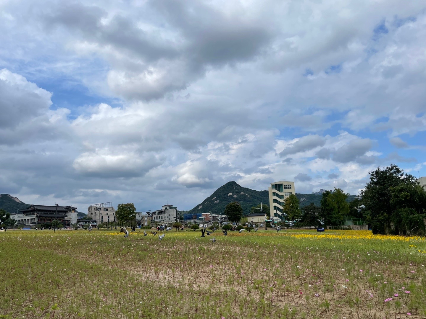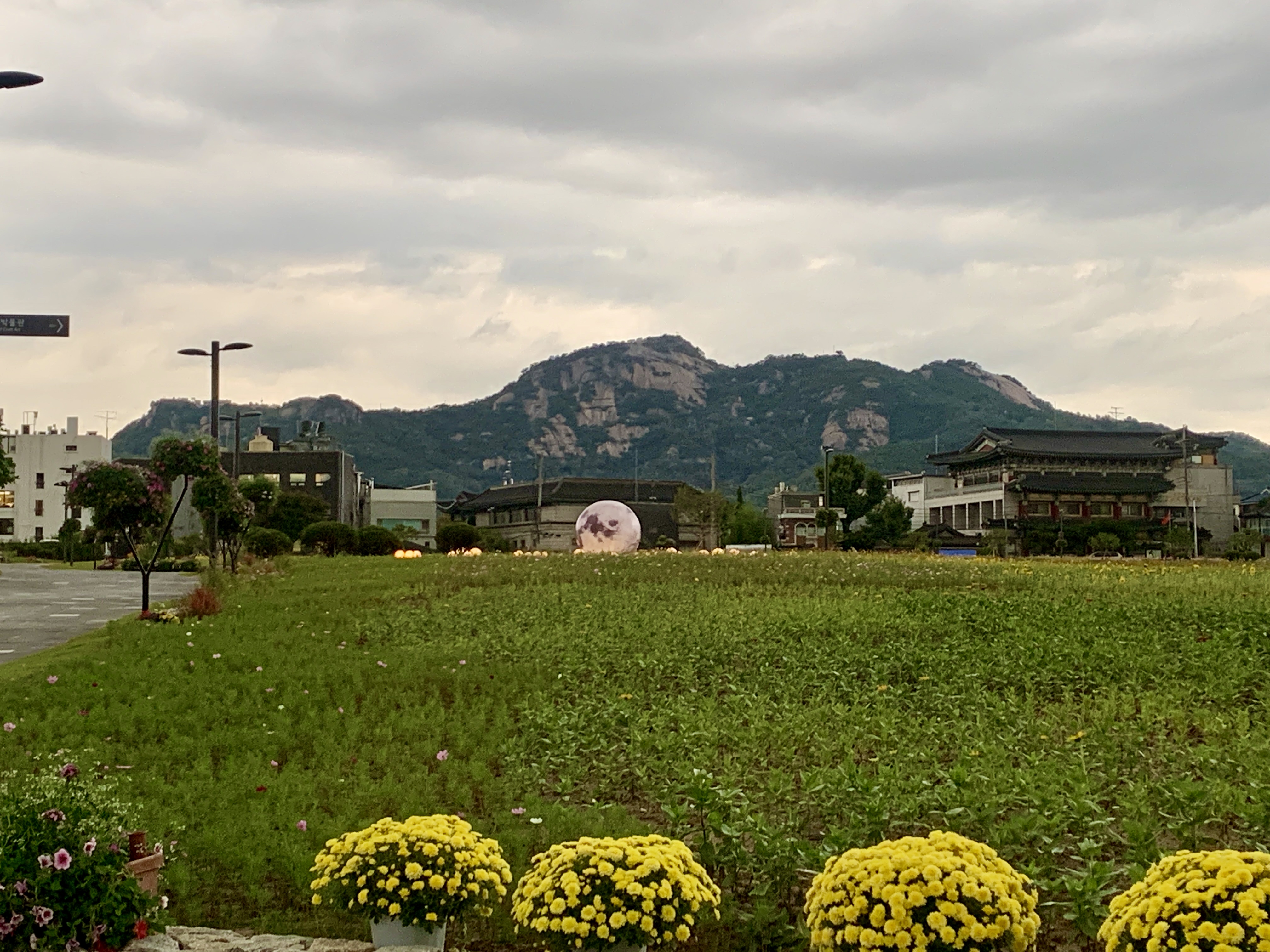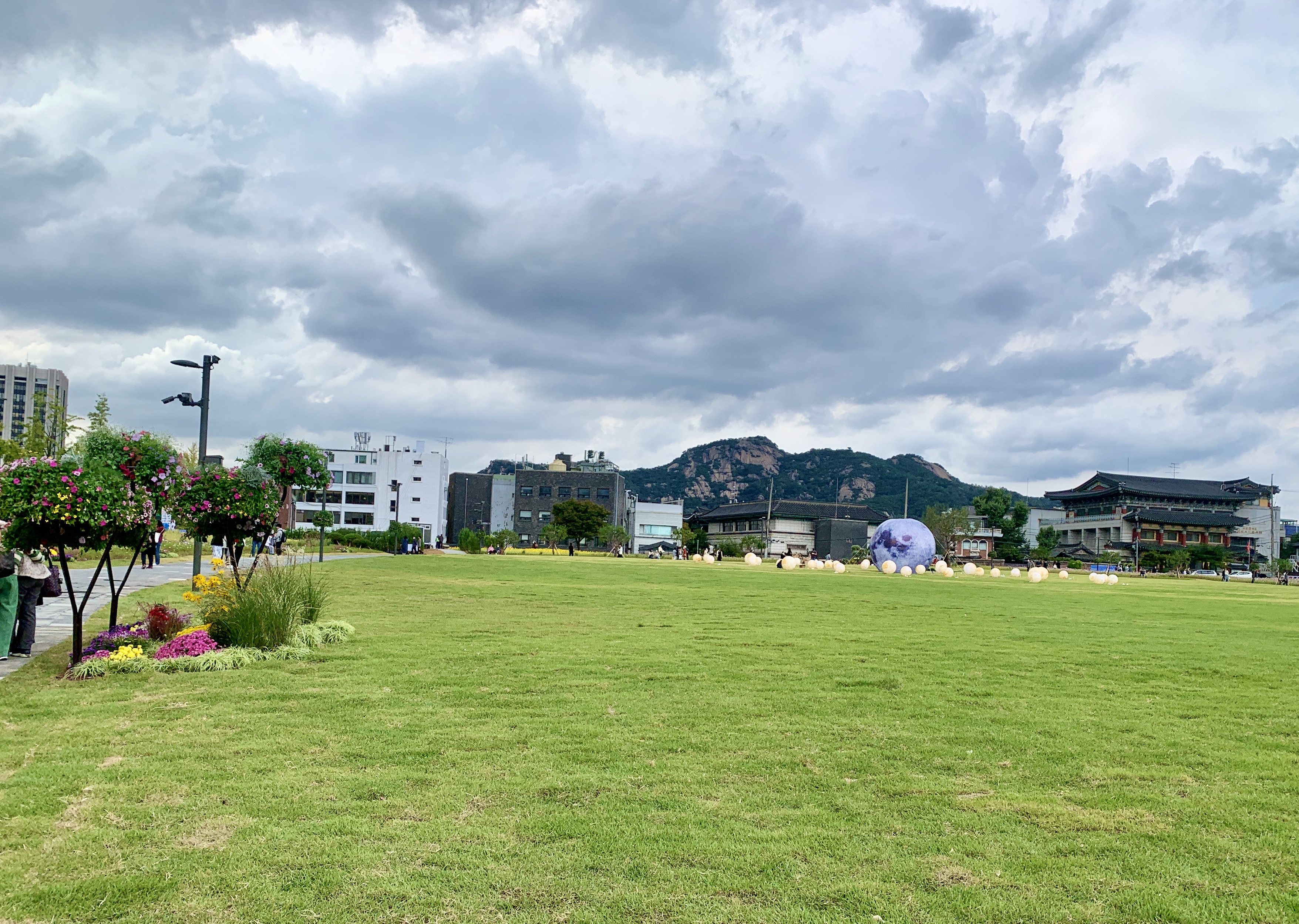 담장의 높이도 1.2m로 낮아져서 주변에서 송현 녹지 광장을 시원하게 바라볼 수 있다. 이 부지가 경복궁 쪽을 가로막고 있었는데 이제는 보행도 할 수 있으니 많은 사람들이 오고갈 수 있을 듯. 저녁에는 멀리 남원루에서 봤던 비슷한 조형물이 보인다. 아무쪼록 서울의 아름다움을 많은 시민들이 즐길 수 있는 공간이 되길.