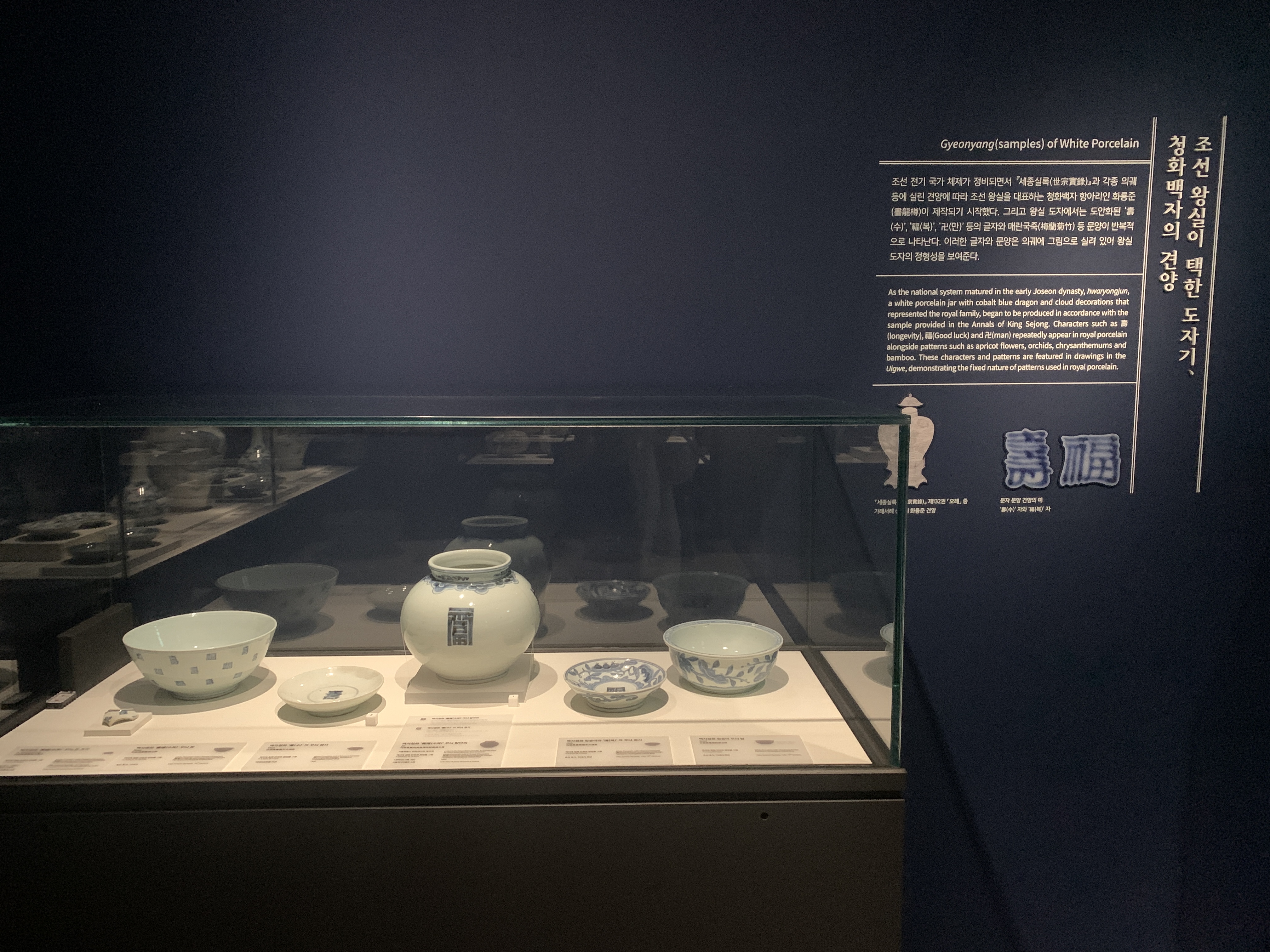 조선 왕실의 도자기, 청화백자의 견양. 조선 왕실을 대표하는 청화백자 항아리 화룡준이 제작되고 왕실 도자에서는 매란국죽(매화나무 매, 난초 란, 국화 국, 대 죽) 등의 문양이 반복적으로 나타나는 것을 확인할 수 있다.