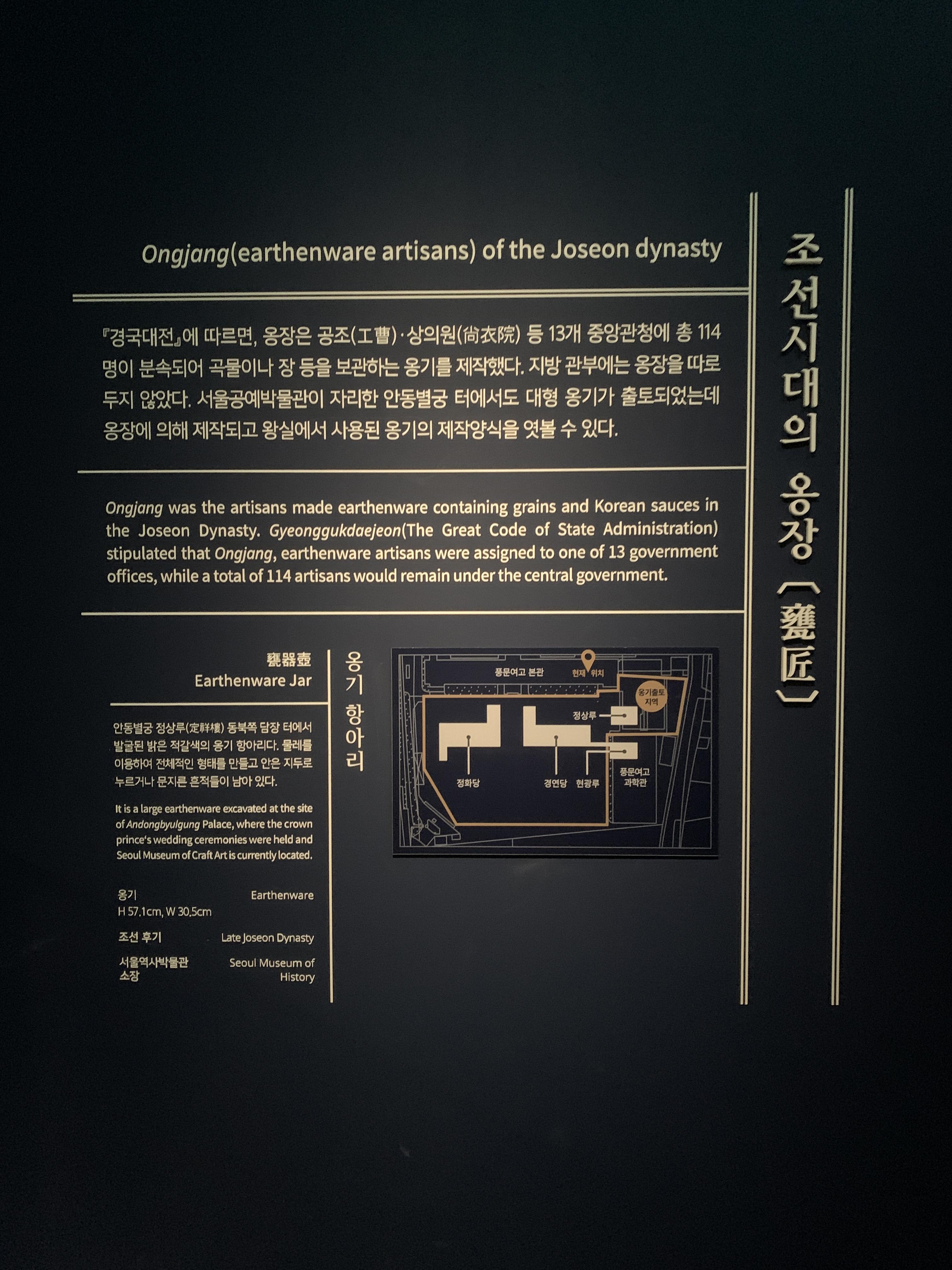 조선시대의 옹장, 옹장은 옹기 만드는 일을 직업으로 하는 사람을 뜻한다. 조선시대의 장인이다. 서울공예박물관이 위치한 안동별궁 터에서도 대형 옹기가 출토되었다고 한다.