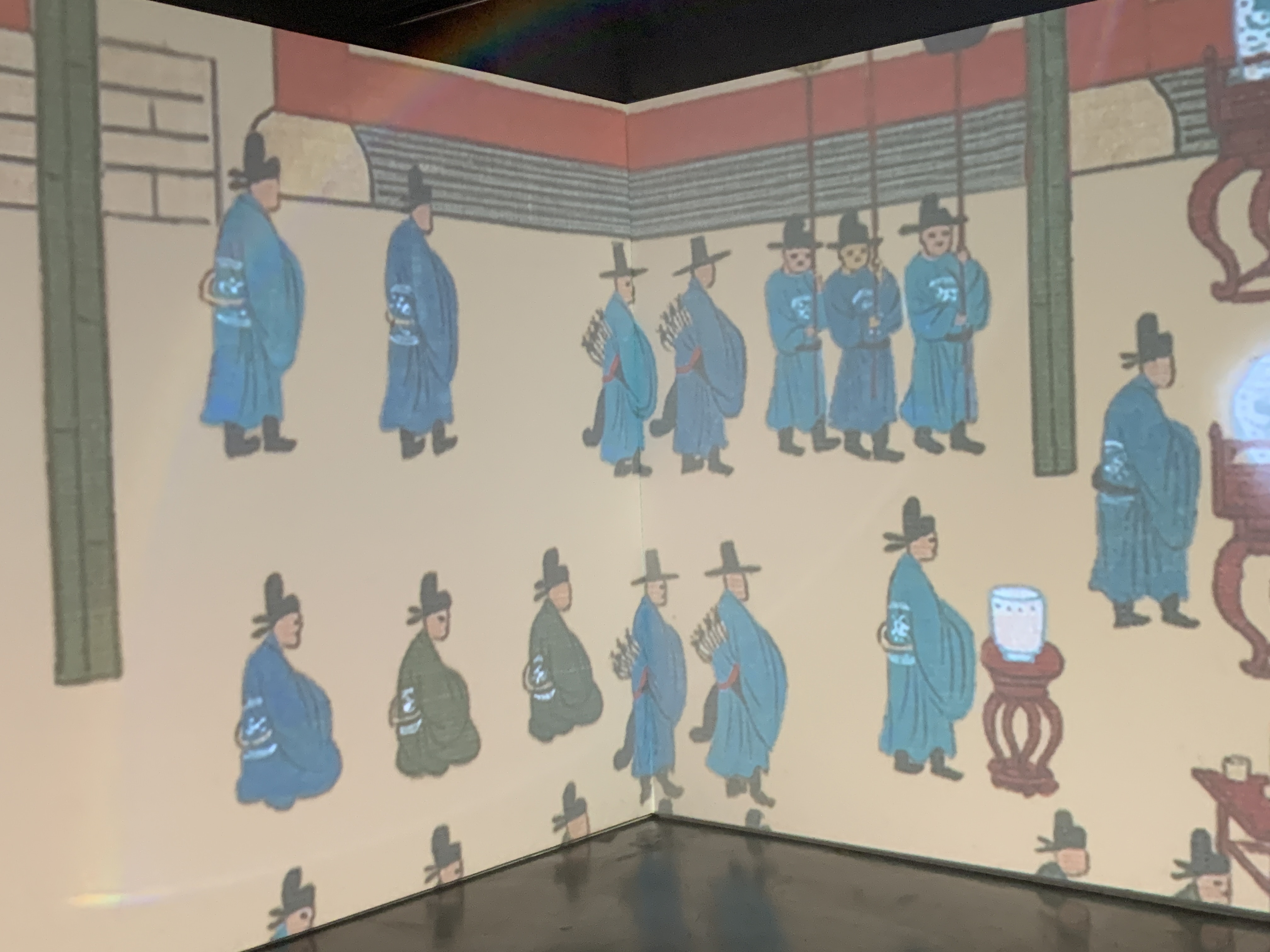 이번에는 의복 쪽의 견양이다. 복식은 그 시대에서 특히나 신분을 드러내는 것이었고 대표적인 공예품이다. 비단짜기, 바느질, 금박, 자수 등 복식 제작과 관련된 장인들이 많았다. 박물관에는 당의, 왕비 보 등의 옷들을 전시해두고 있다.
