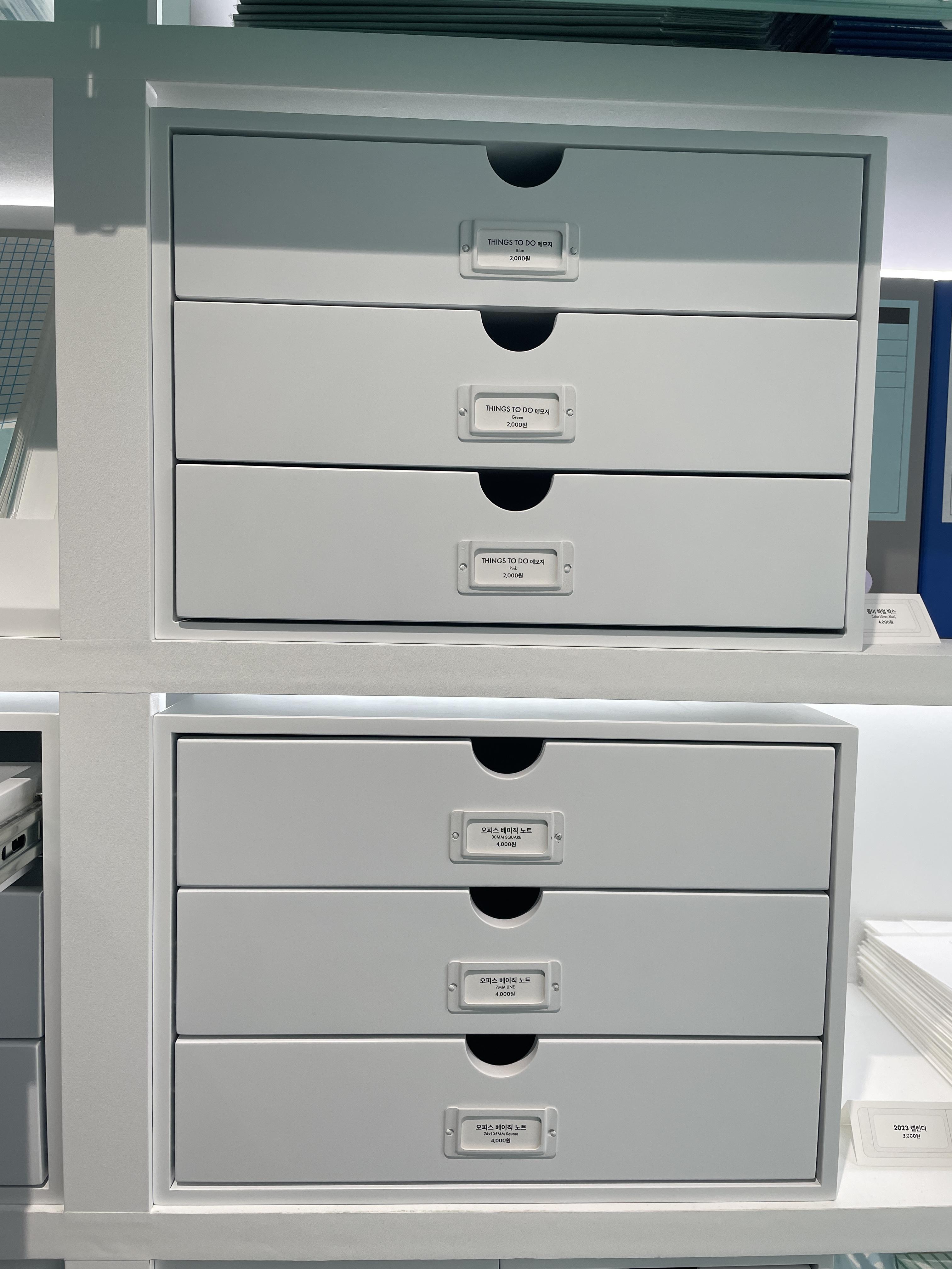 이 서랍들을 열면 노트, 메모지 등이 들어있다. 메모지도 메모지인데 이 서랍이 예쁘더라. 이건 파는거 아닌가.