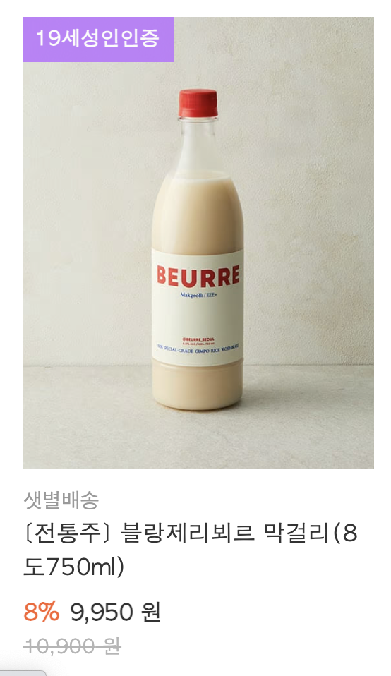 블랑제리뵈르 막걸리 (9,950원 마켓컬리 입점)