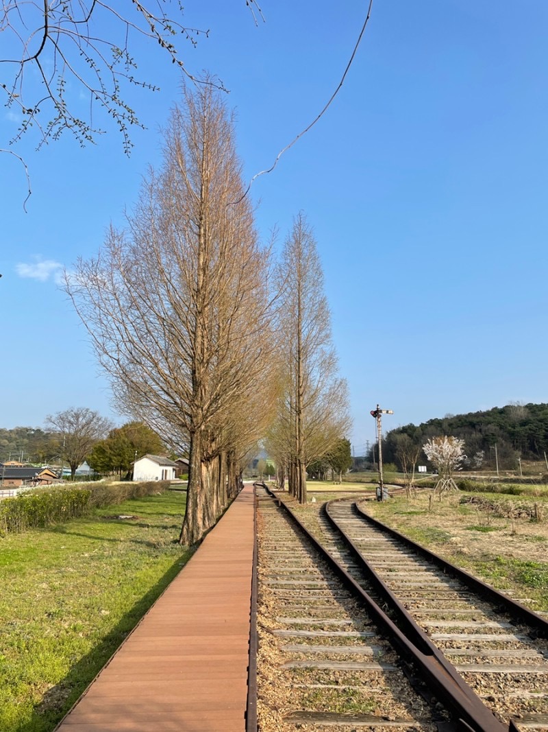 원래 기차길이었던 곳이라 쭉 철도가 있다. 우리나라에서 가장 오래된 목조 기차역이기도 하다. 시골풍경은 마음을 평안하게 해주는 힘이 있다. 어렸을 때도 그 흔한 시골 할머니댁이 없어서 그런가 시골에 대한 로망이 있는듯하다.