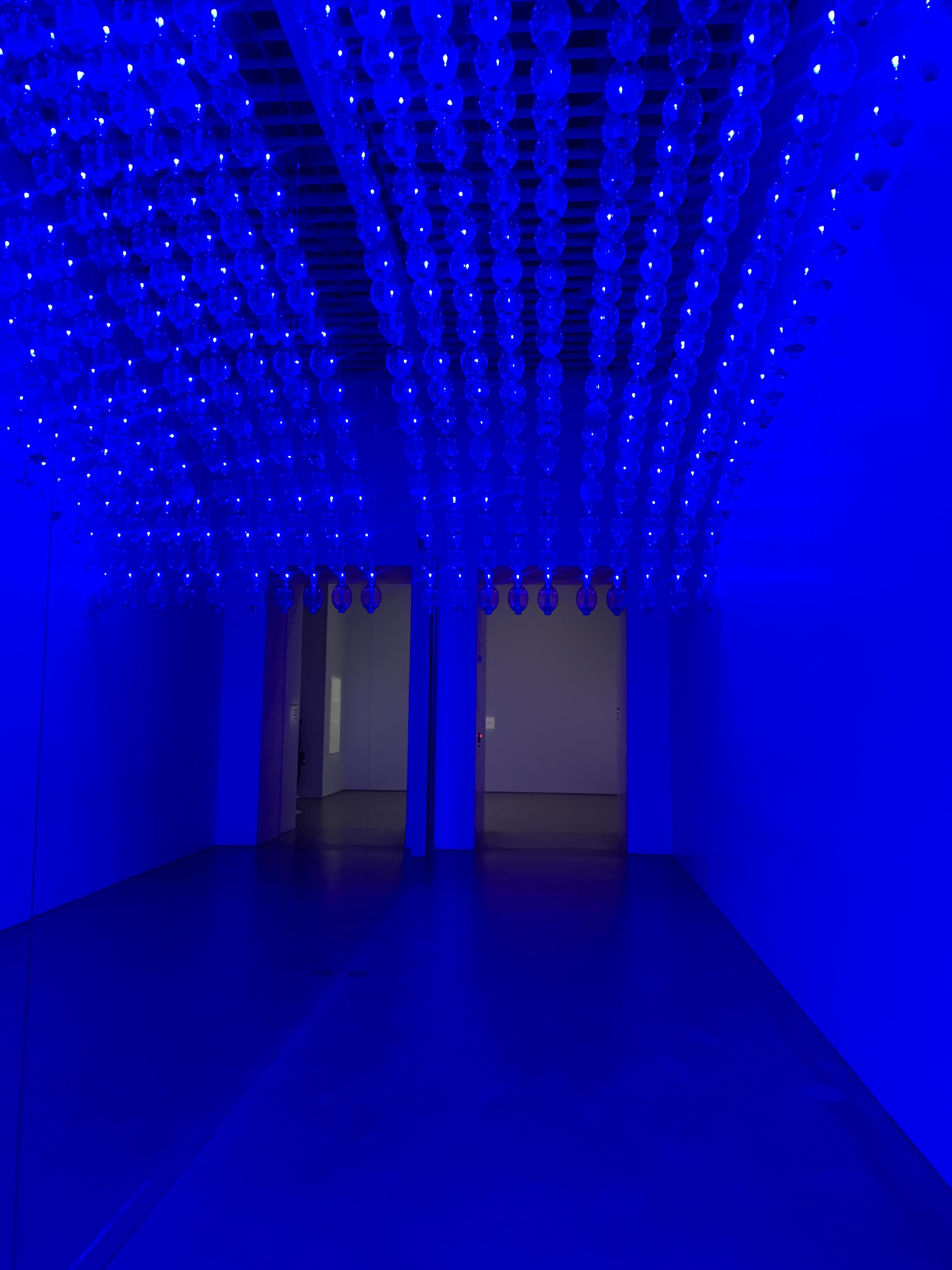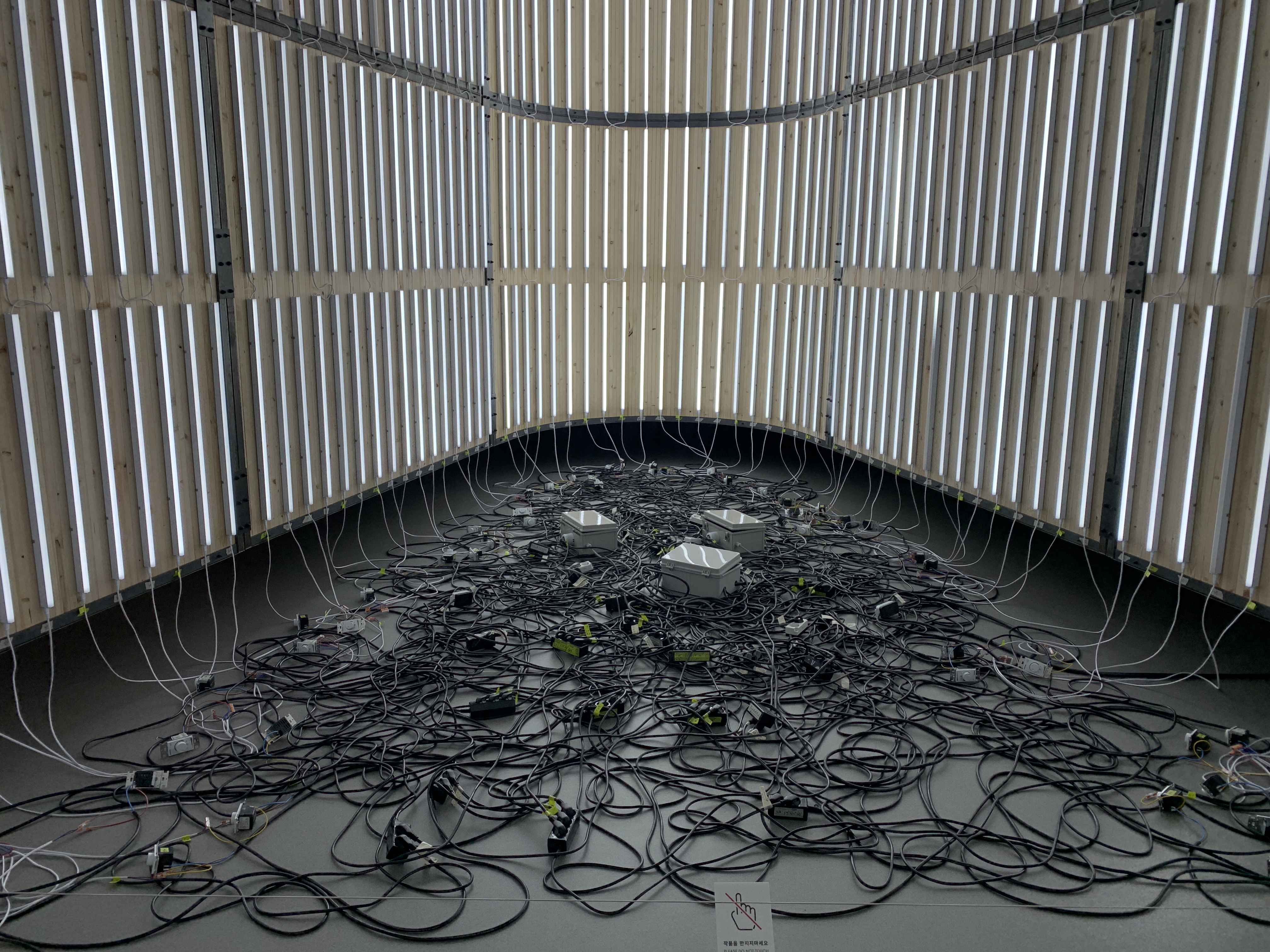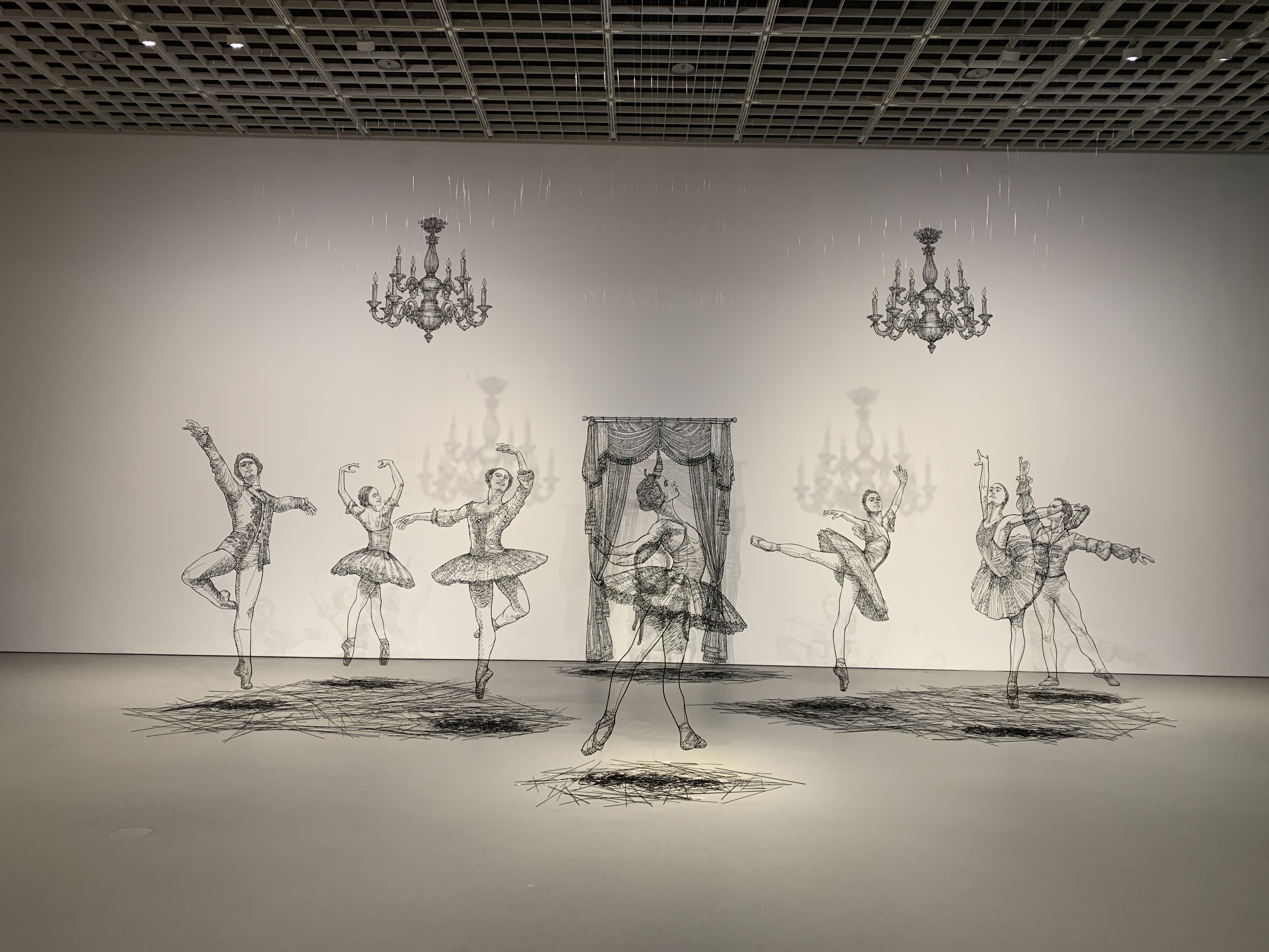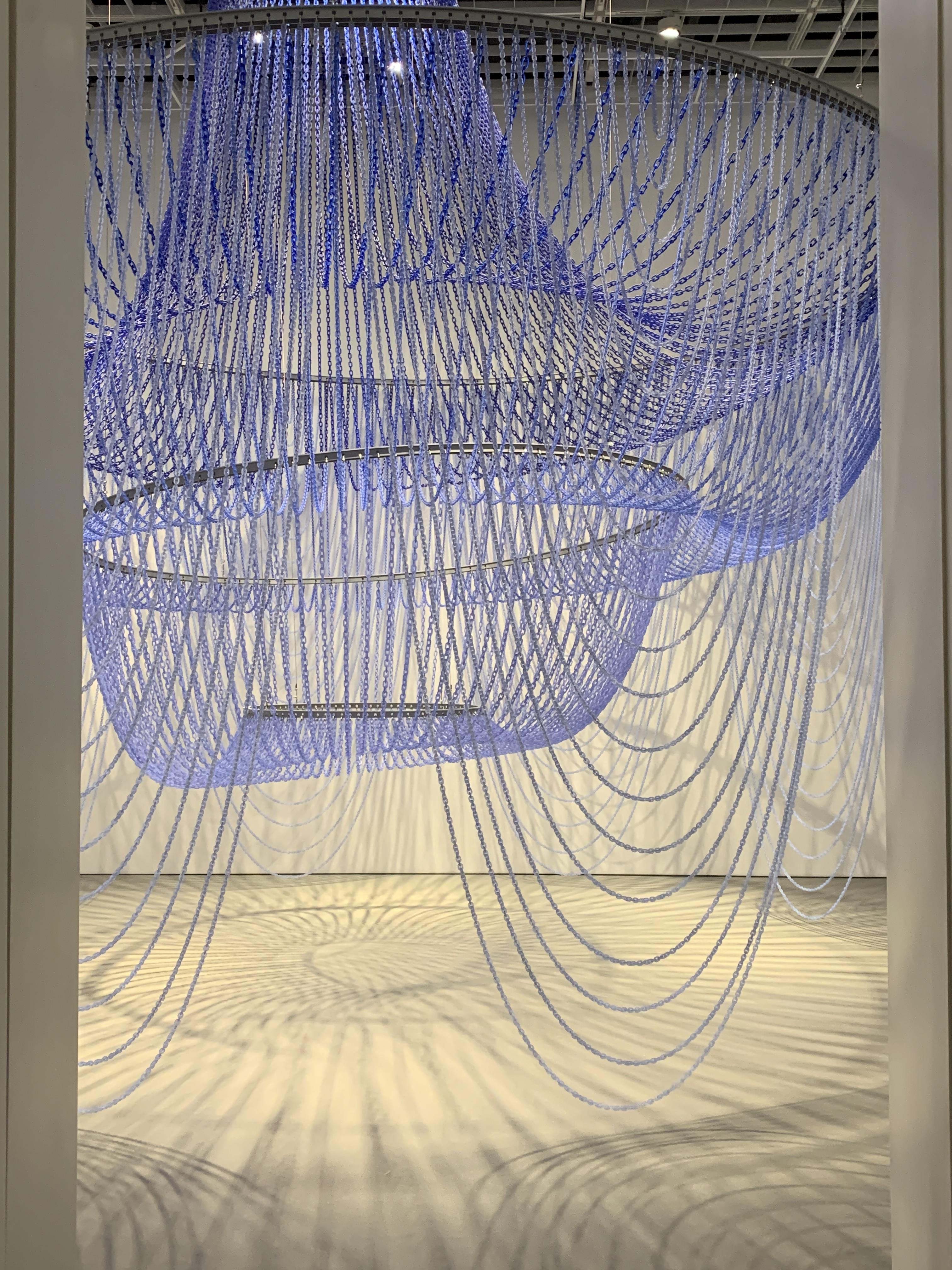 아주 큰 샹들리에 같았던 작품. 양 끝이 고정되어 있는 끈이 중력에 의하여 이루는 자연스러운 곡선의 모양을 현수선이라 하는데 이 원리를 이용해서 당기고 늘어뜨려지는 방식으로 만들어진 작품이다. 늘어뜨러진 수많은 곡선이 아름다웠다.