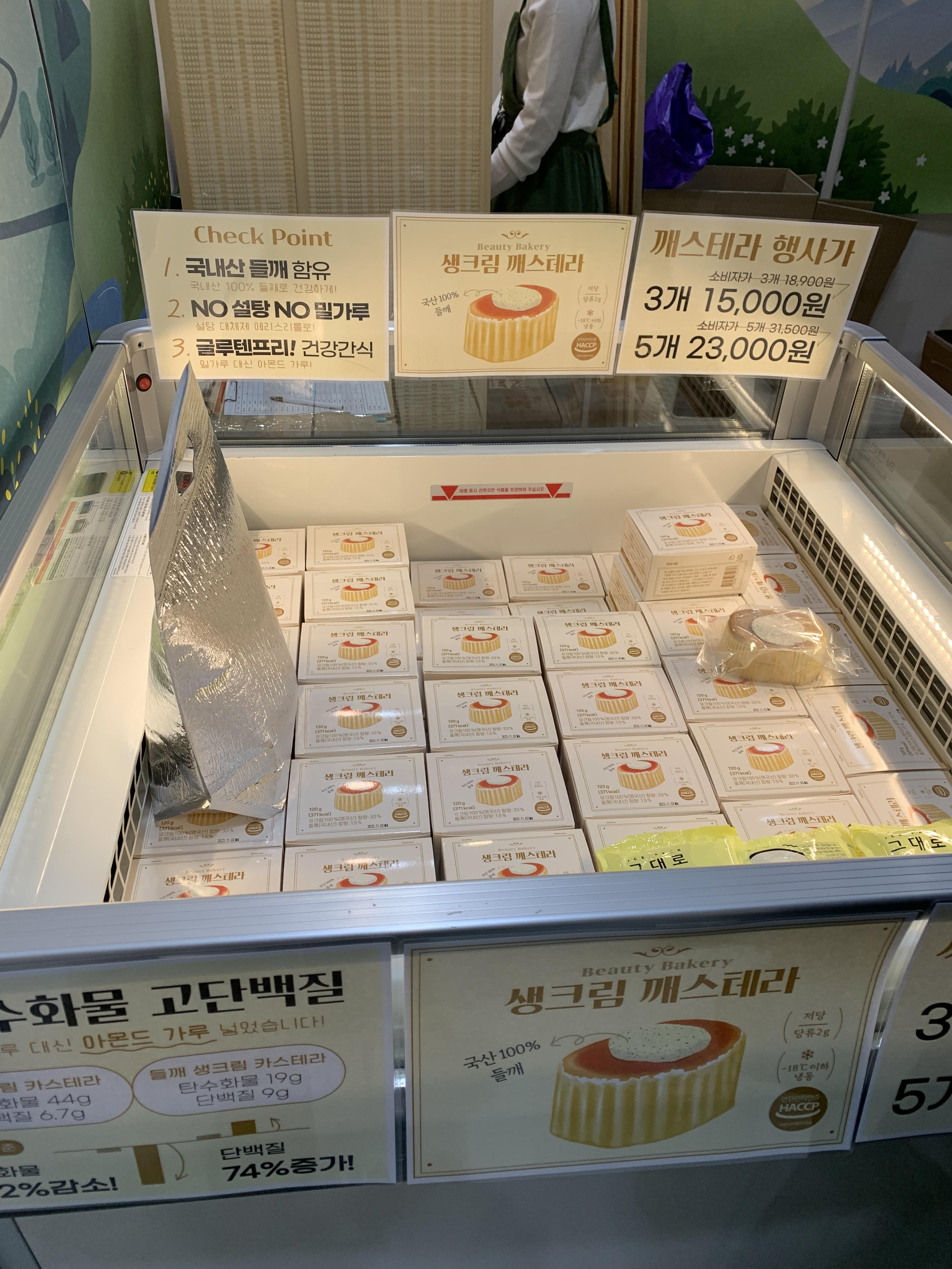 맨 윗층에는 식품들이 갑작스럽게 많아집니다. 깨스테라. 밀가루 대신 아몬드 가루가 들어가고 들깨도 들어가서 아이들 간식으로 좋을 것 같아 보이네요.