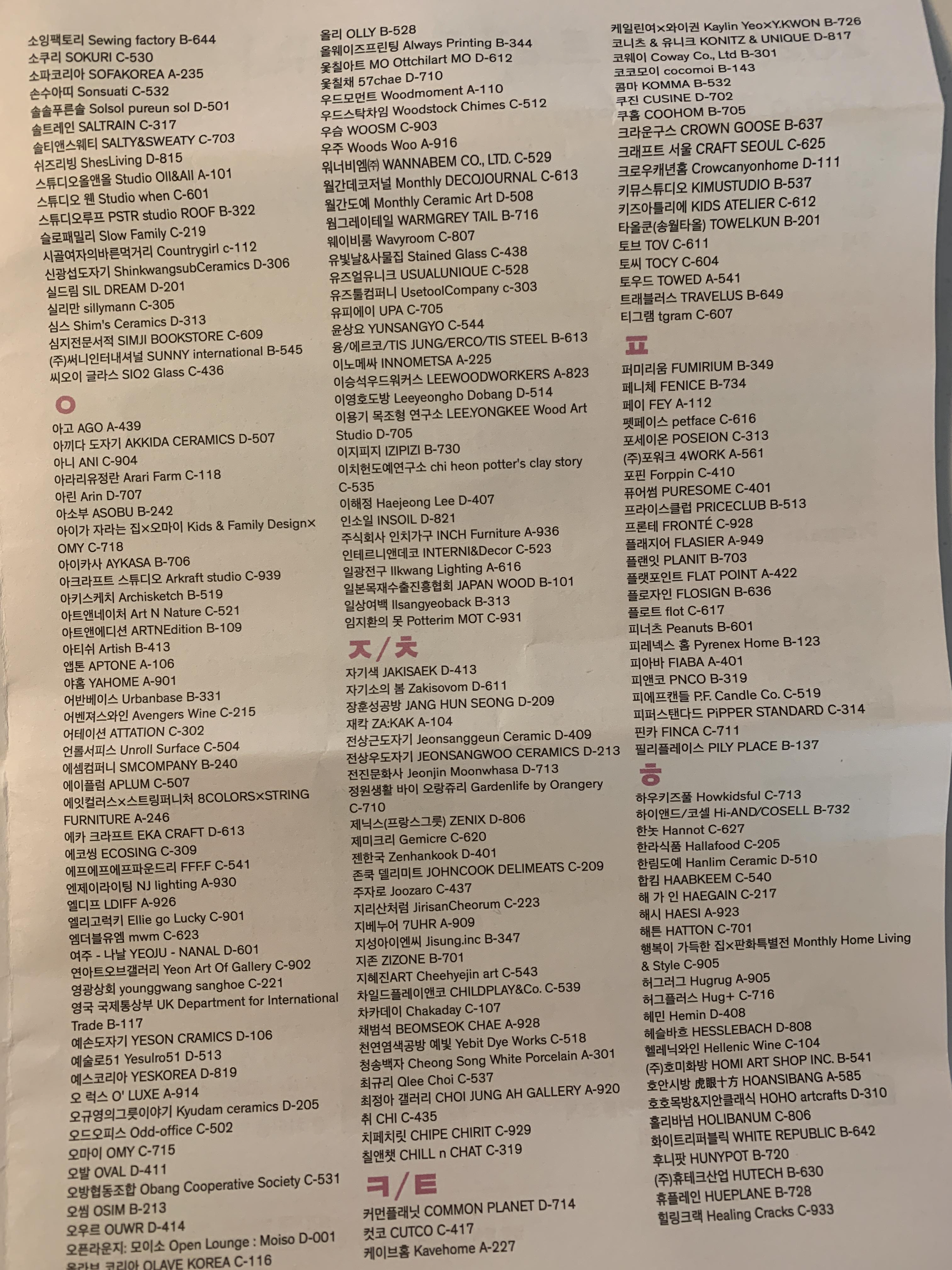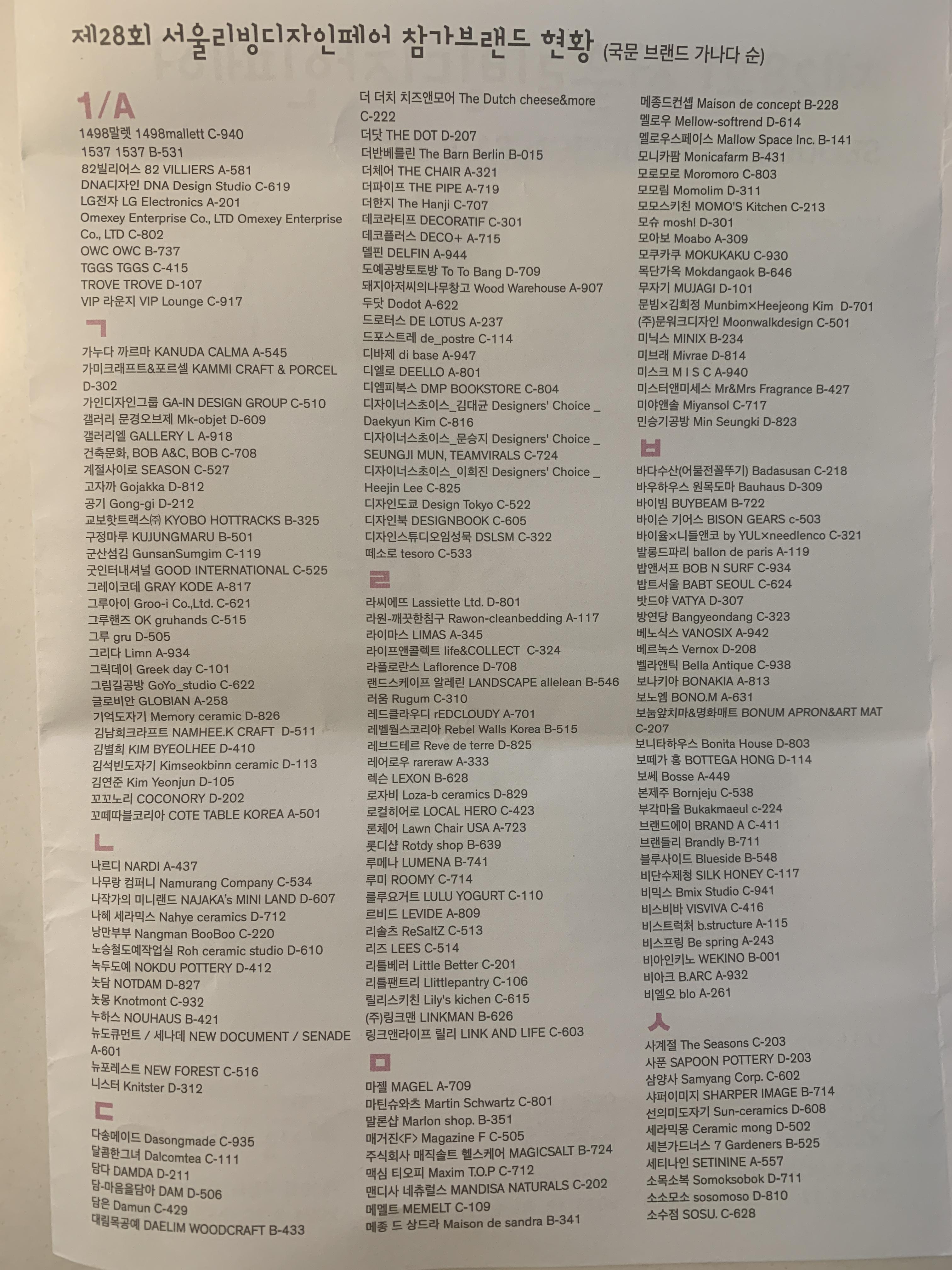 28회 서울리빙디자인페어 참가브랜드 현황표입니다. (가나다순)