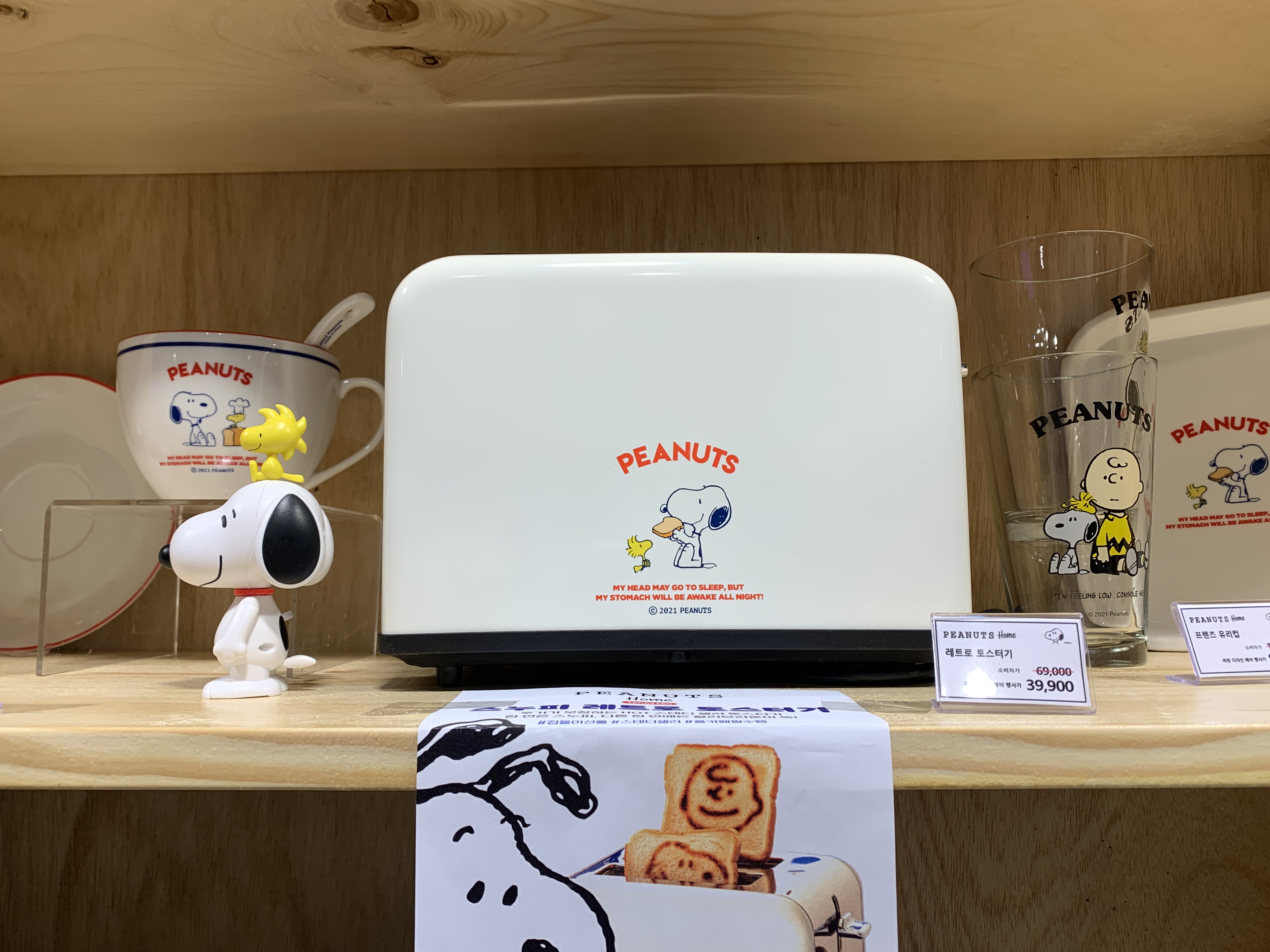 스누피 그릇들 가격도 착하고, 그 외에 스누피 샤워헤드, 토스터기, 텀블러, 전기포트 등 귀여운 제품들이 많았습니다. 여기도 북적북적합니다.