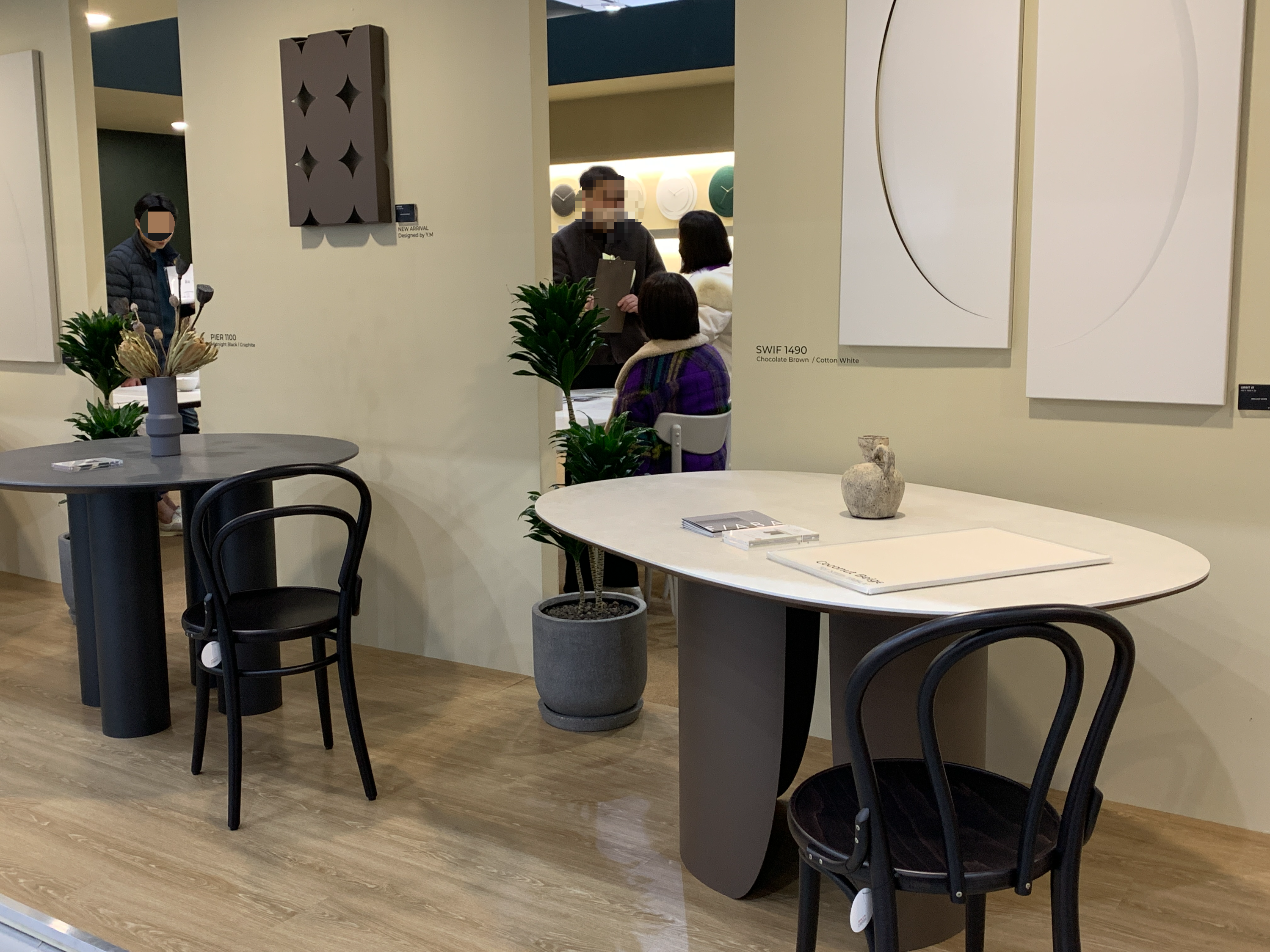 피아바. 테이블 상판 소재가 독특했는데 잘 닦이는지 궁금했지만 관람객이 너무 많아 문의는 못했습니다. 잘 닦인다고 하겠죠 뭐.