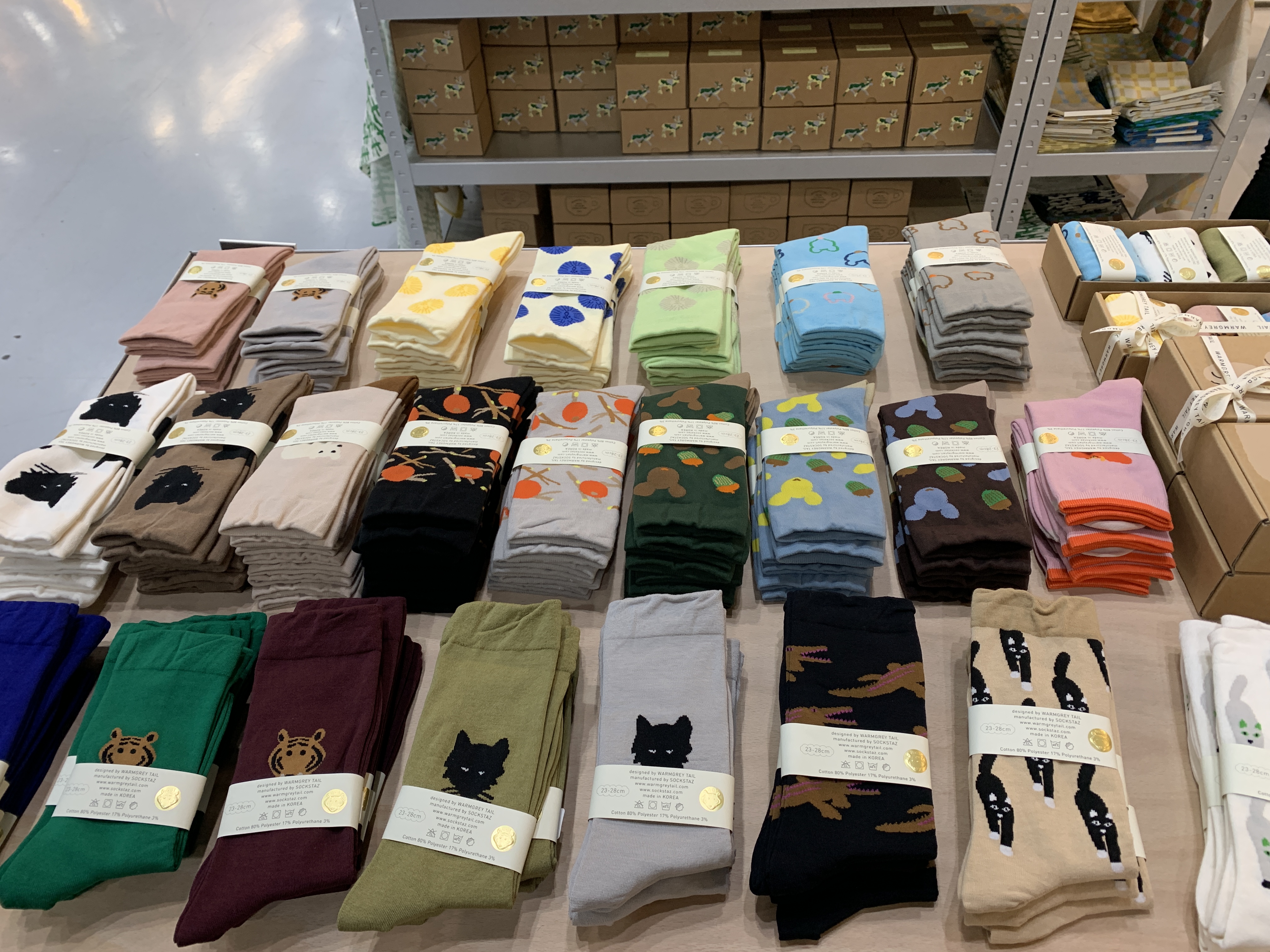 웜그레이테일에서 판매하는 양말, 그 외에 러그, 머그컵, 여러 종류의 가림막 천 등이 있었습니다.