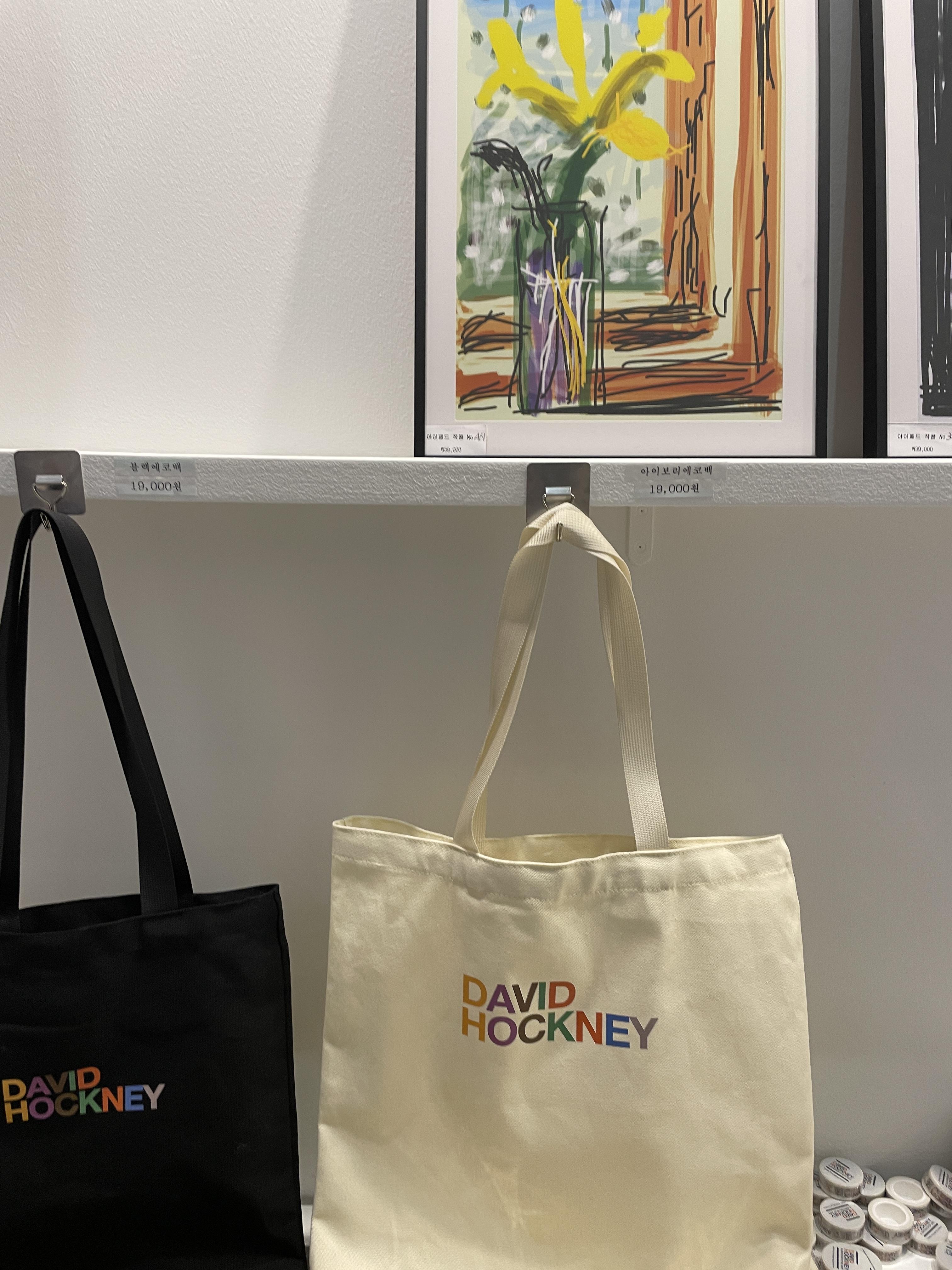 굿즈샵은 데이비드 호크니저 제품들만 있는 것은 아니고 이것 저것 다 섞여 있는데요. 살만한 것이 없어서 슬쩍 훑어 보았습니다. 호크니 전 굿즈로는 에코백이 보입니다.