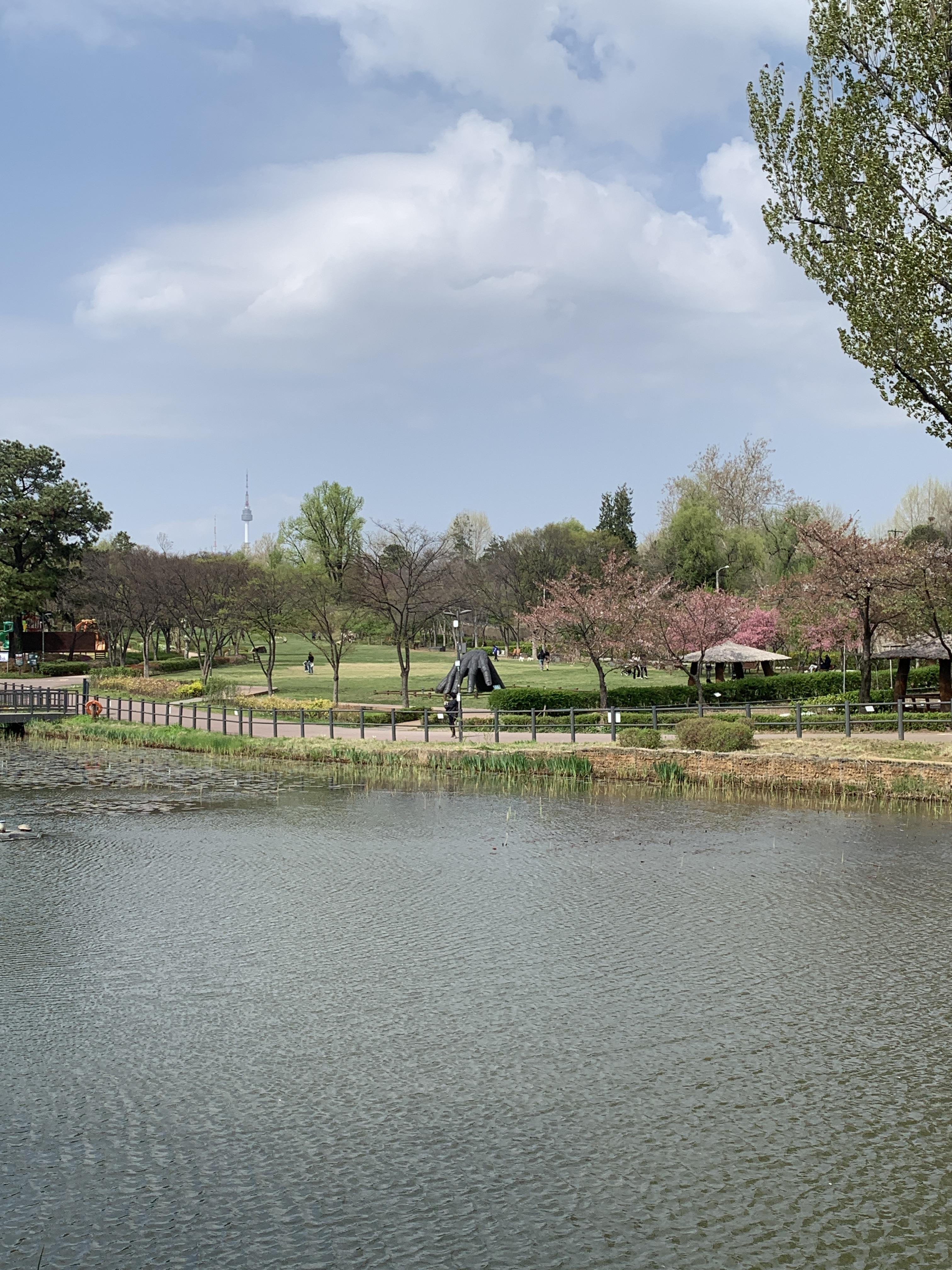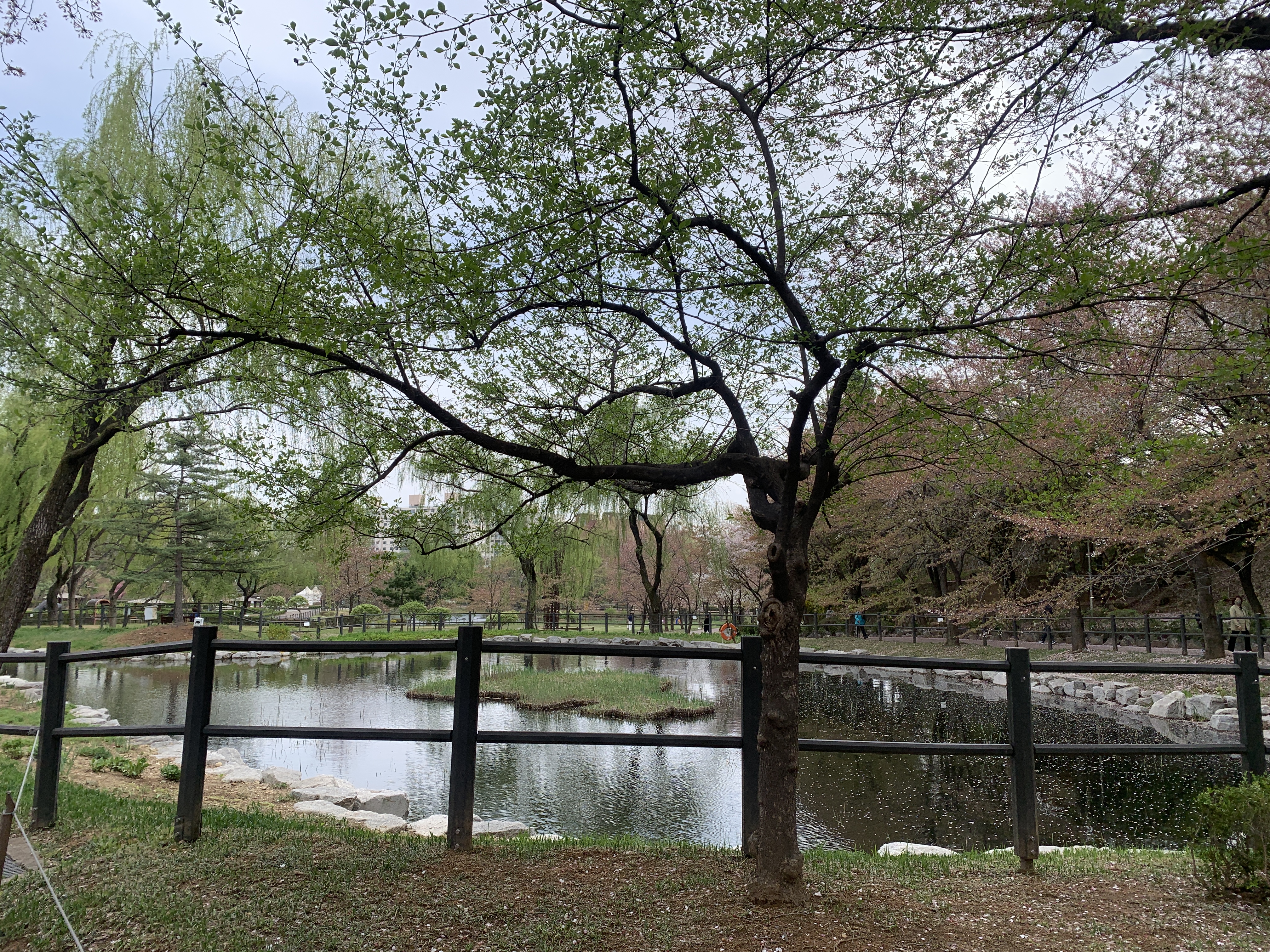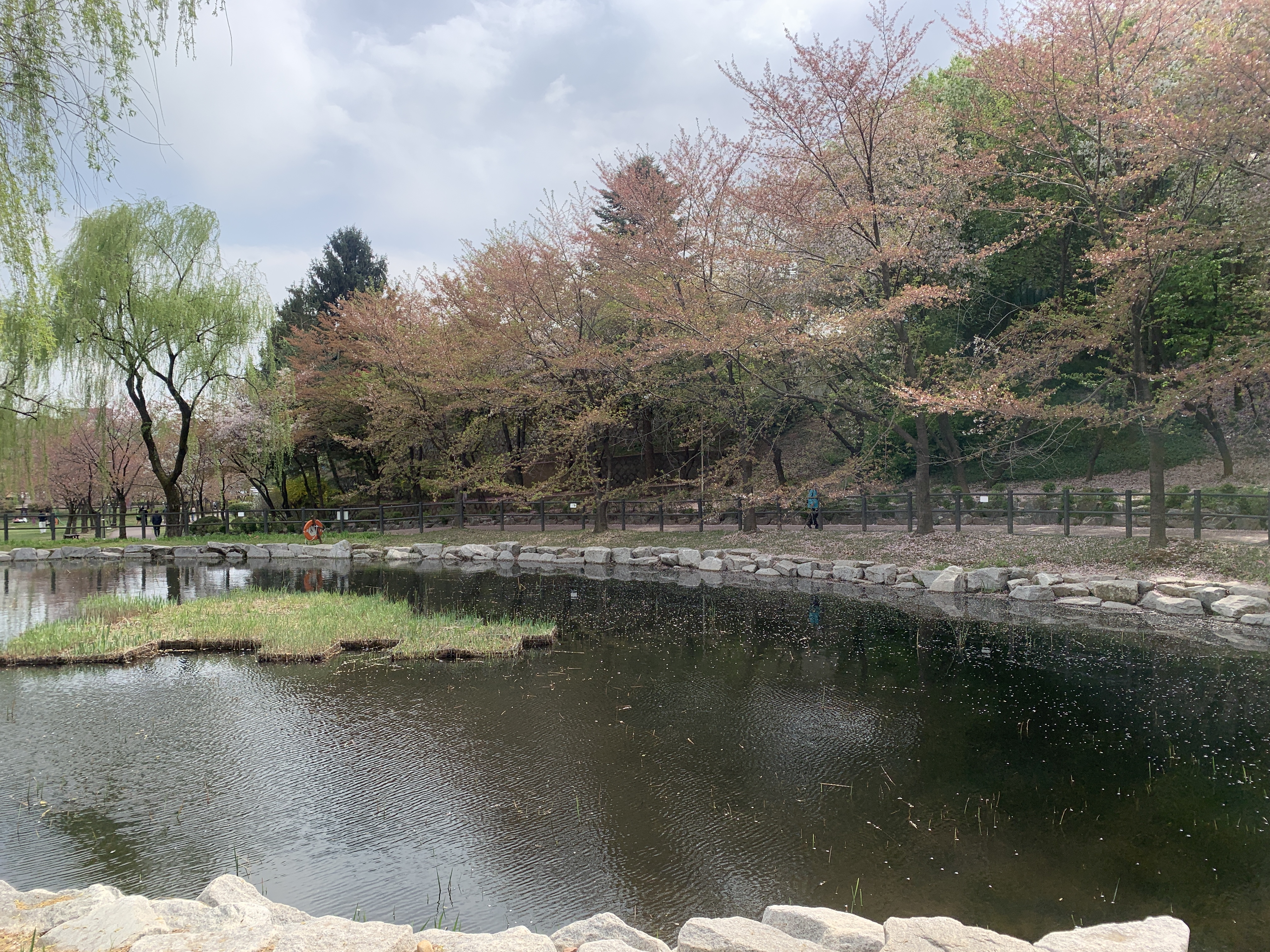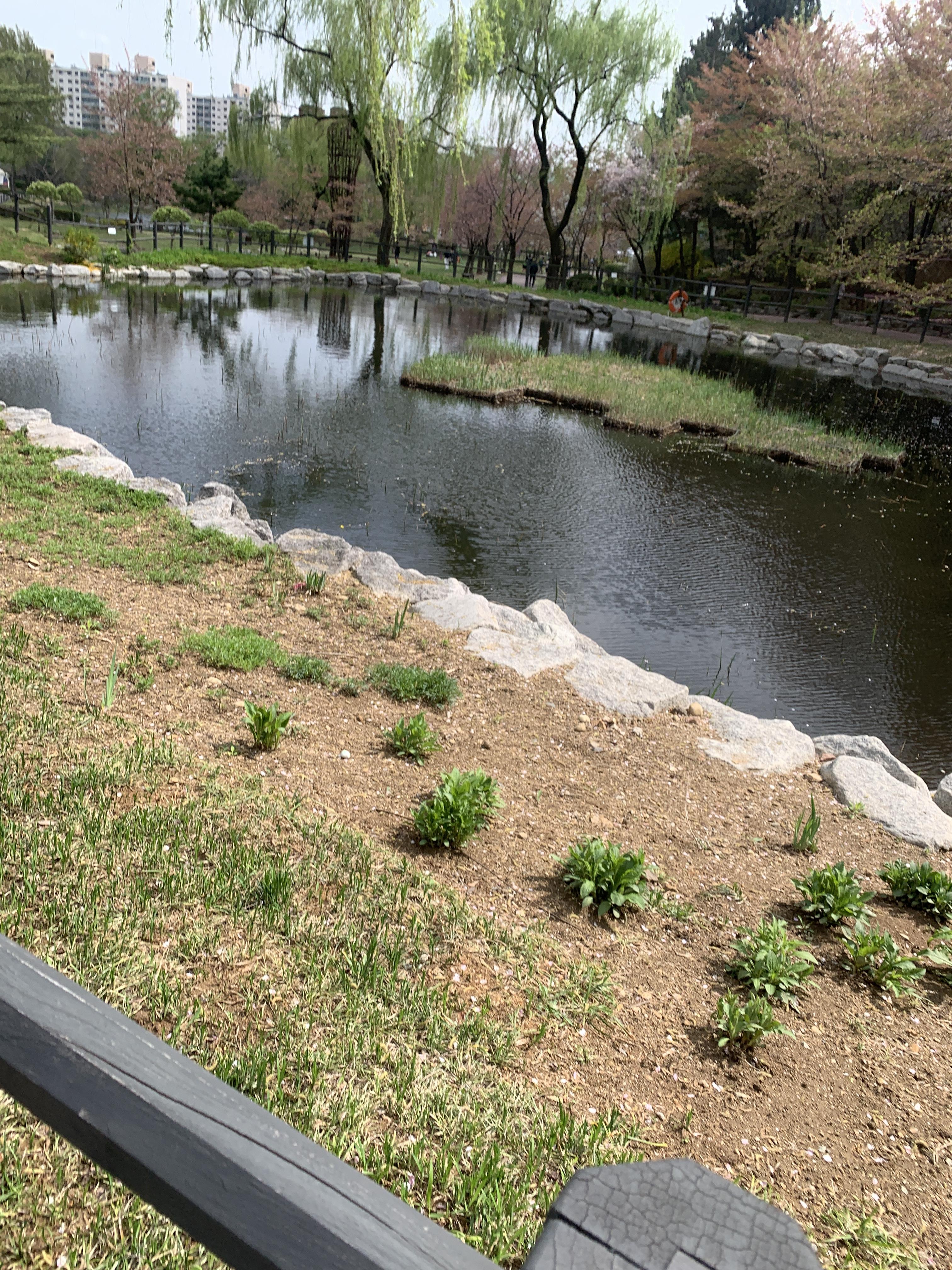 벚꽃은 없지만 봄이 되어 이제 막 피어나는 초록초록한 싹들과 나무들만 보아도 힐링이 됩니다. 공원이 크지 않고 작은 편이라 그냥 슬슬 걸으면 금방 돌 수 있습니다.