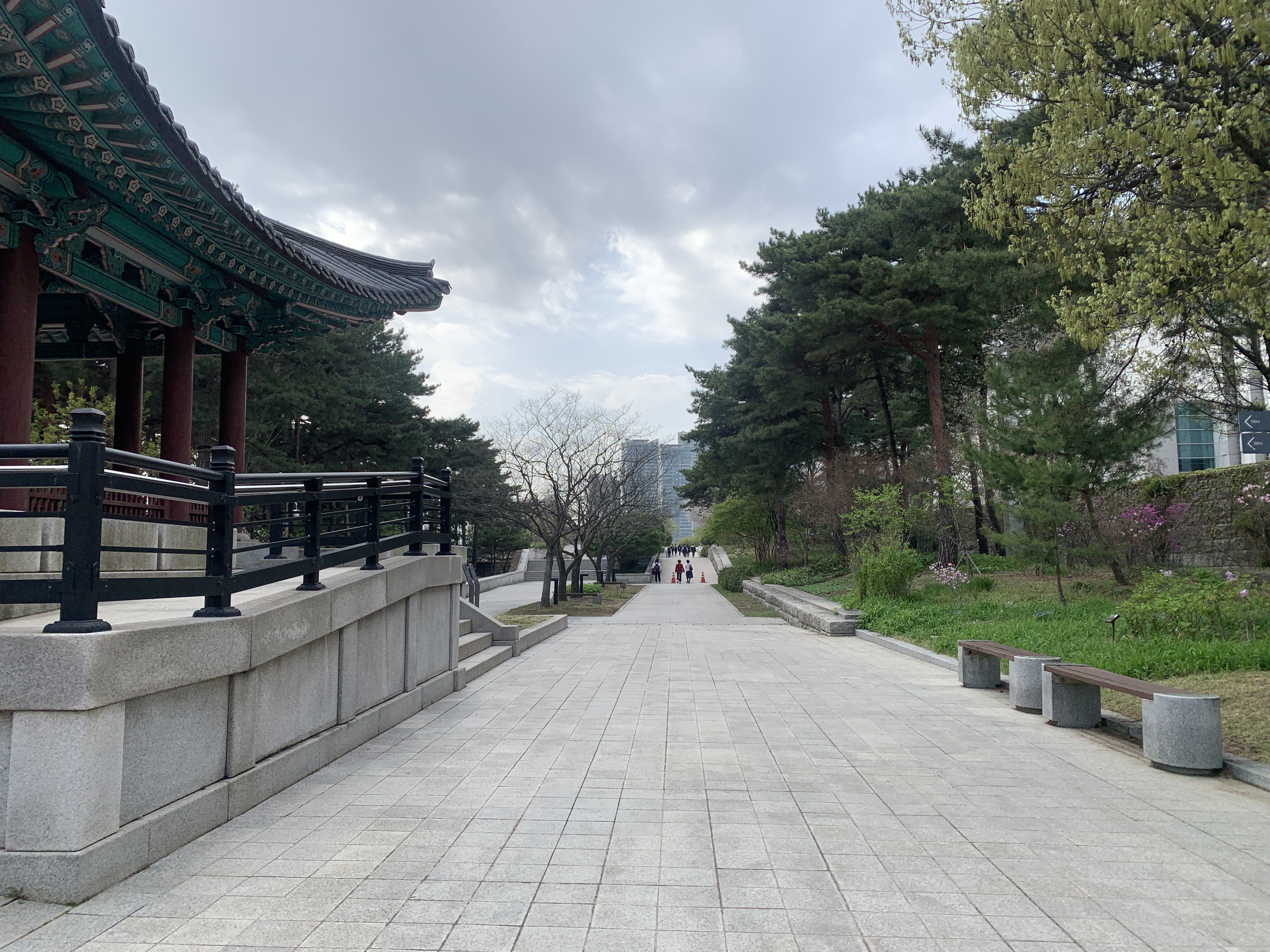 조금 힘들어서 국립중앙박물관 위에 도서관 층에 벤치에 올라가면 벤치가 있기 때문에 잠시 쉬어갑니다. 미군부대 부지가 모두 공원으로 바뀌는 날을 상상해 봅니다. 이촌동 오실 때 사부작 사부작 데이트하기 좋은 곳이니 연인분들이 오셔도 좋은 곳입니다. 이촌동 맛집에서 밥 먹고, 여기서 산책하면 봄 데이트에 제격.