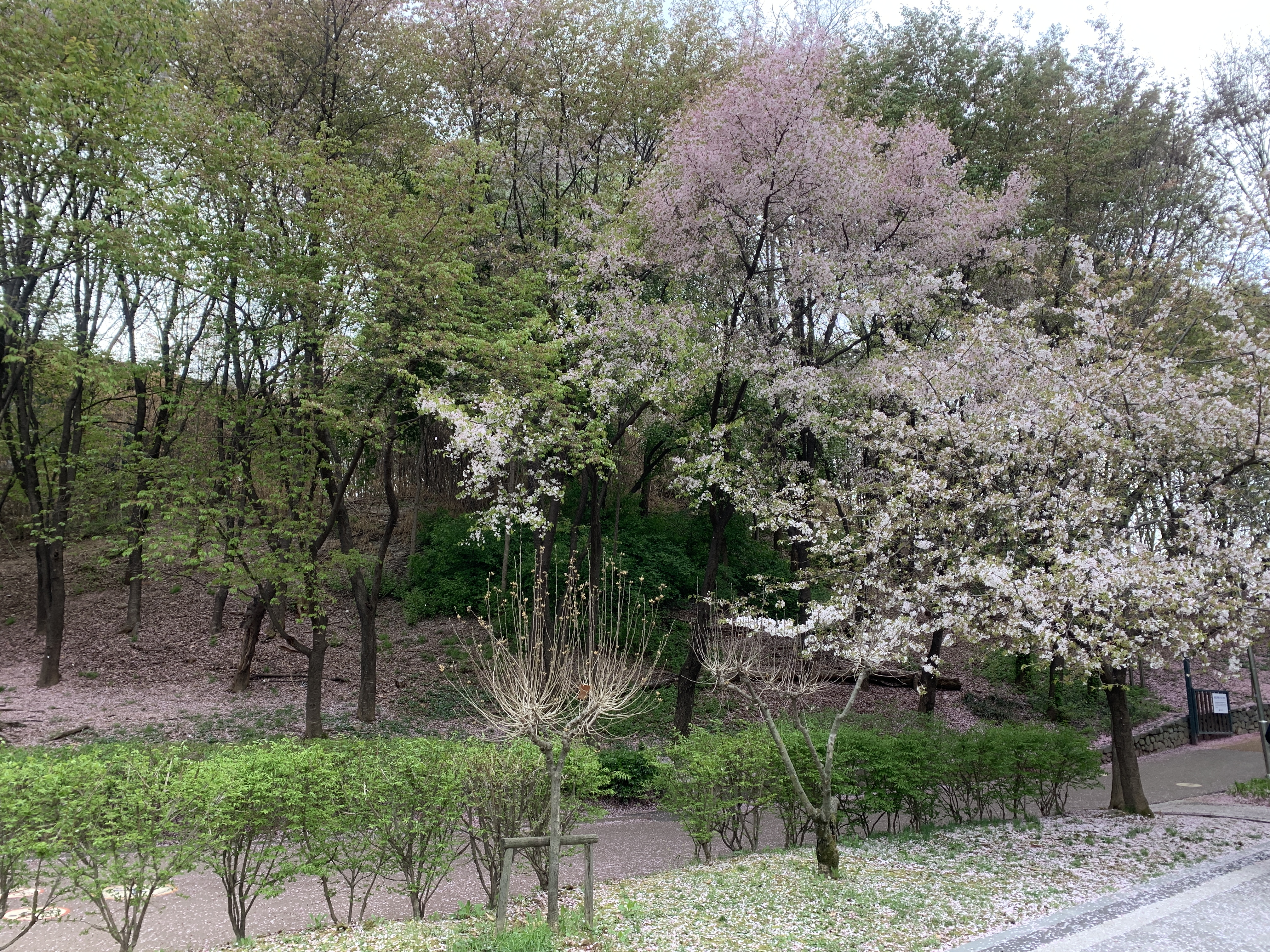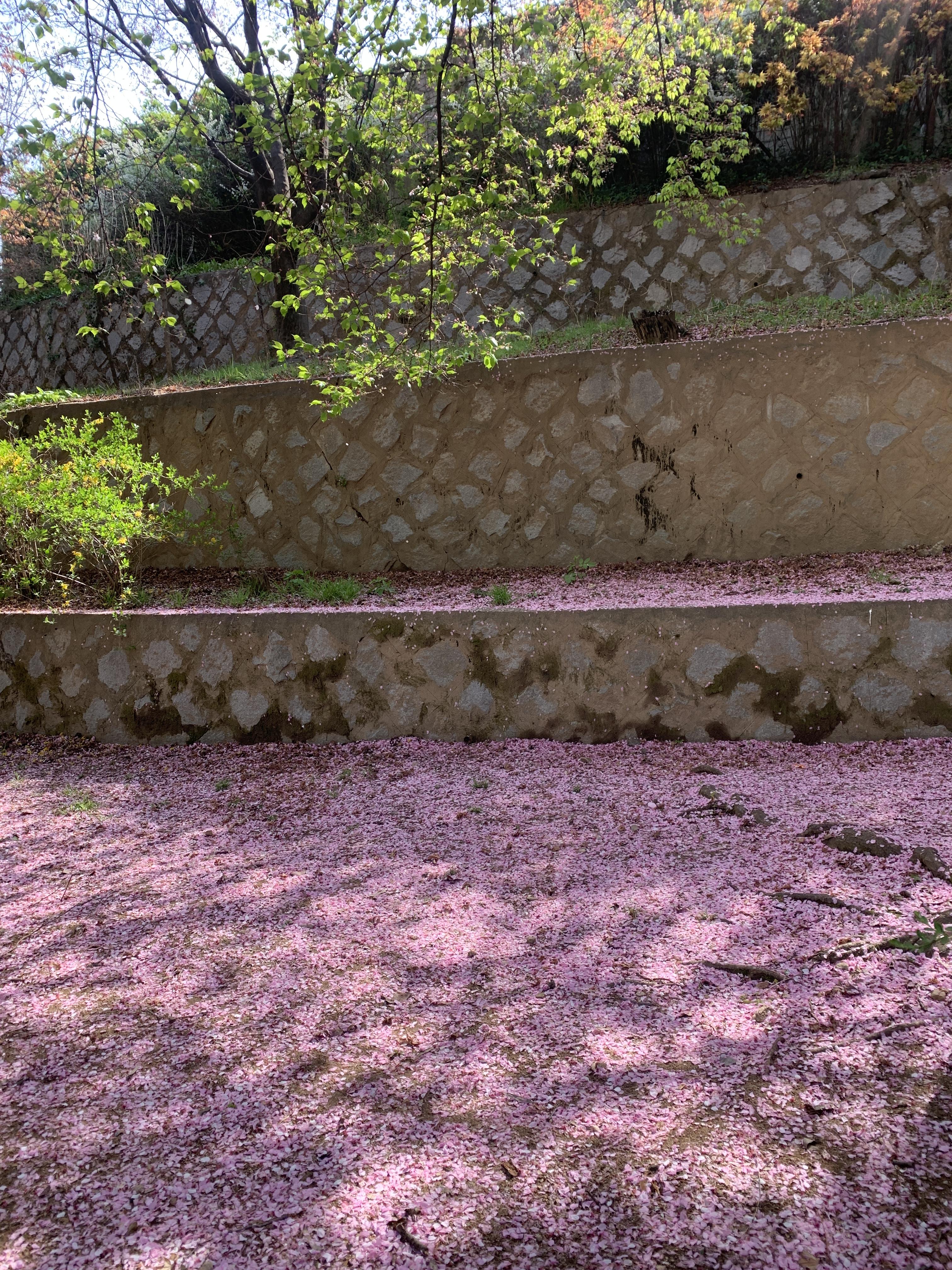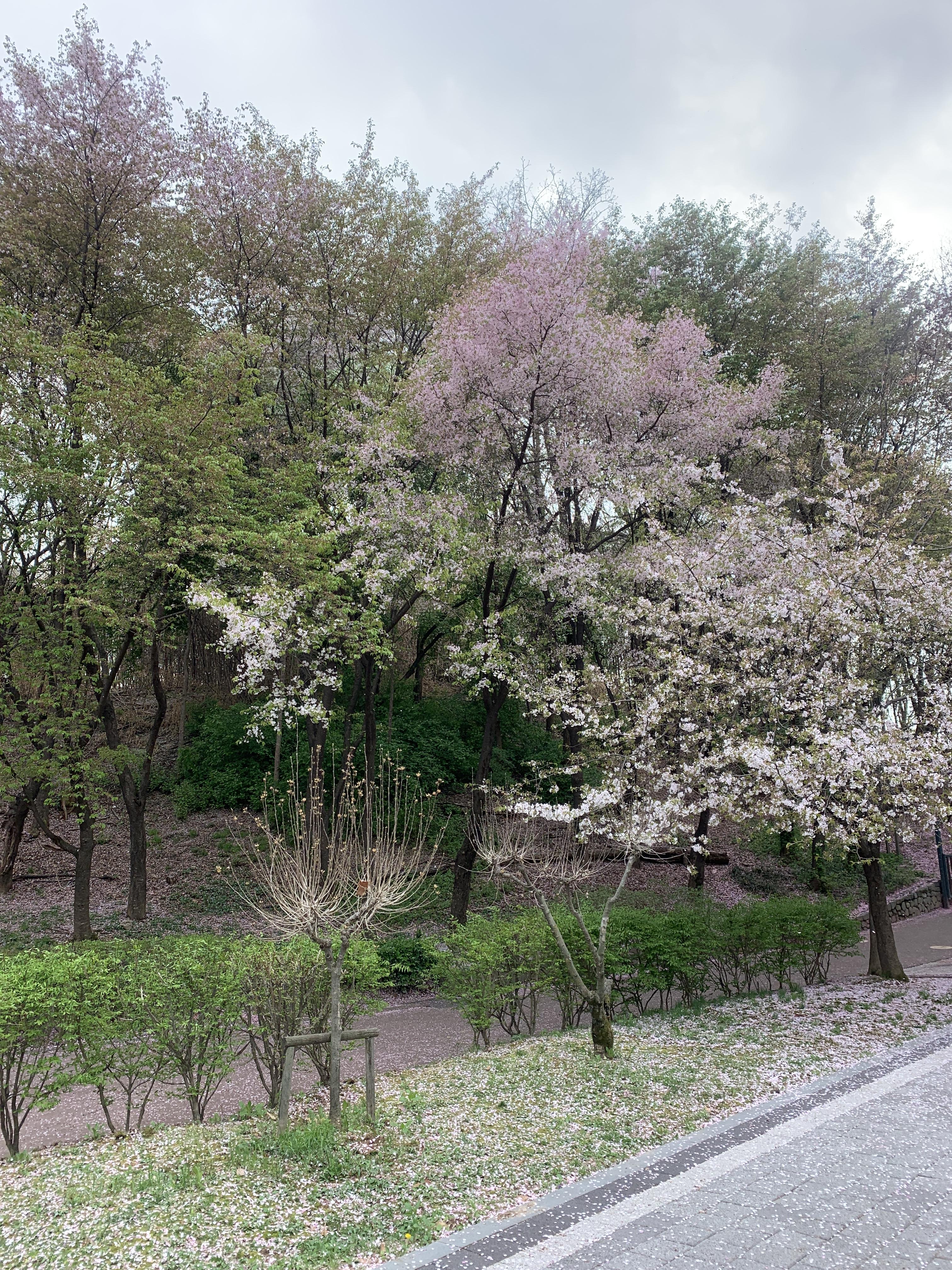 아쉽게도 다 떨어진 벚꽃잎들. 떨어진 잎들도 참 아름답습니다. 동네 공원이라 가볍게 산책하고 잠시 앉아서 커피 마시니 좋습니다. 점점 날씨가 개어서 날씨가 다 했다.