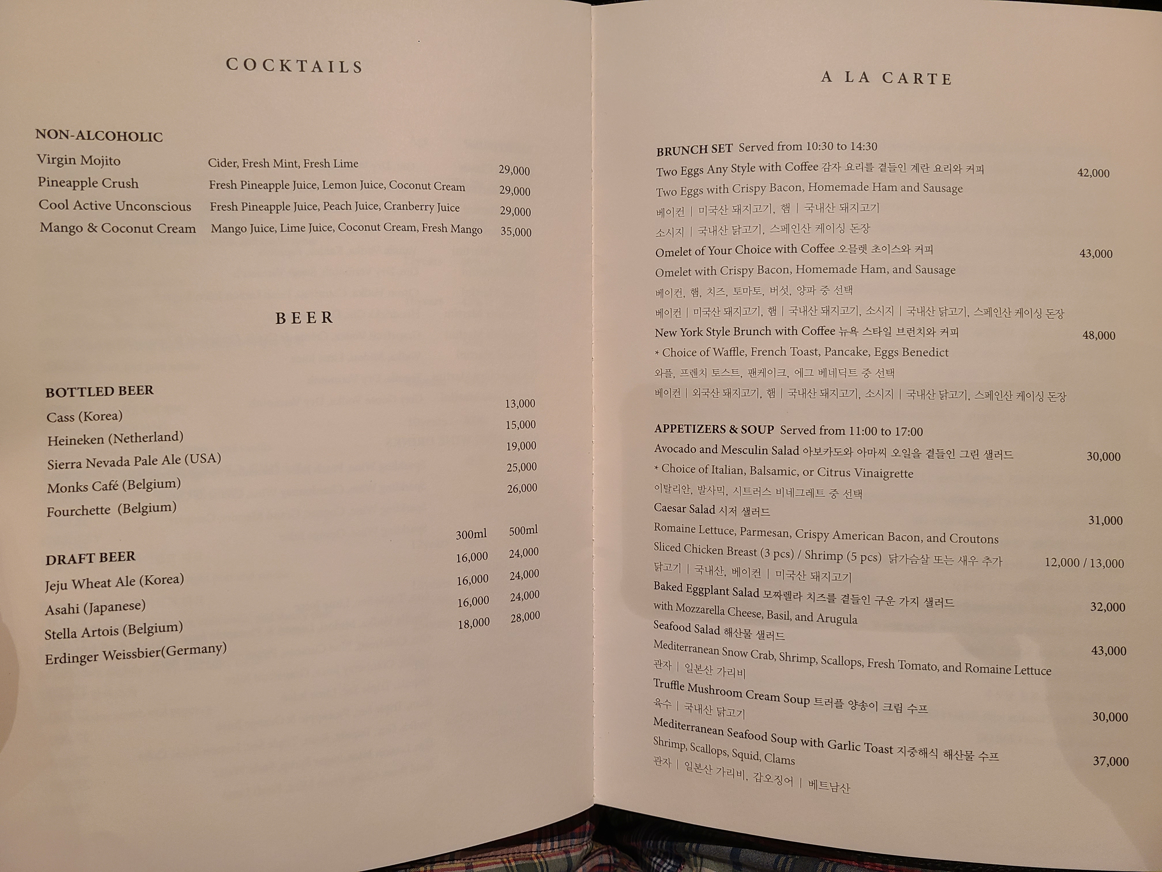 온갖 나라의 온갖 종류의 음식이 단품으로 제공되고 있어서, 여러 명이 주문을 했는데 겹치는 메뉴가 하나도 없었다. 단품은 대략 4~5만 원대의 가격이었다.