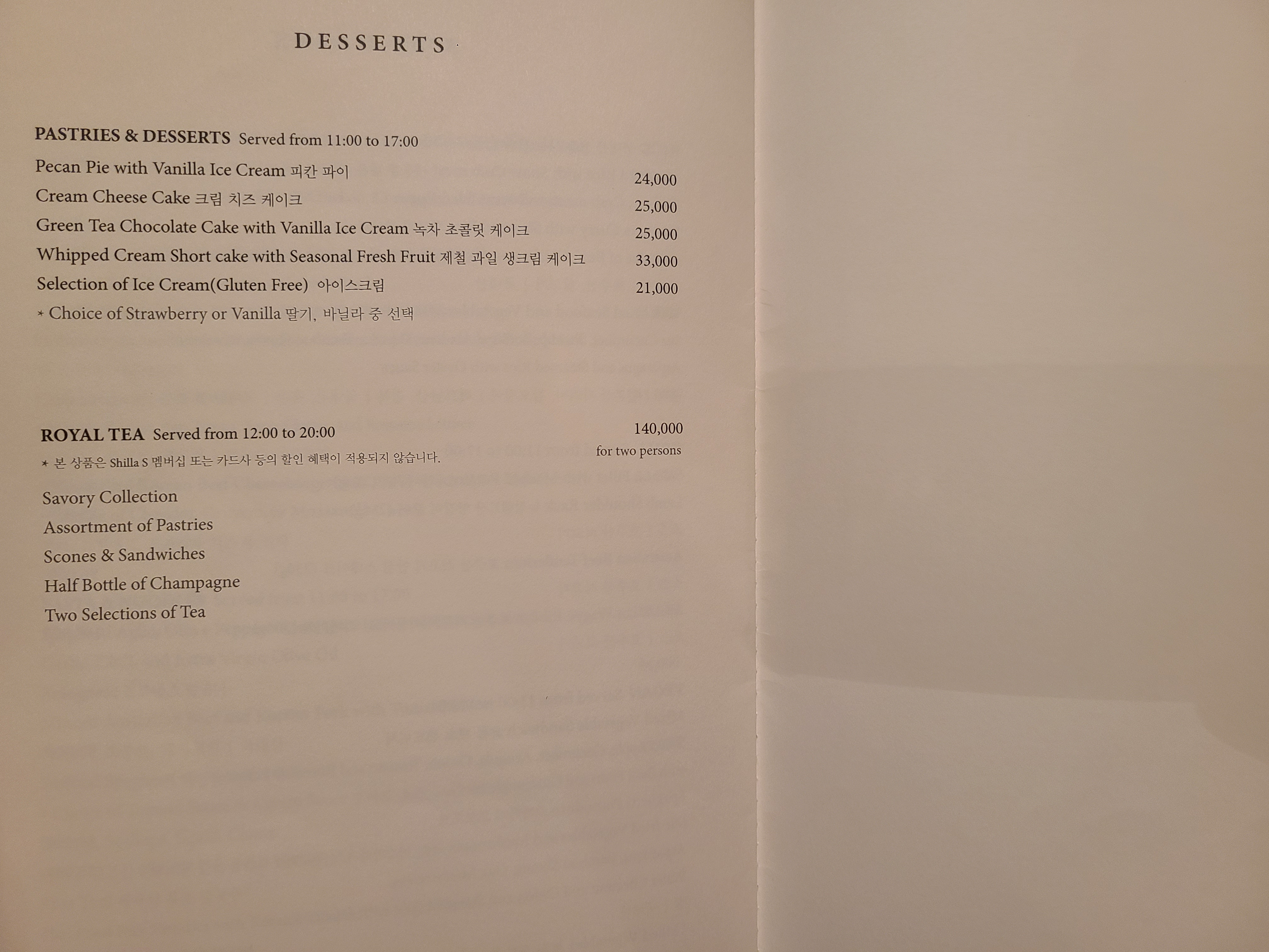 아래는 라이브러리의 메뉴. 우리는 알 라 카르테로 식사를 하고 애망빙으로 입가심을 할 예정이다.