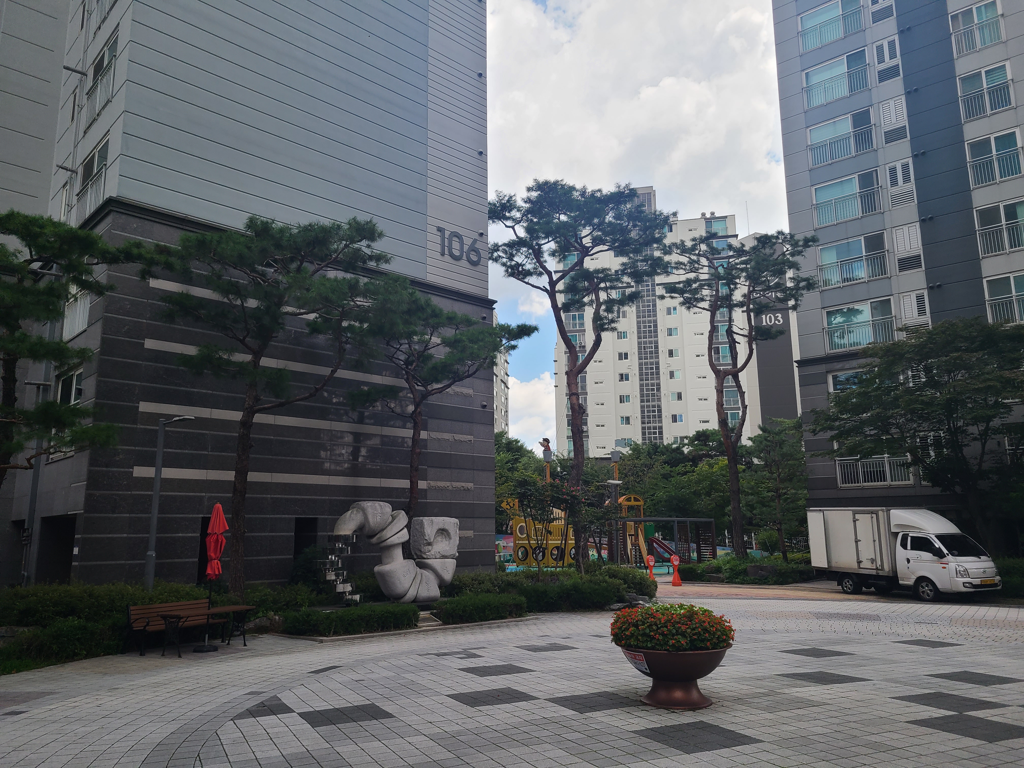 ▼ 300세대도 안 되기 때문에, 당연하지만 단지는 넓지 않다. 마음에 들었던 점은 단지 내에서는 지상으로 차량이 다니지 않는다는 것이다. 단지가 좁을수록 이 이점은 더 크게 느껴질 것 같다. 좁은 부지에 사람이랑 차량이 함께 다니는 게, 넓은 부지에서 그러는 것보다 더 위험할 것이므로.