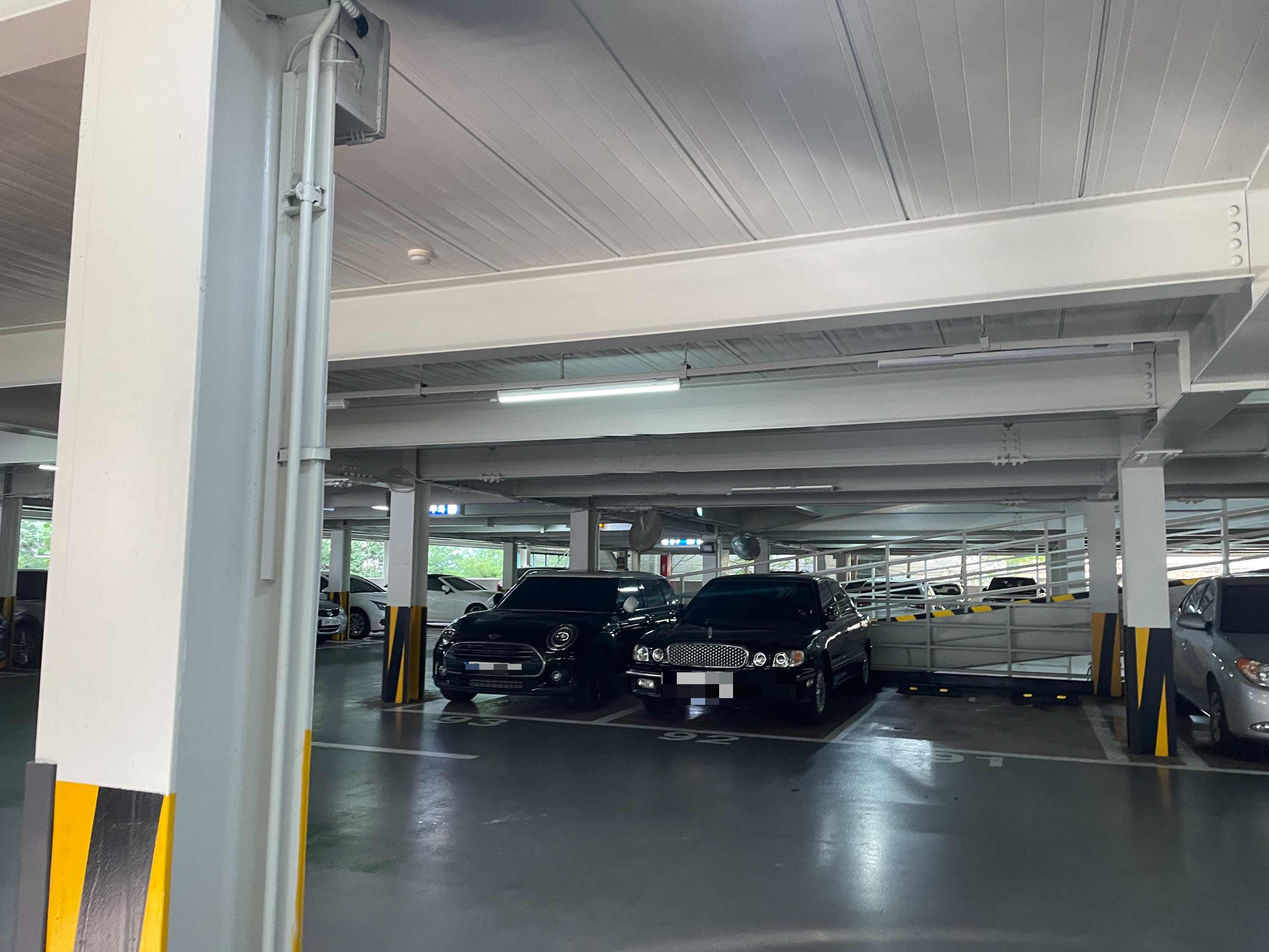 한 층마다 주차할 자리가 아주 많은 편은 아니지만 그래도 통로 같은 곳이 좁지 않습니다.