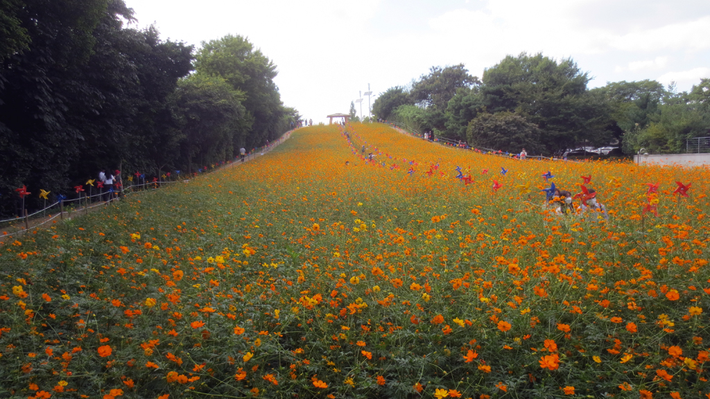 제가 추천하고 싶은 최고의 포토 스팟은 노란 코스모스를 볼 수 있는 야생화 정원입니다. 그리고 장미 광장, 황금 은행나무 길도 가볼 만합니다. 부지가 넓은 만큼 이 장소들을 도보로 다니지 않고 자전거로 둘러보는 것을 추천드립니다. SK올림픽핸드볼경기장과 우리금융아트홀 사이에 있는 자전거 대여소에서 쉽게 대여할 수 있습니다. 주변에서 샌드위치나 간단한 간식을 사서 둘러보시다가 먹는 것도 좋더라고요.