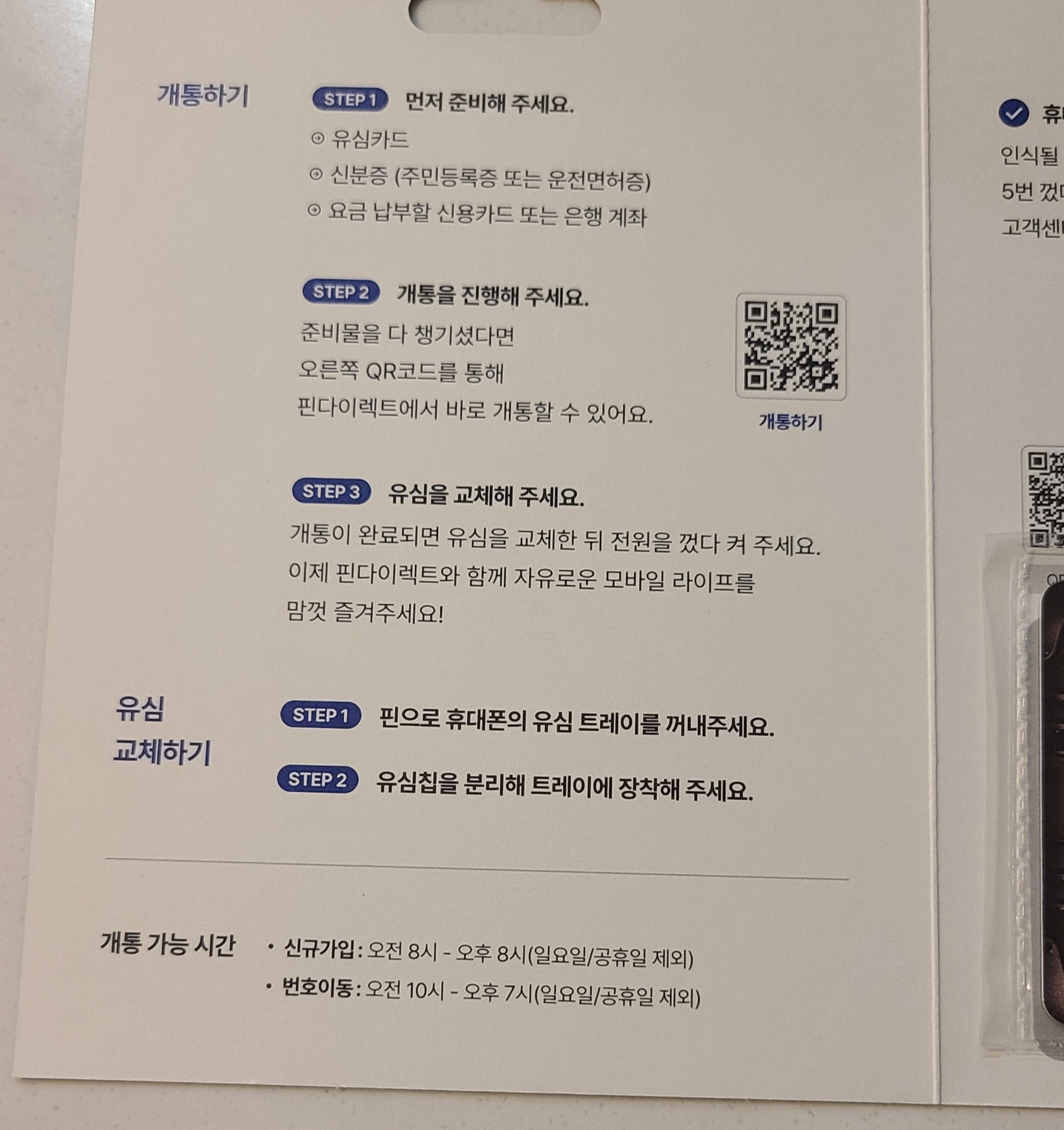 2. 개통 전 준비물 및 개통 시간 확인