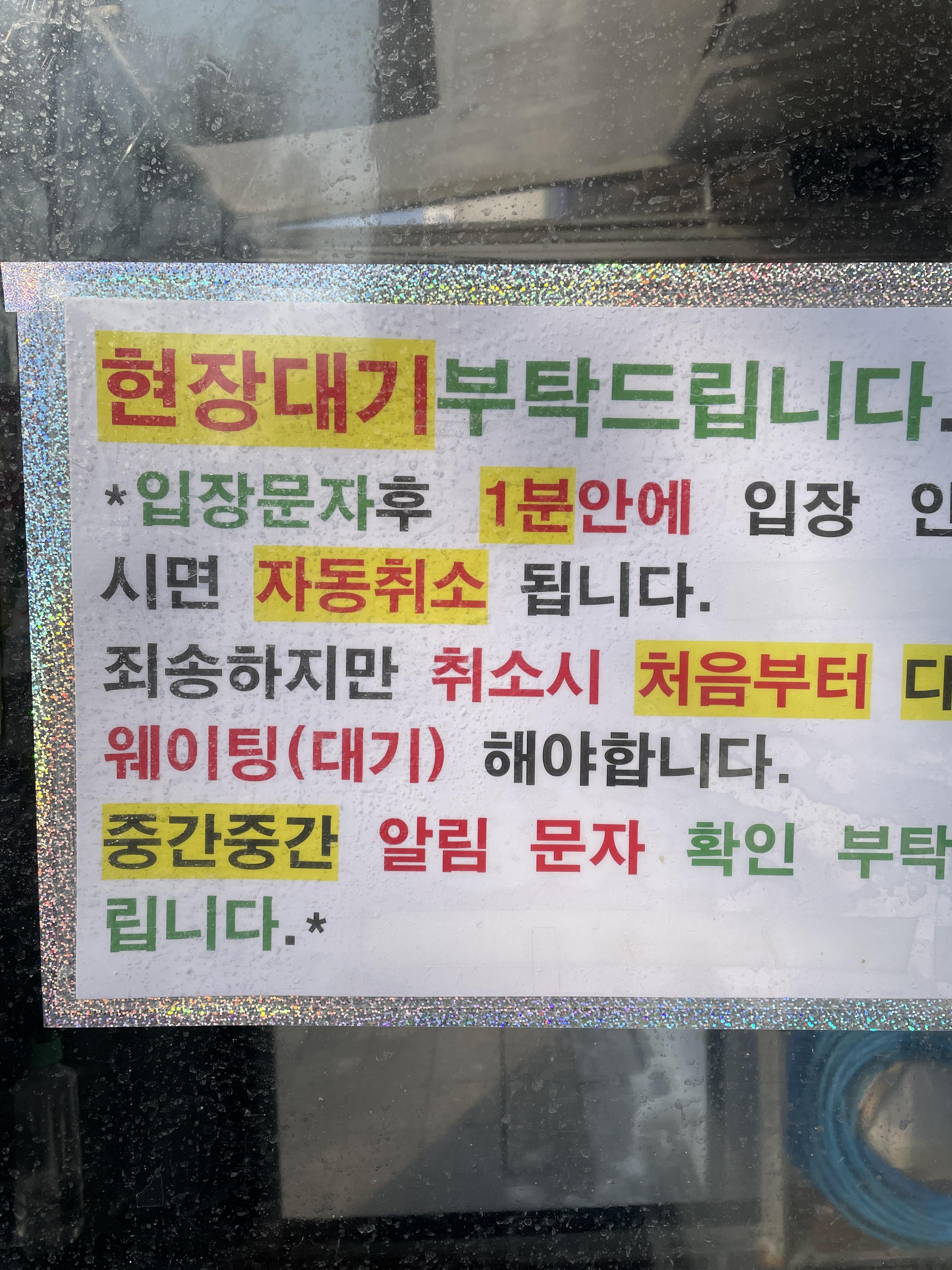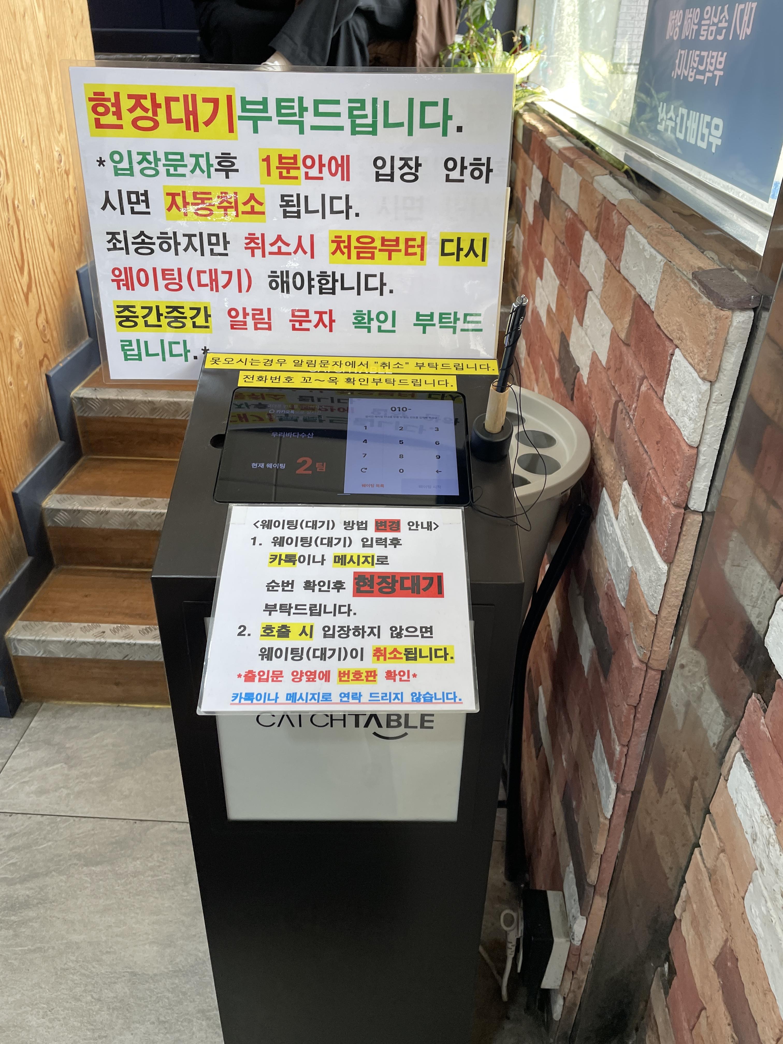 참고로, 대기손님이 있는 주말, 공휴일에는 식사 시간이 2시간으로 제한됩니다. 그리고 웨이팅 입력한 후에 카톡 또는 메시지로 순번 확인 후 현장대기를 해야 합니다. 겨울에는 조금 힘들 수도. (캐치테이블 가능)