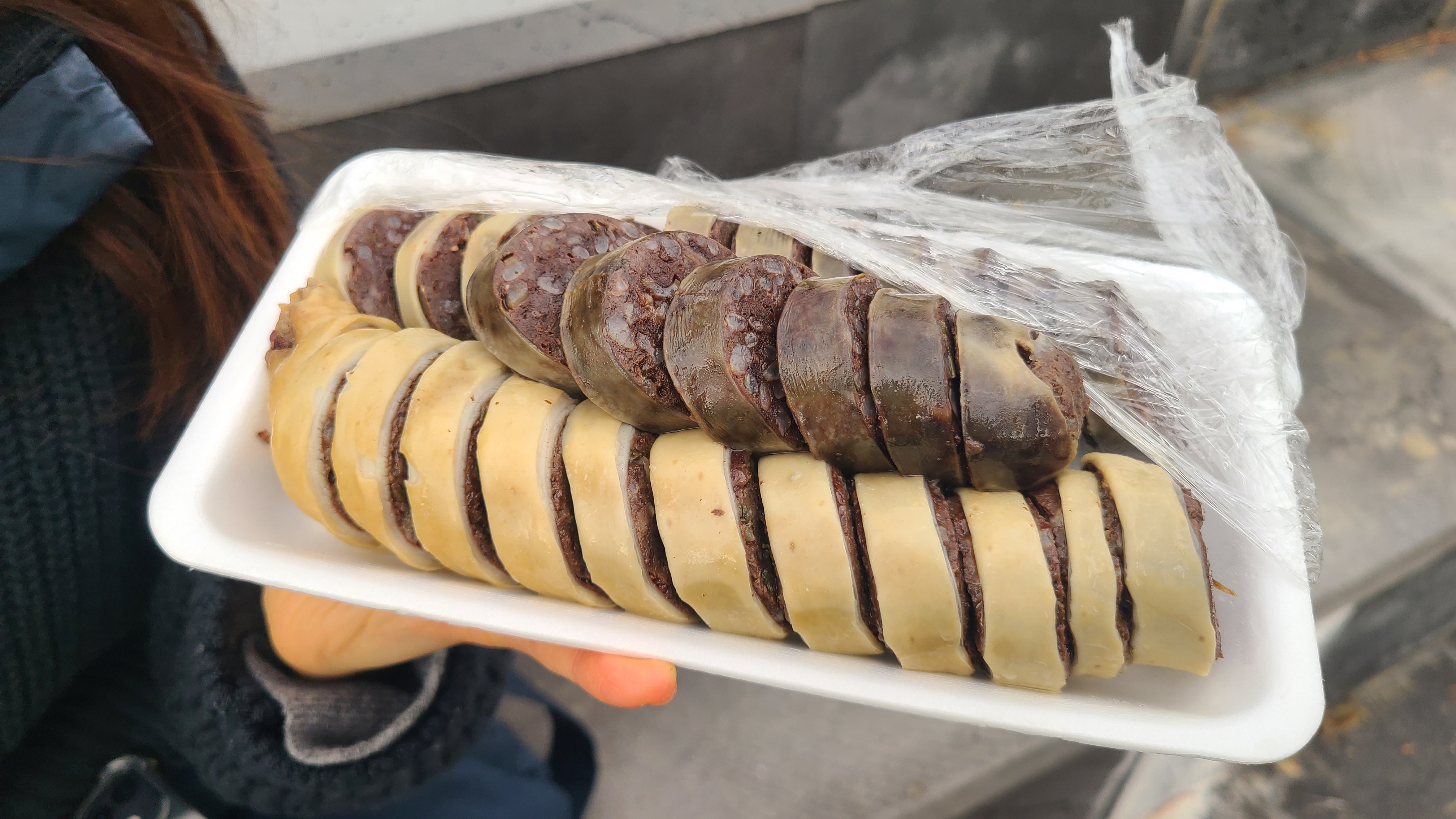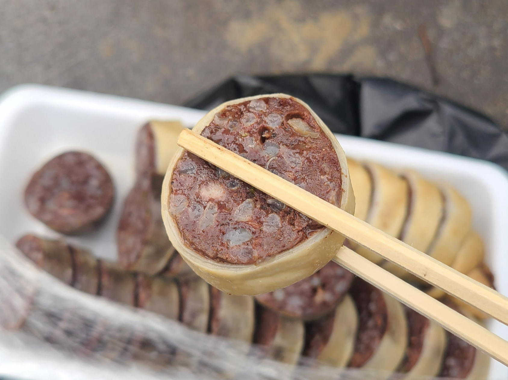 막창에 돼지 선지와 찹쌀로 속을 채웠기 때문에 소위 말하는 군내, 즉 돼지 잡내가 나야 하는데, (그리고 실제로 정육점 안에서는 났는데!) 막상 먹을 때는 잡내도 거의 없었다. 바람이 선선하게 부는 야외에서 먹어 그런 것인지도 모르겠다.
