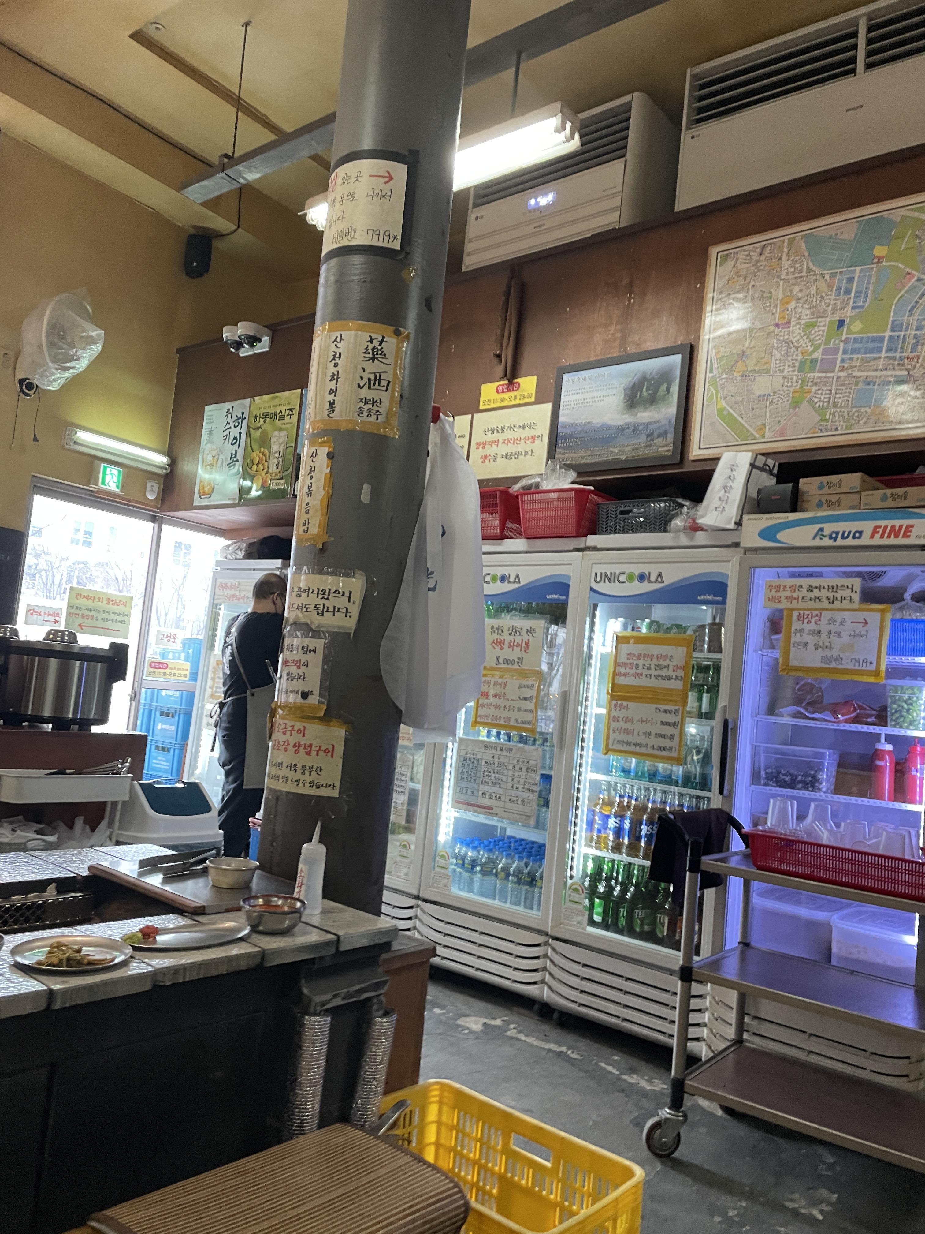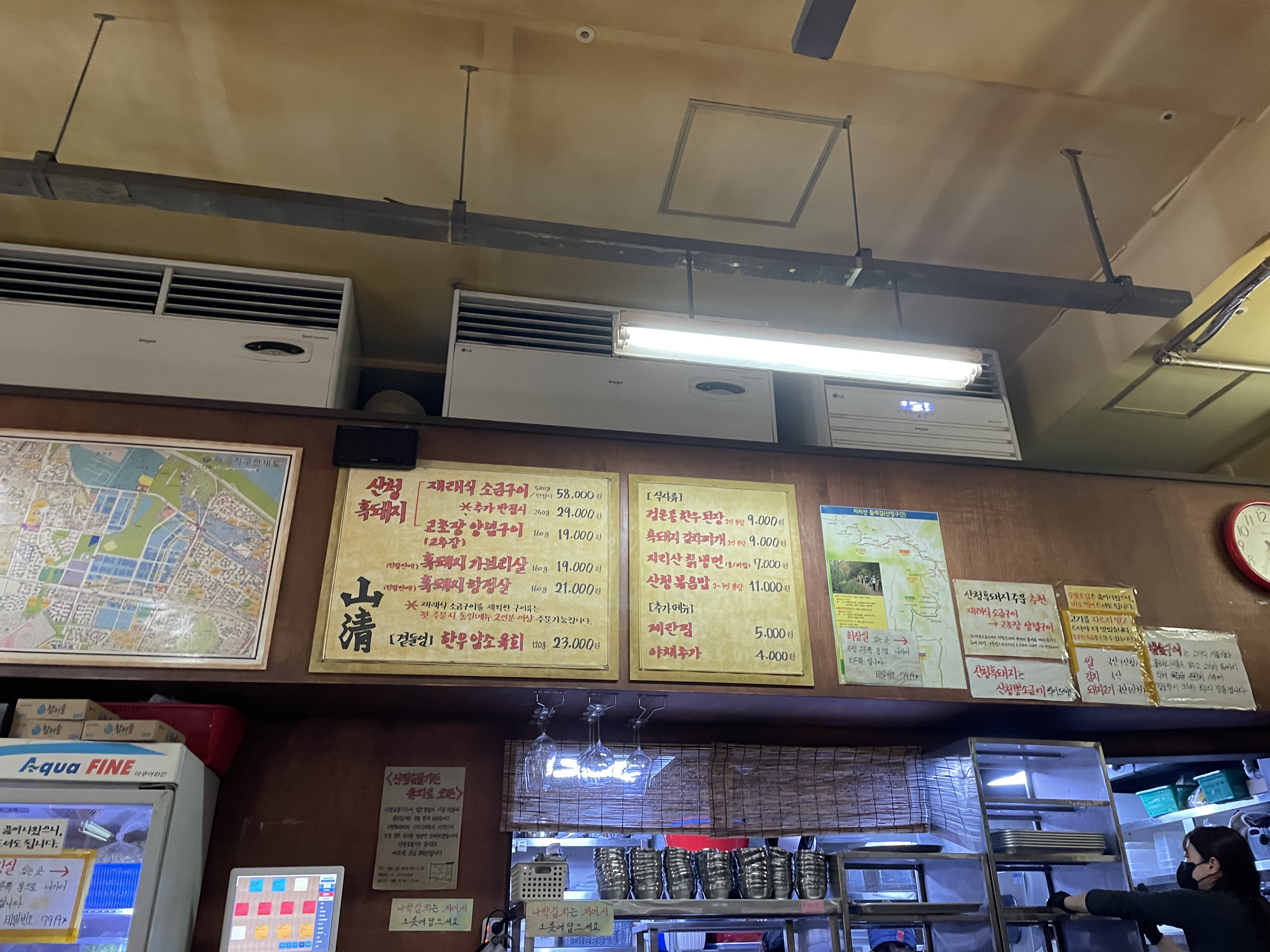 산청의 메뉴판이다. 메뉴를 알고 가서 앉자마자 주문을 후다닥했다. 고민할 것 없이 일단 재래식 소금구이 주문하면 된다. 한 접시에 500g인데 둘이 가서 이거 하나 먹으면 약간 부족하다.