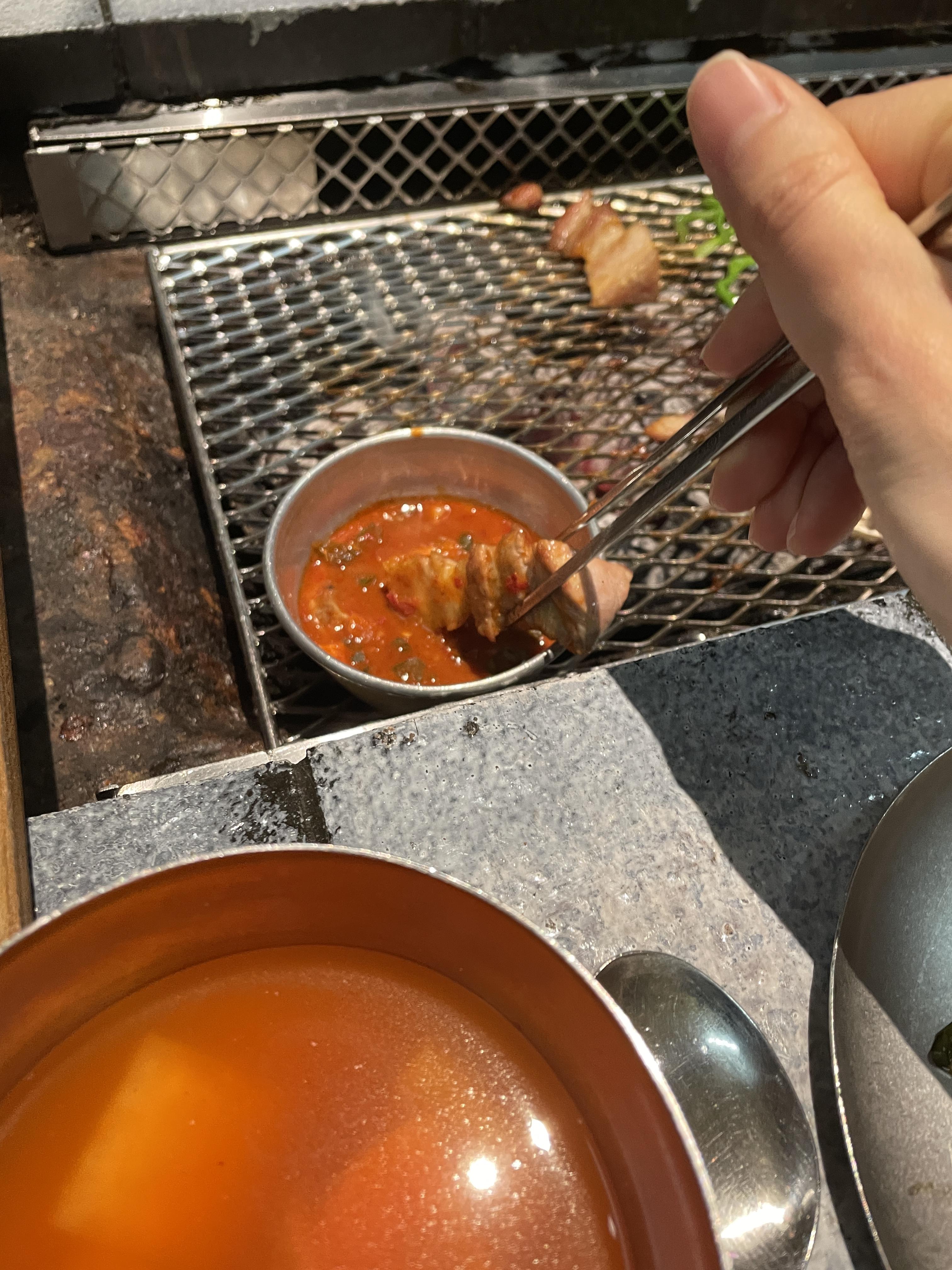 여기 숯이 참 좋다. 불이 너무 세지면 물을 조금 부으라고 알려주셨다. 멍하니 구워지는 고기를 바라본다.