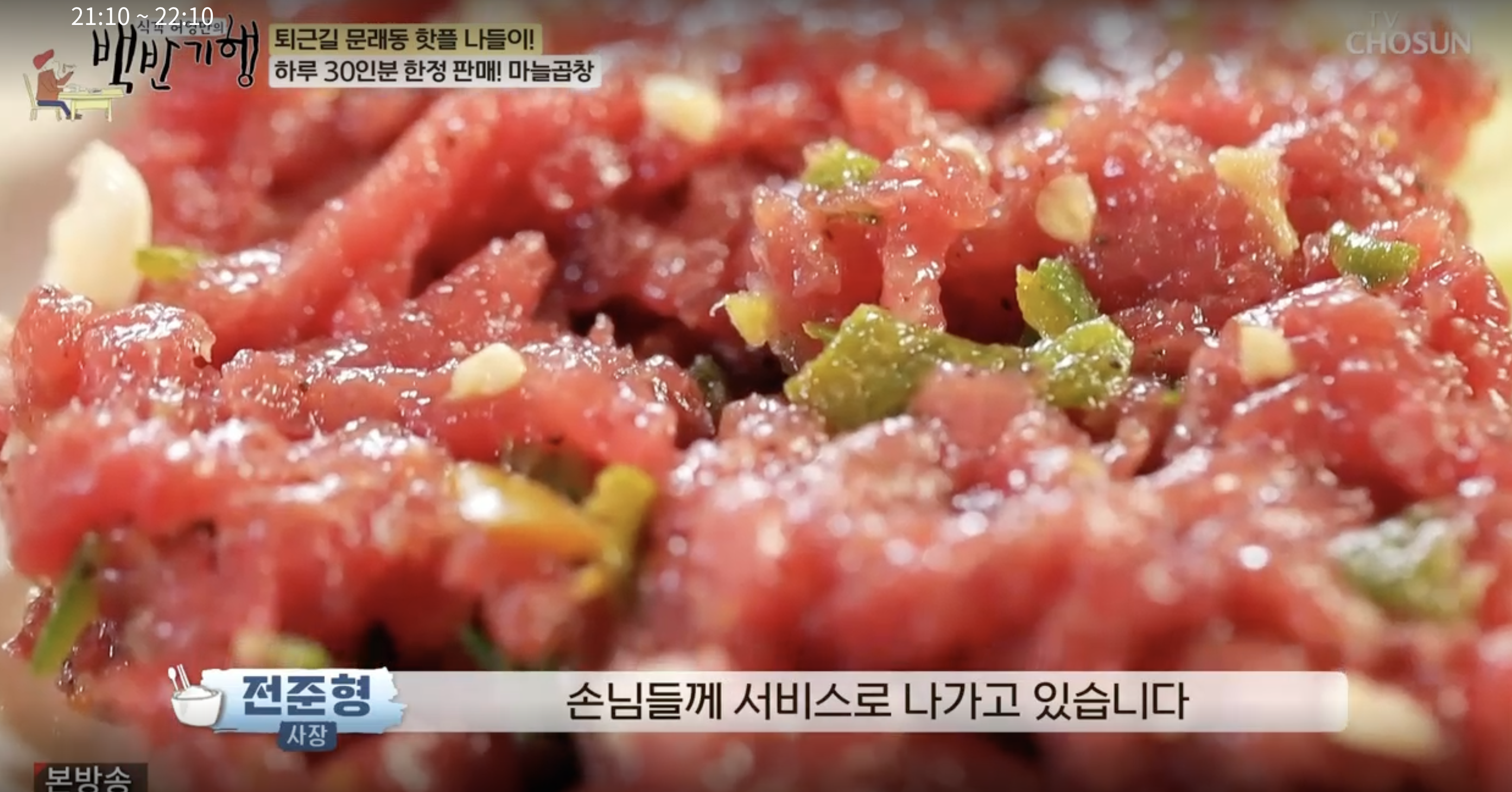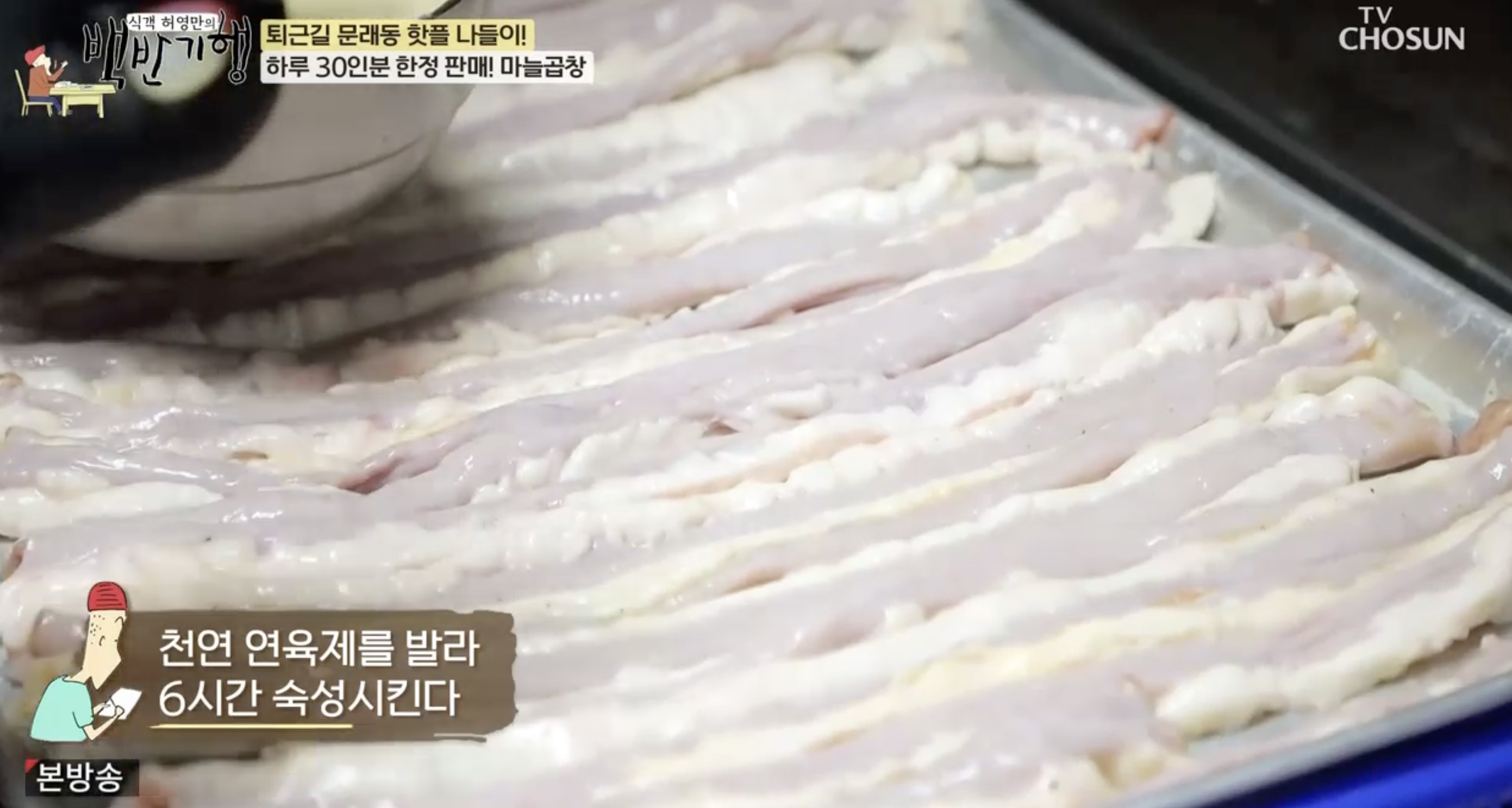 직접 만든 연육제인 과일+비법 육수를 사용하다. 마늘은 한 번 볶아서 사용하고 곱창에 일일히 넣어야 해서 손이 많이 가기 때문에 한정 판매를 진행하고 있다.