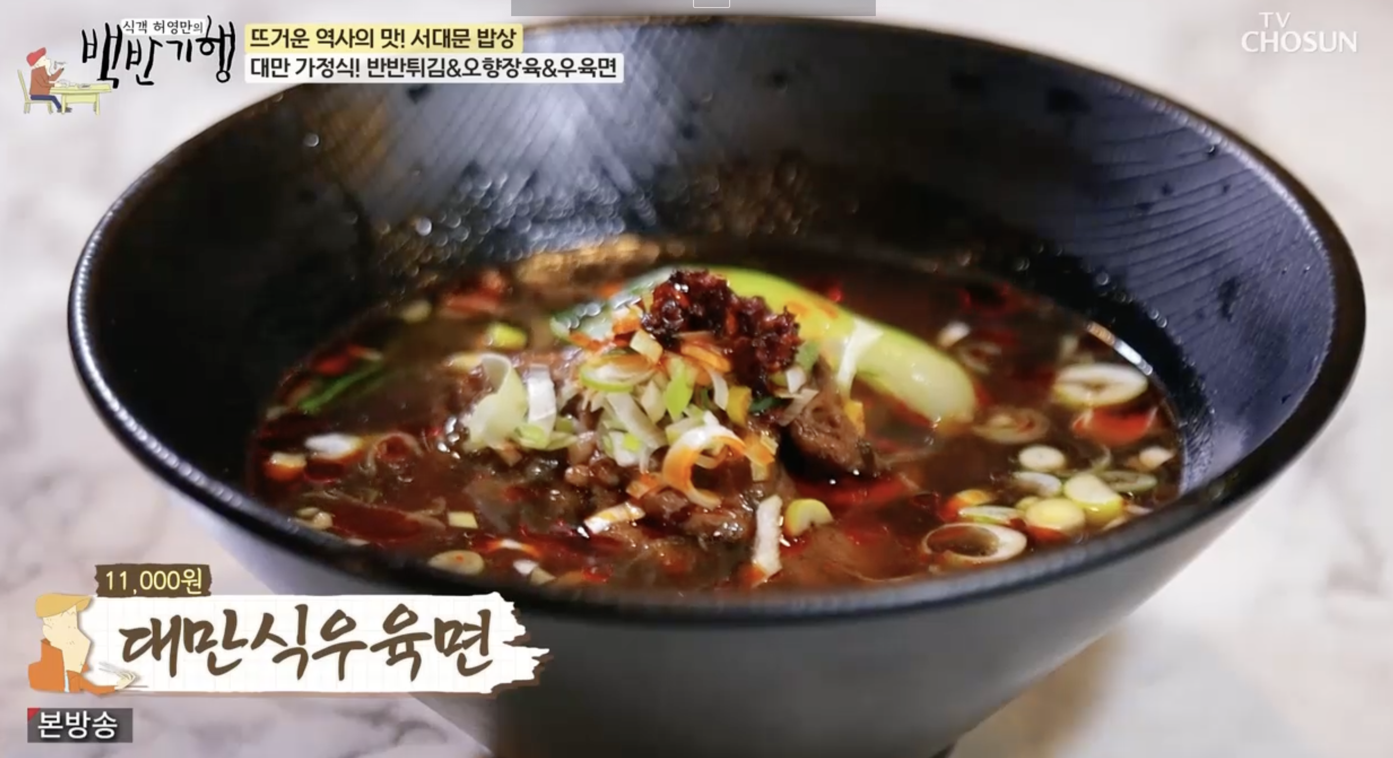 우육면은 푸짐한 양을 자랑한다. 생김새와 달리 의외로 순박한 맛을 내는 대만식 우육면. 진하게 우려진 소고기의 맛과 깊은 감칠맛을 느낄 수 있다. 맵지 않다는 것이 포인트. 적당히 매콤해서 해장용으로도 좋을 것 같은 메뉴다. 국물은 두가지 육수를 섞는데 아롱사태와 간장이 메인인 홍소육수와 깊은 맛을 위해 사골육수를 블렌딩한다.