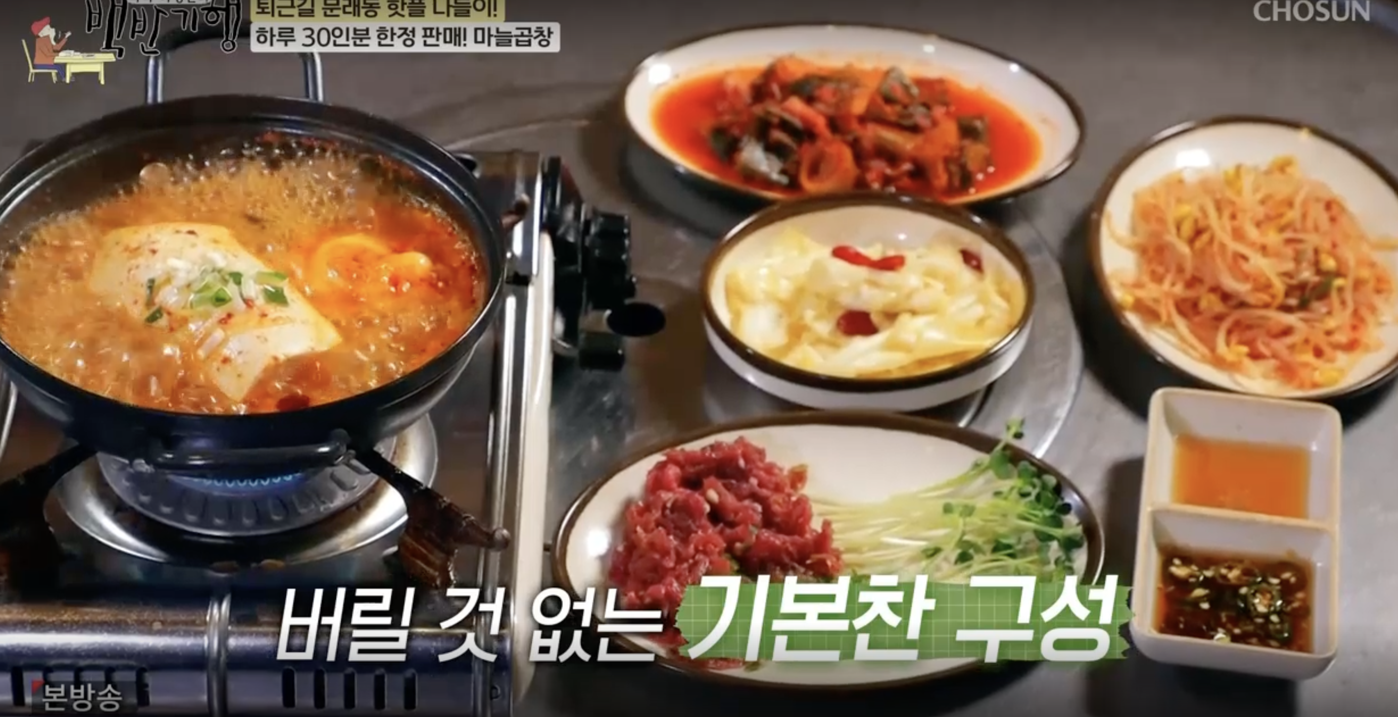 기본으로 나오는 찬이 예사롭지가 않다. 순두부찌개와 육회가 무려 서비스다. 이 반찬으로만 술 한 병을 뚝딱하는 애주가들을 많이 볼 수 있다.