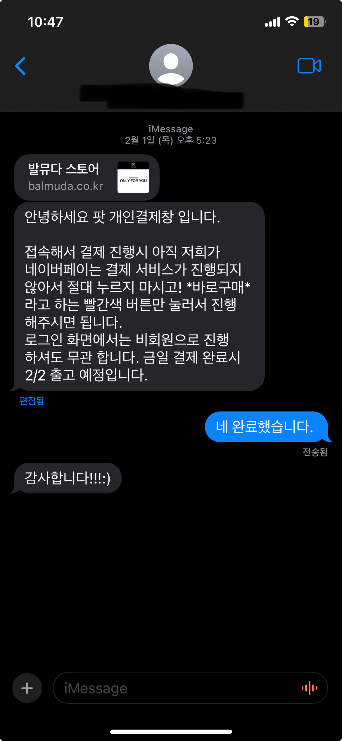 - 지불 방식 : 문자로 개인 결제창을 보내주면 그 링크에 들어가서 결제를 진행하는 방식