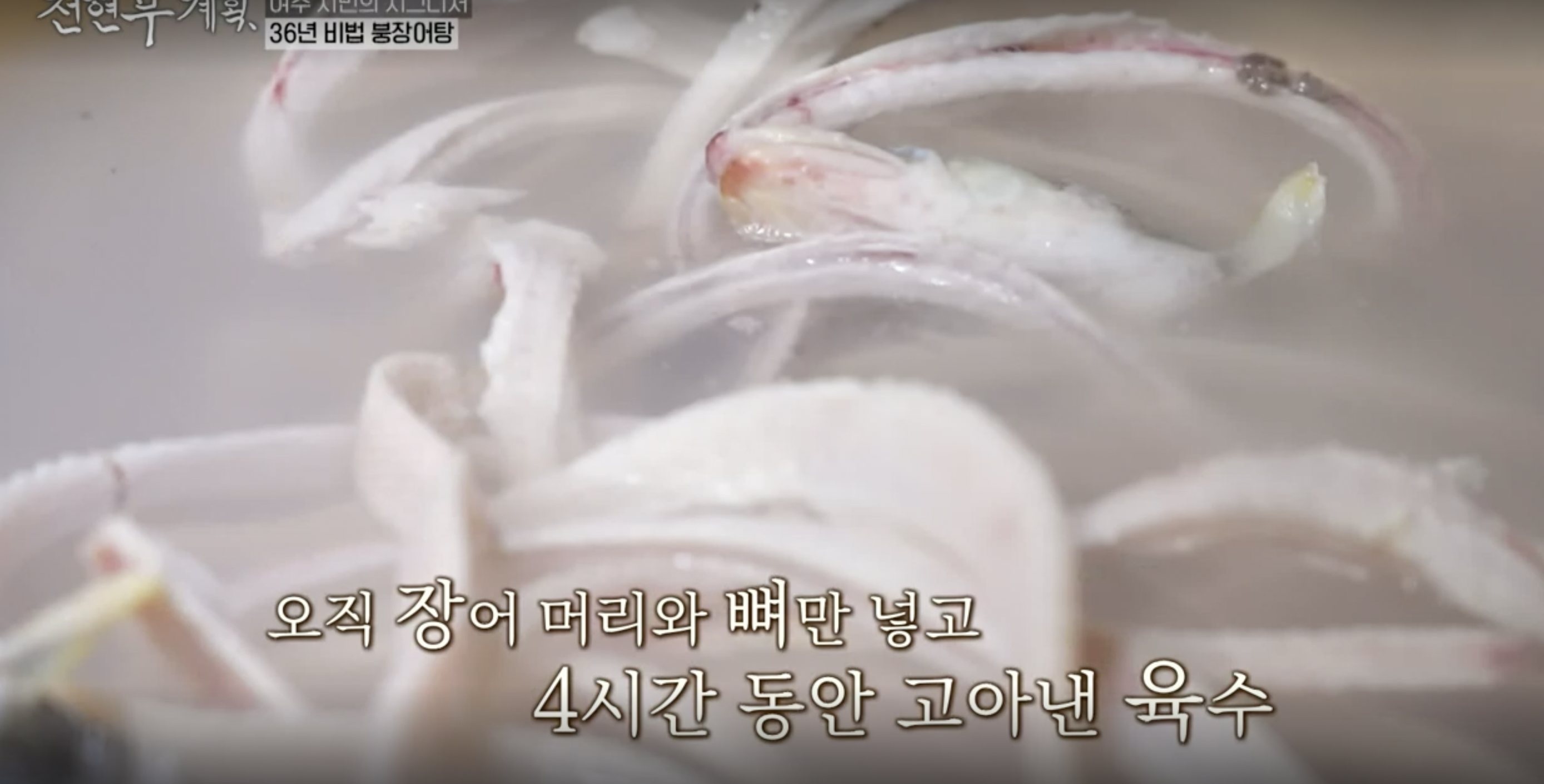 장어머리와 뼈를 4시간 동아 뽑아낸 육수가 베이스다.