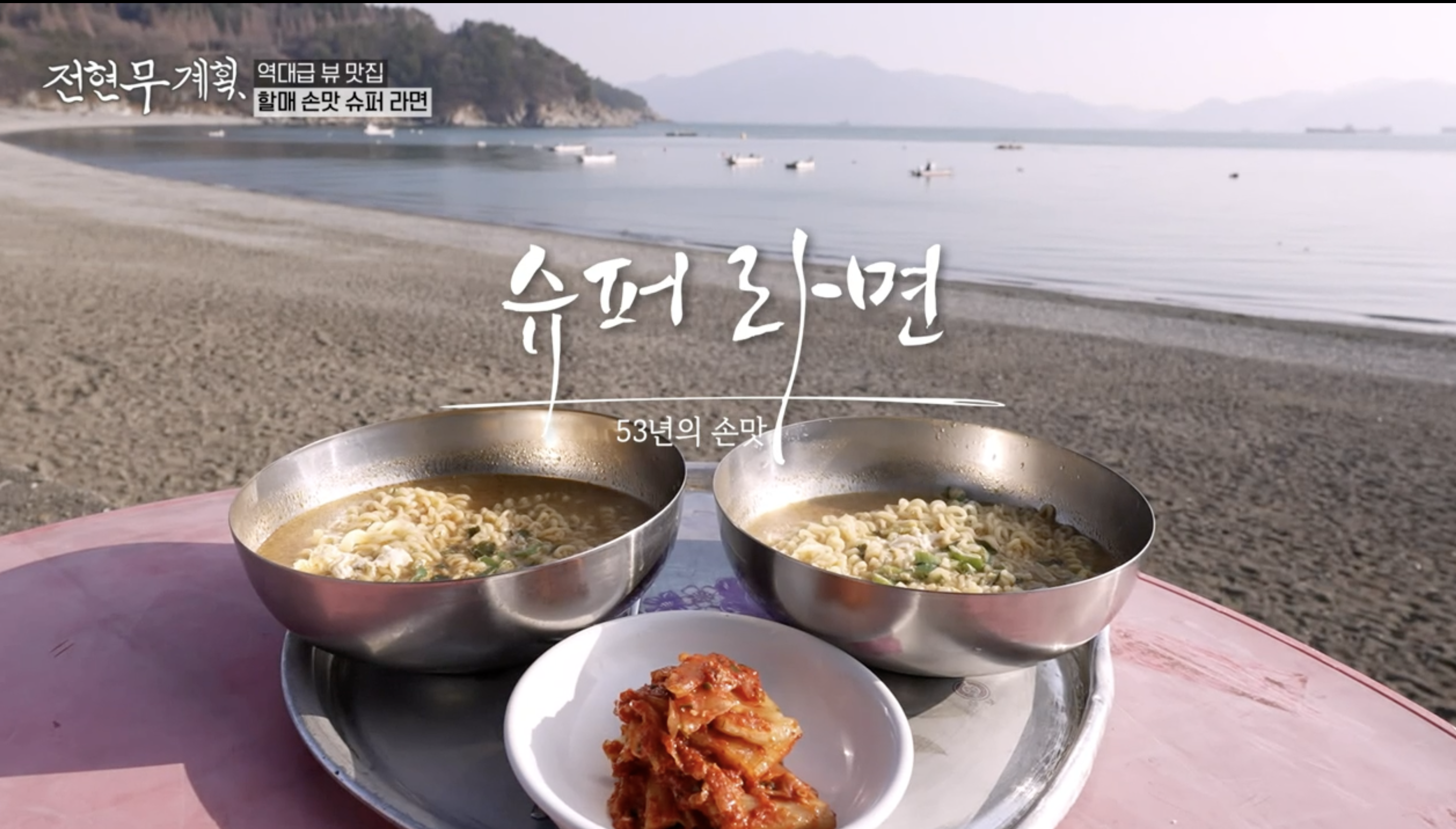 너무 오래 장사를 하셔서 손가락이 아프셔서 이제는 라면만 판매중이라고 한다. 메뉴는 라면이지만 김치는 명품이다. 나주배로 만든 김치라 묘한 맛을 느낄 수 있다. 앞에는 만성리 해변이 있어 뷰도 좋다.