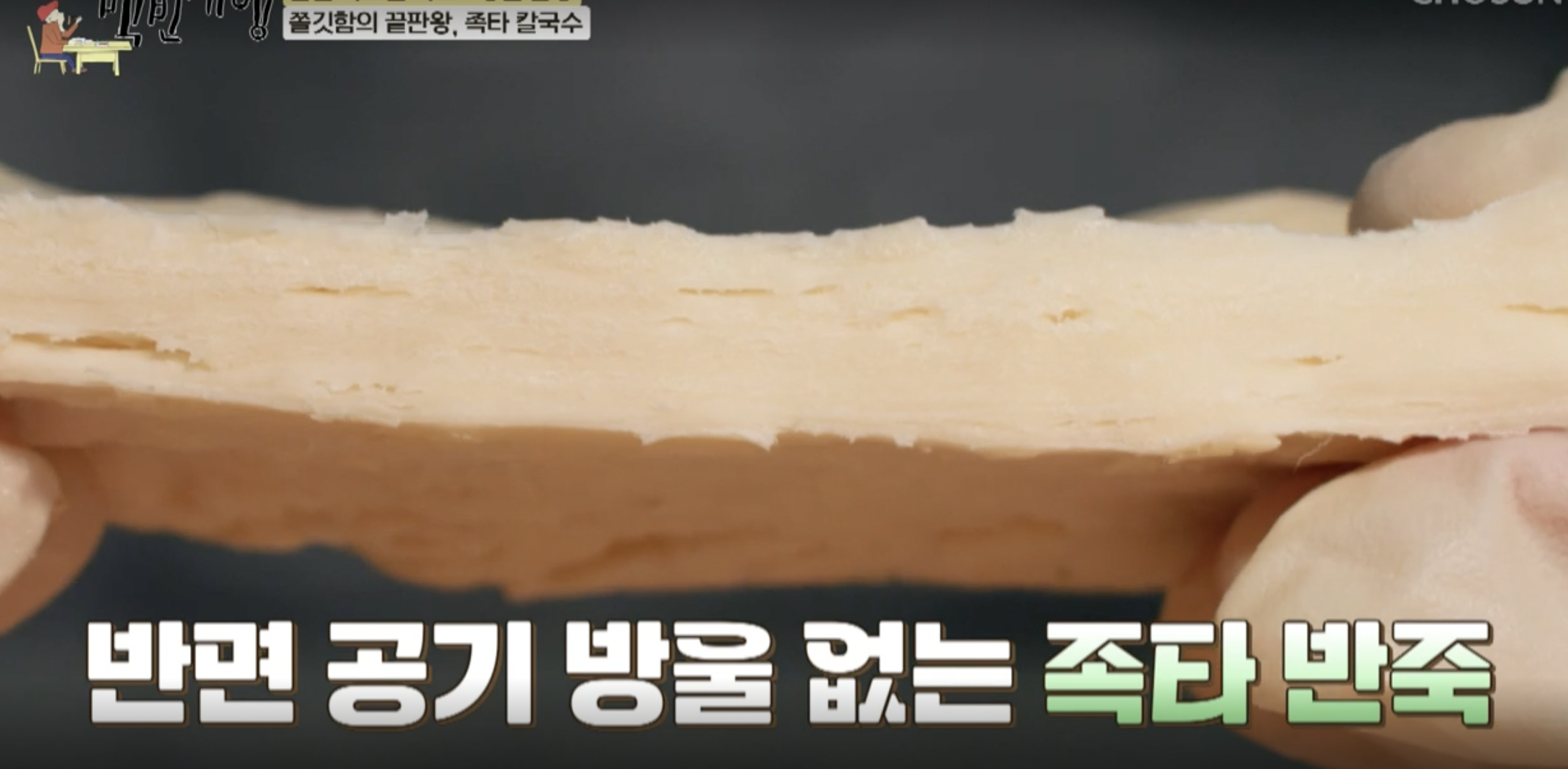 발로 밟아 공기를 빼내는 족타 칼국수.