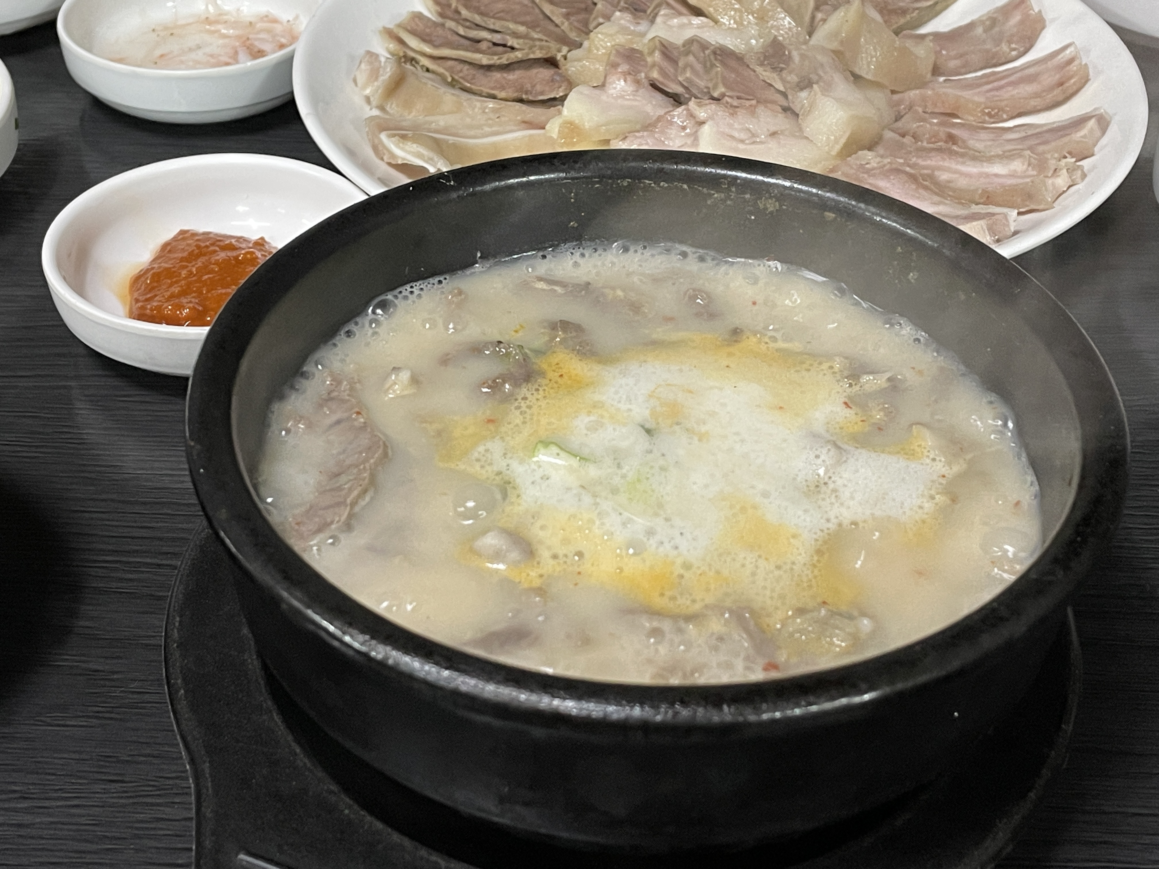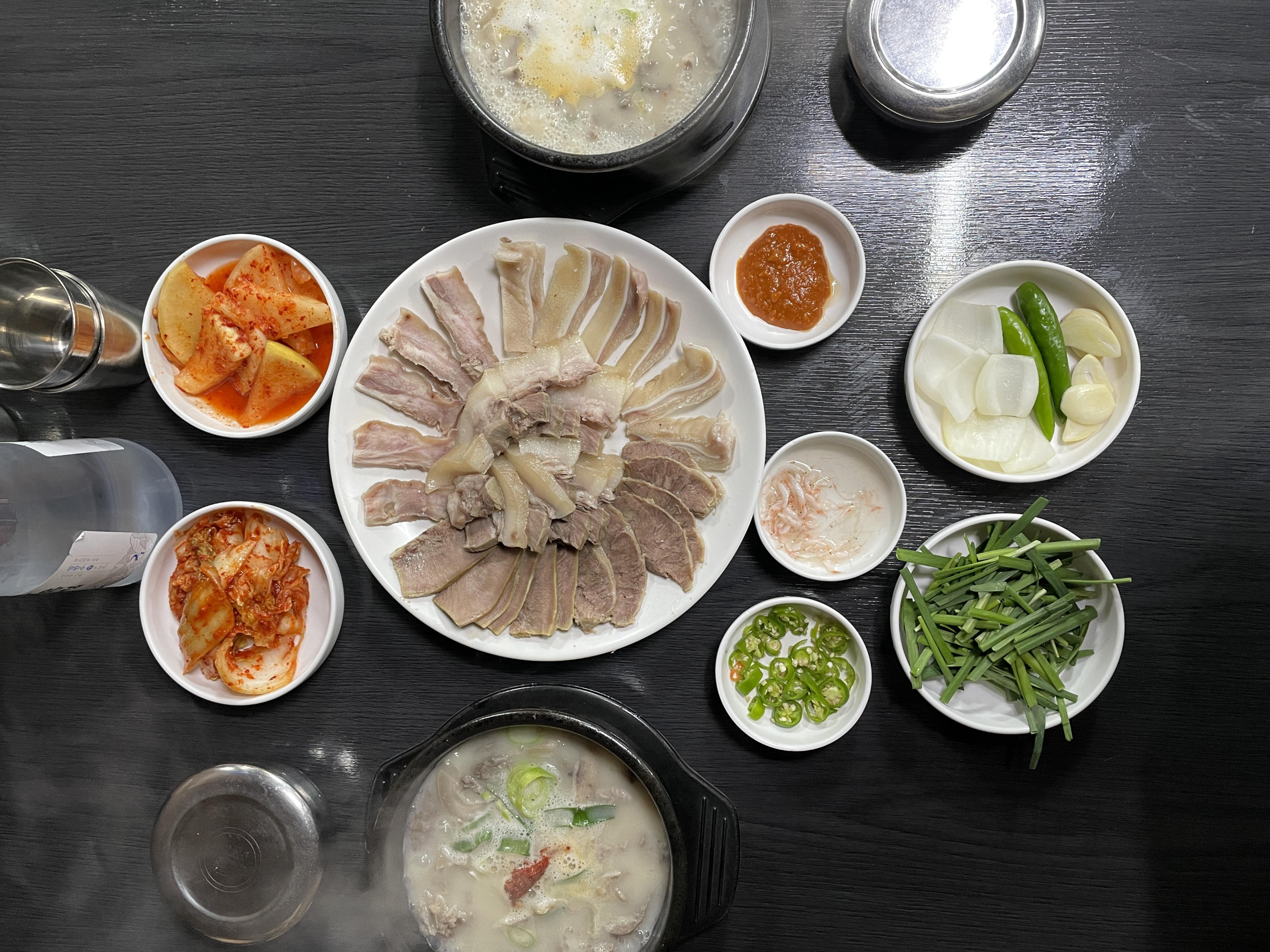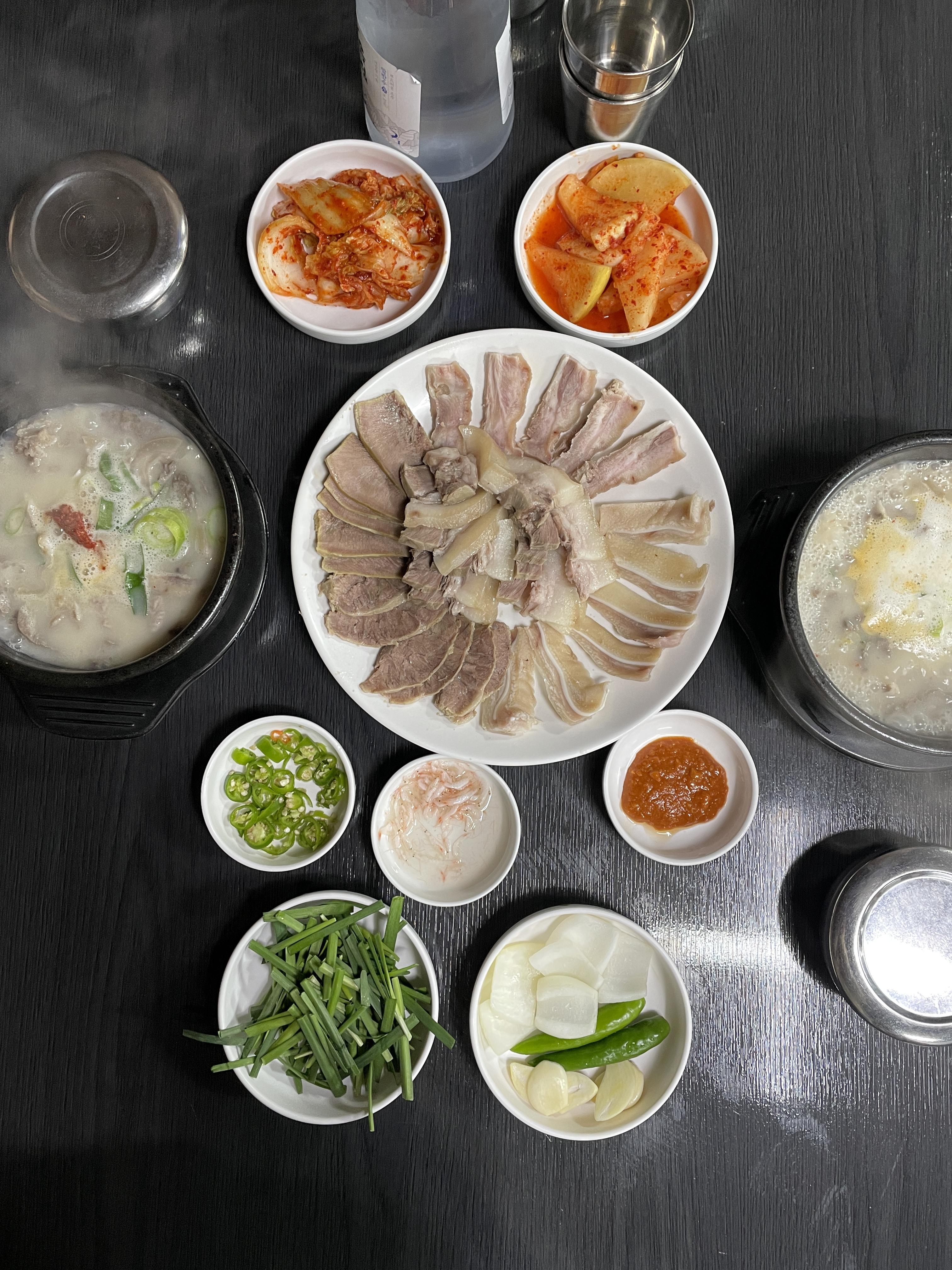 둘이 가서 이렇게 시키시면 2명이서 넉넉하게 드실 수 있습니다. 다대기 넣은 국물이라 수육이랑 같이 먹으면 조합이 좋네요.