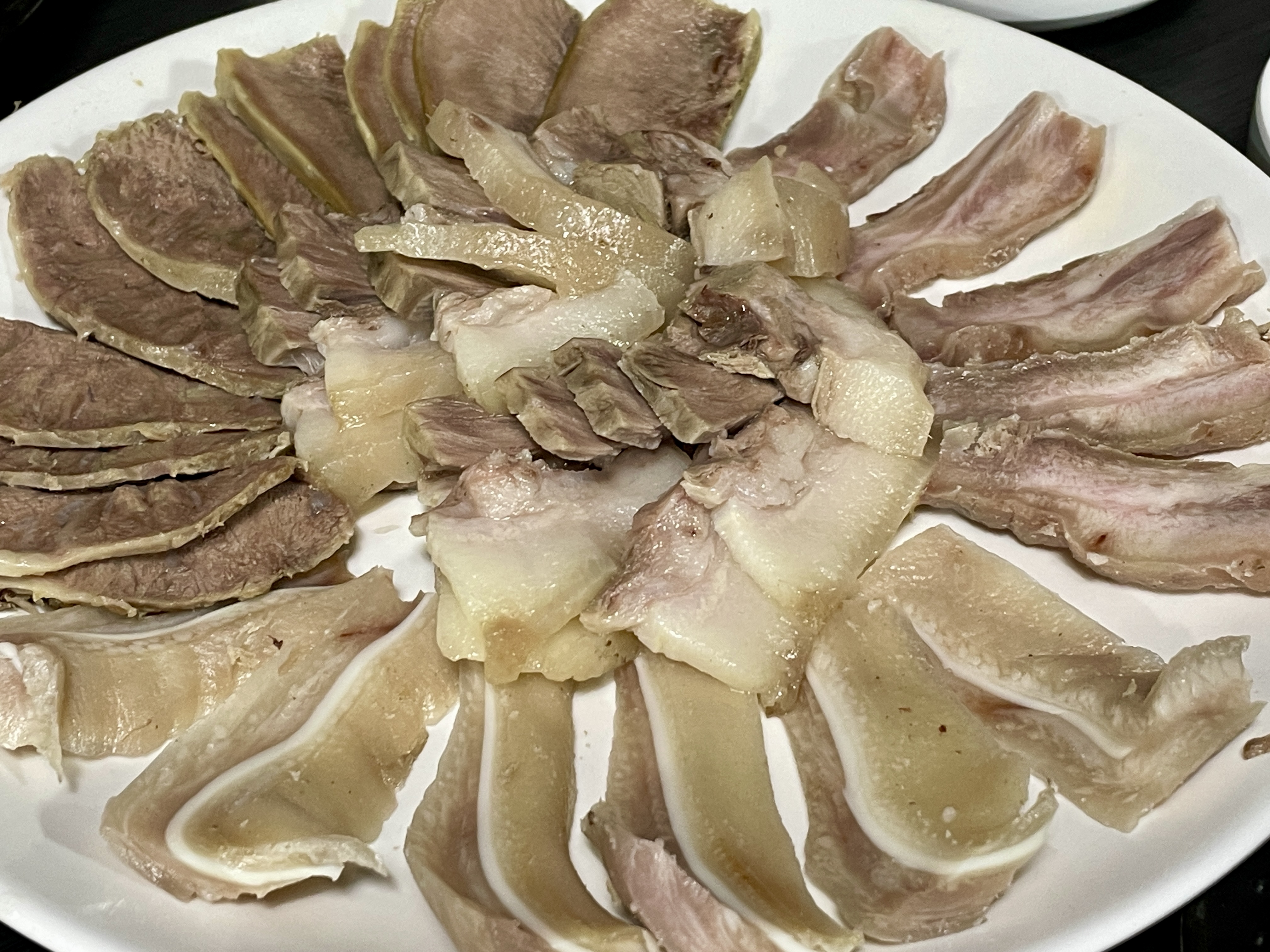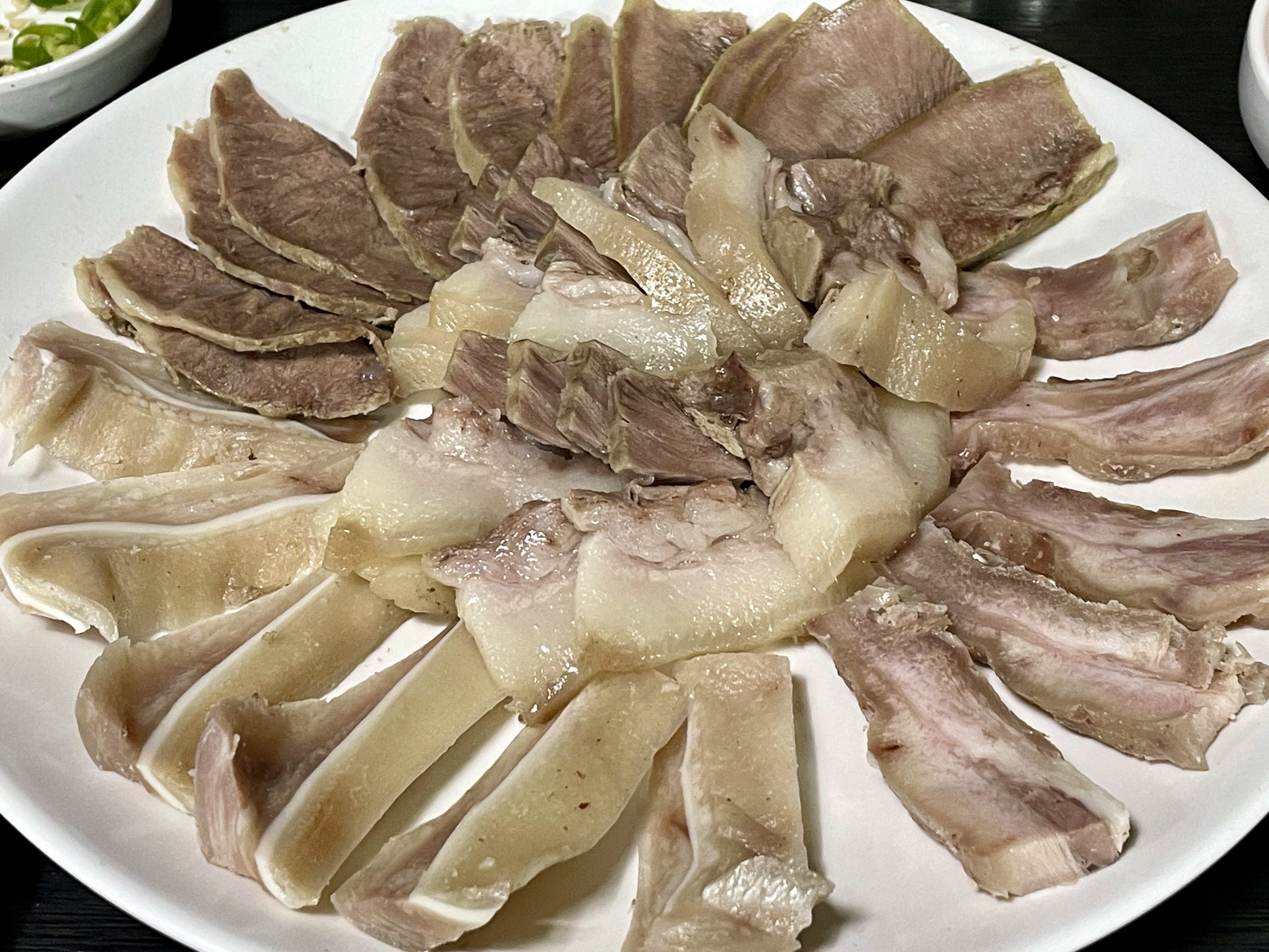 모듬 수육. 여러 가지 부위가 조금씩 나옵니다.