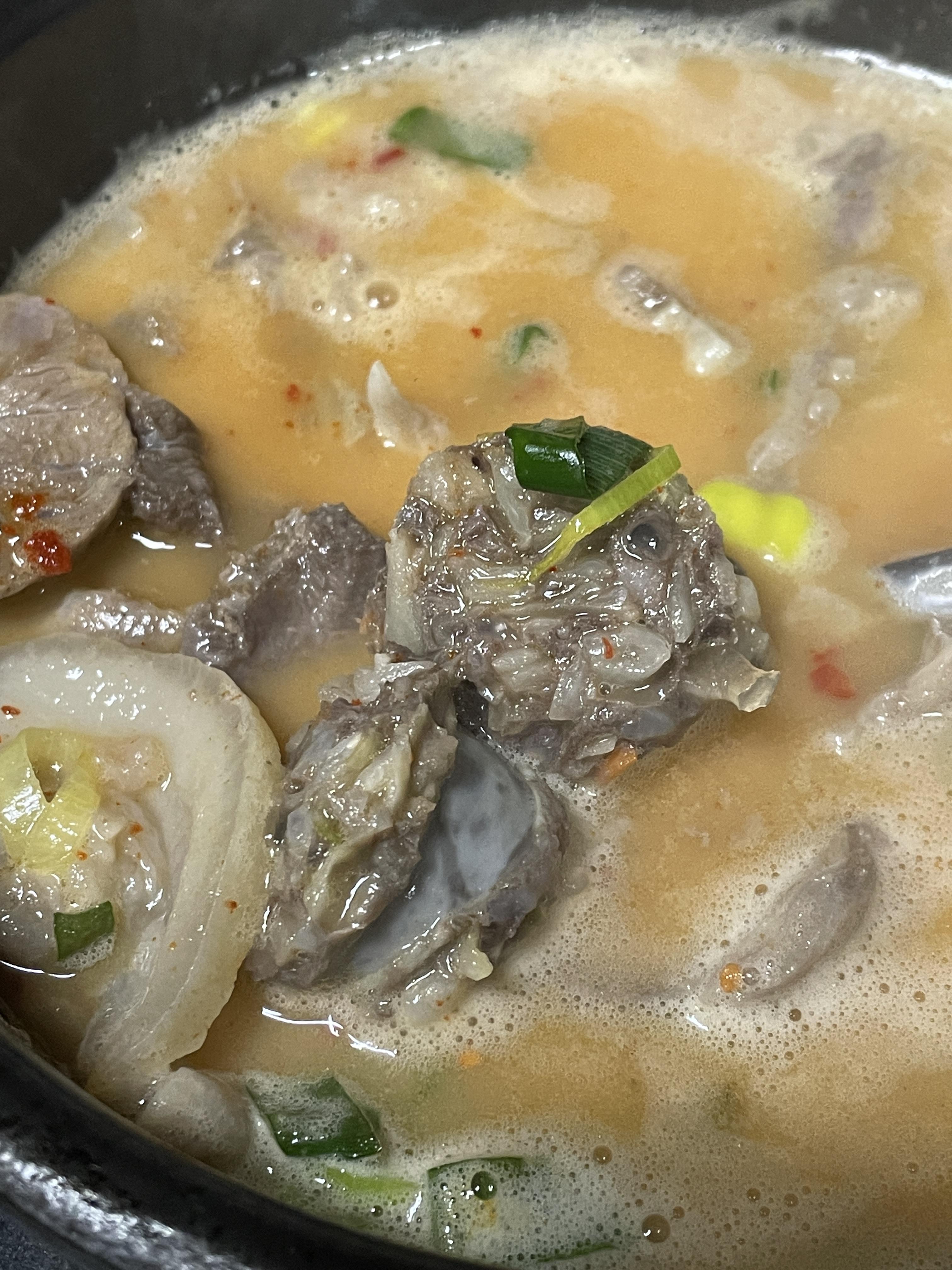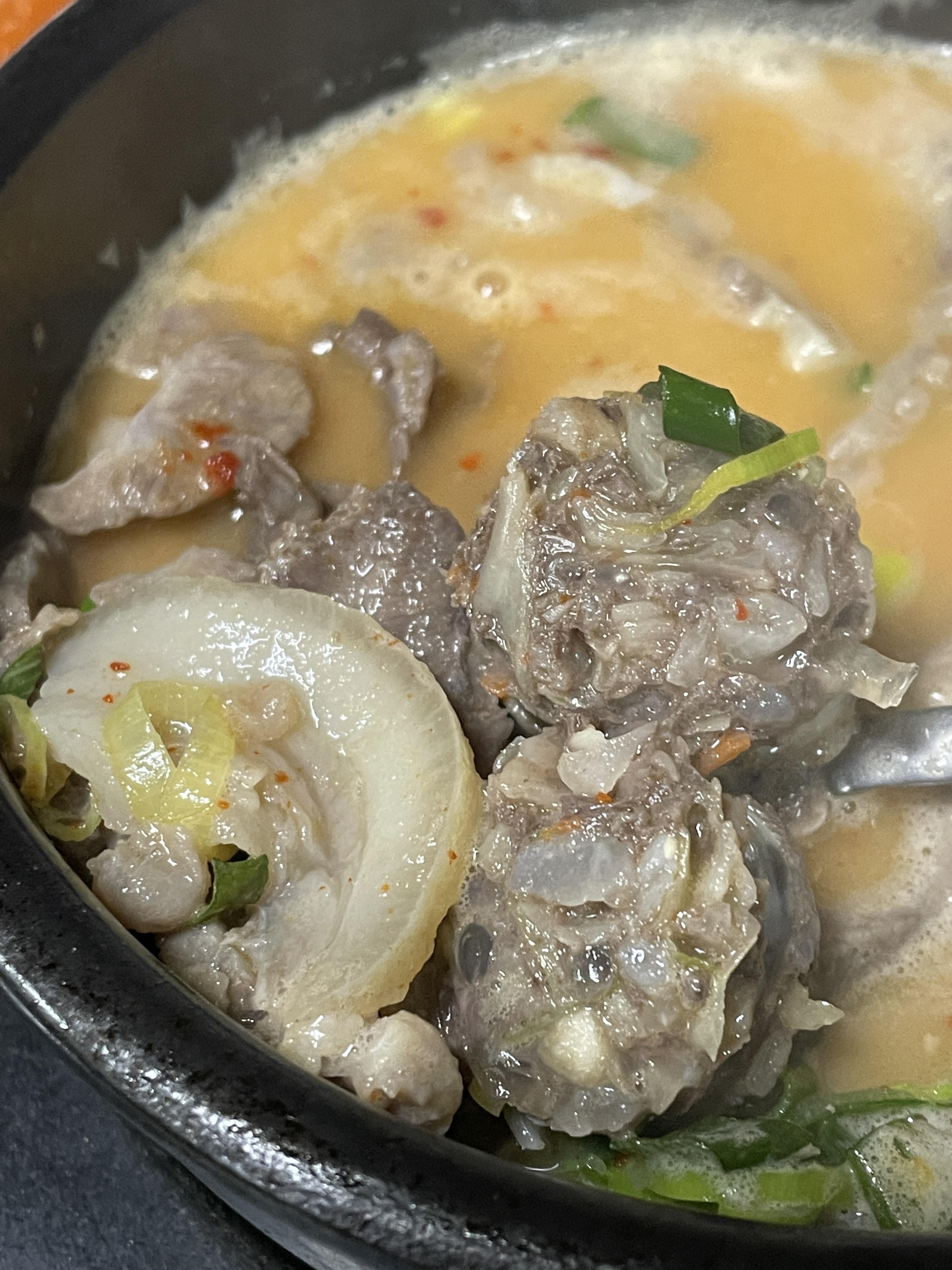 바글바글 끓여져 나온 순대국 국물 한 수저 하니까 기다리다가 차게 식은 몸이 좀 따뜻해집니다.