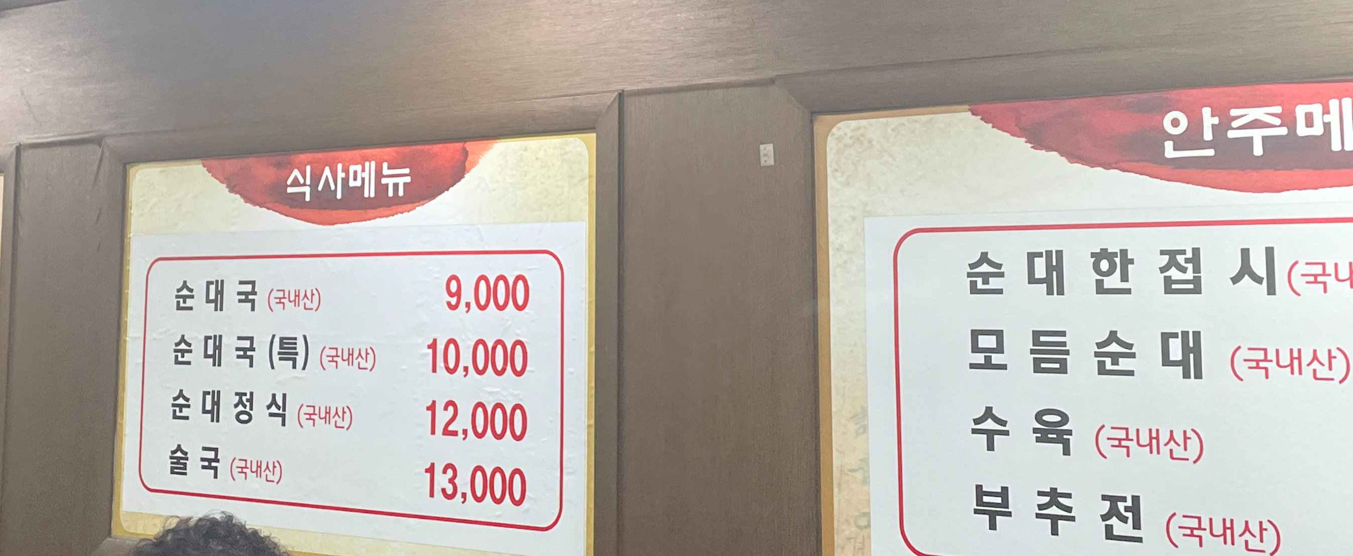 식사메뉴 외에도 순대한접시, 모듬순대, 수육, 부추전 안주메뉴가 있습니다. 저도 수육을 주문해 봅니다.
