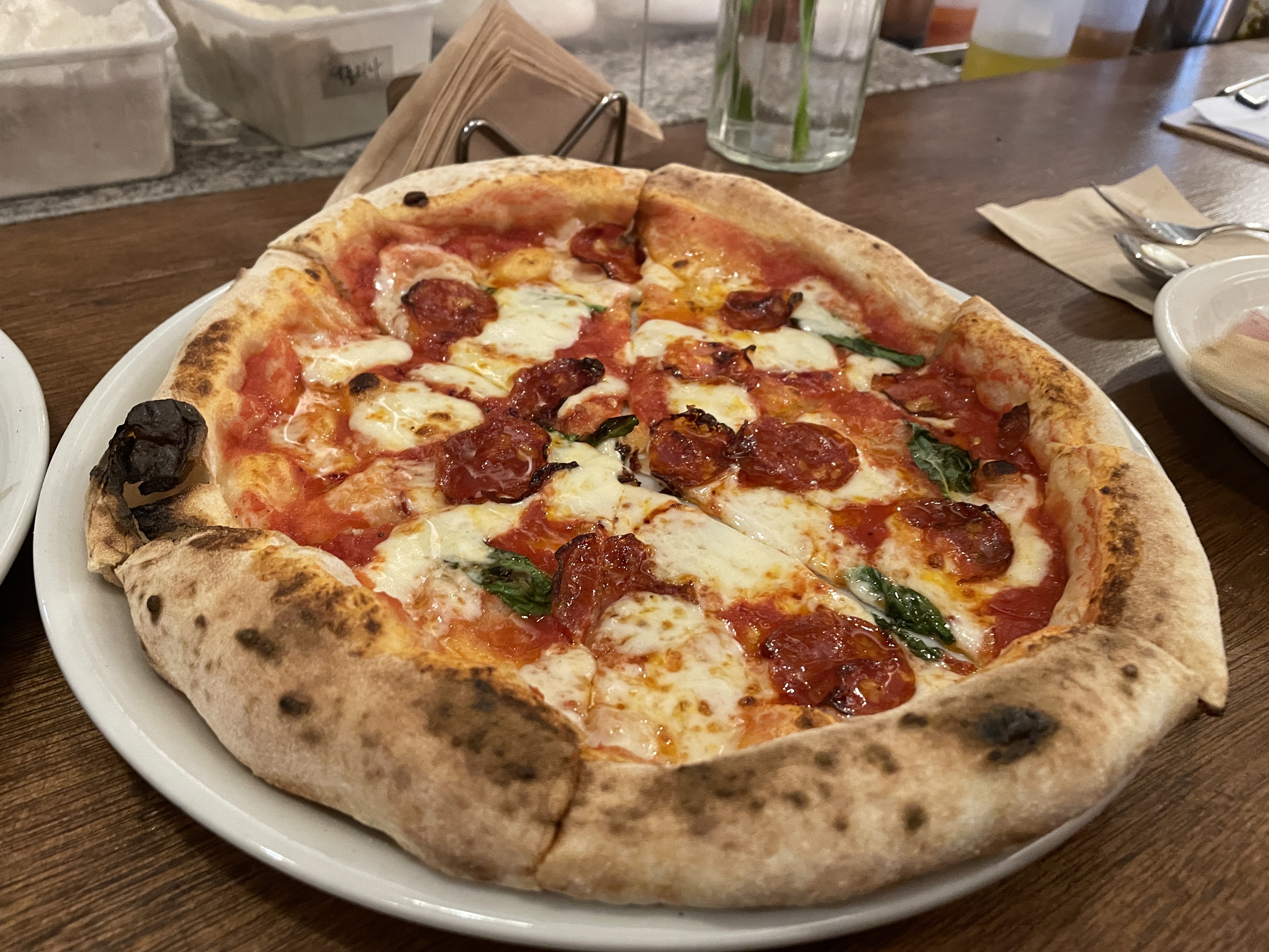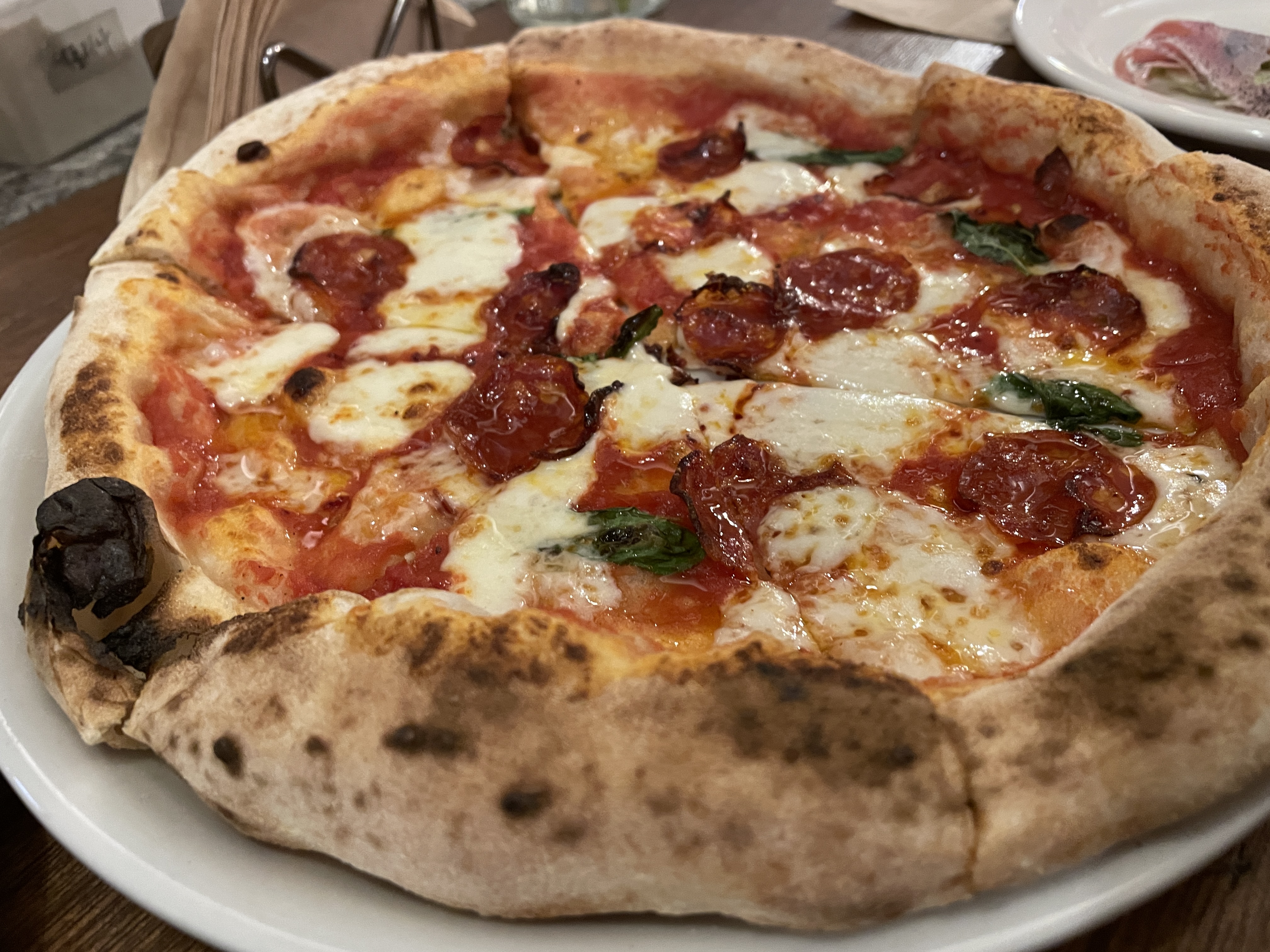 피자 종류가 많지는 않아서 대부분 주문하는 메뉴들이 비슷비슷하다. 이건 초리조 피자. 바질을 조금 더 올려주면 좋겠다고 마음속으로만 생각했다.