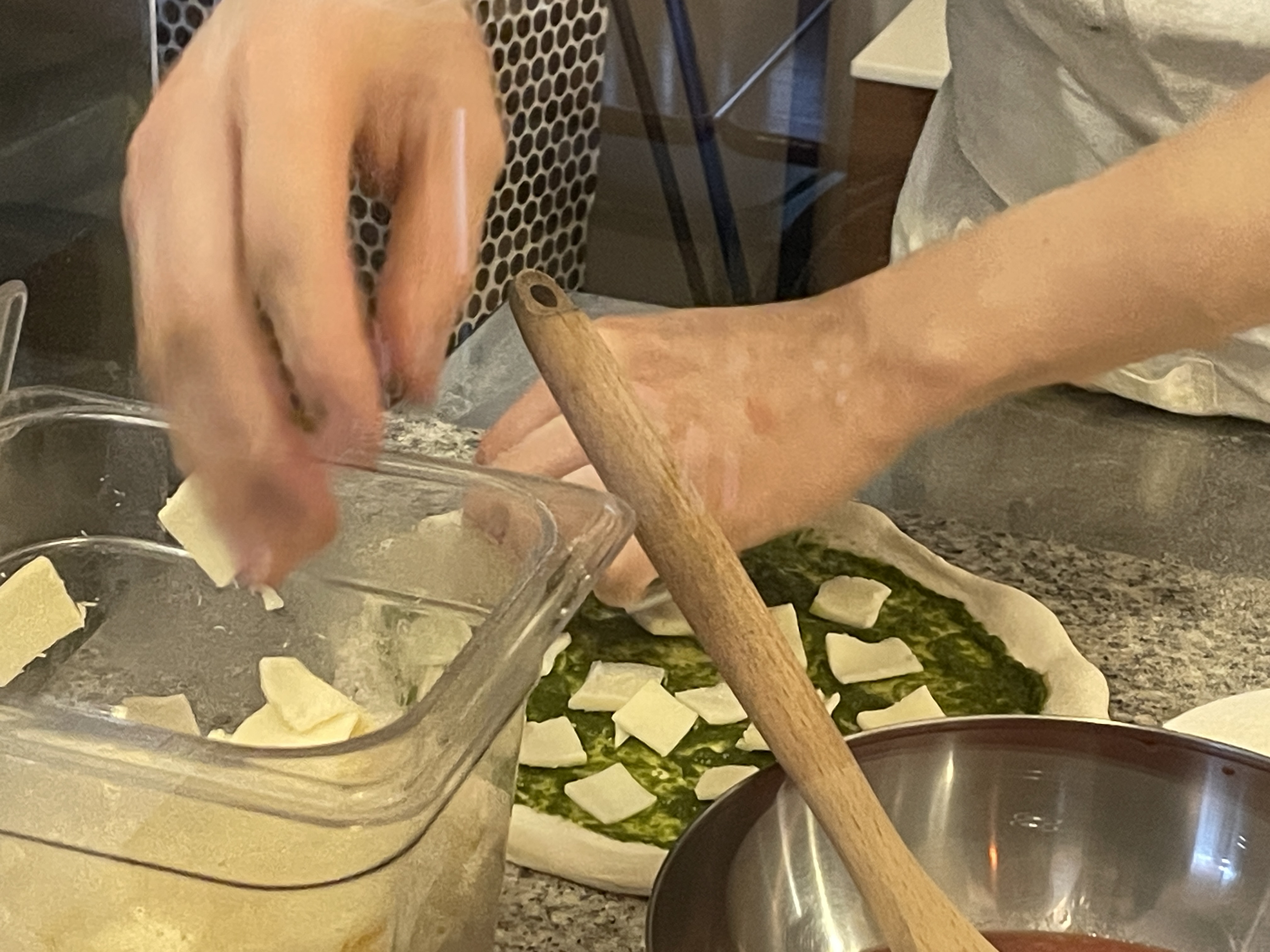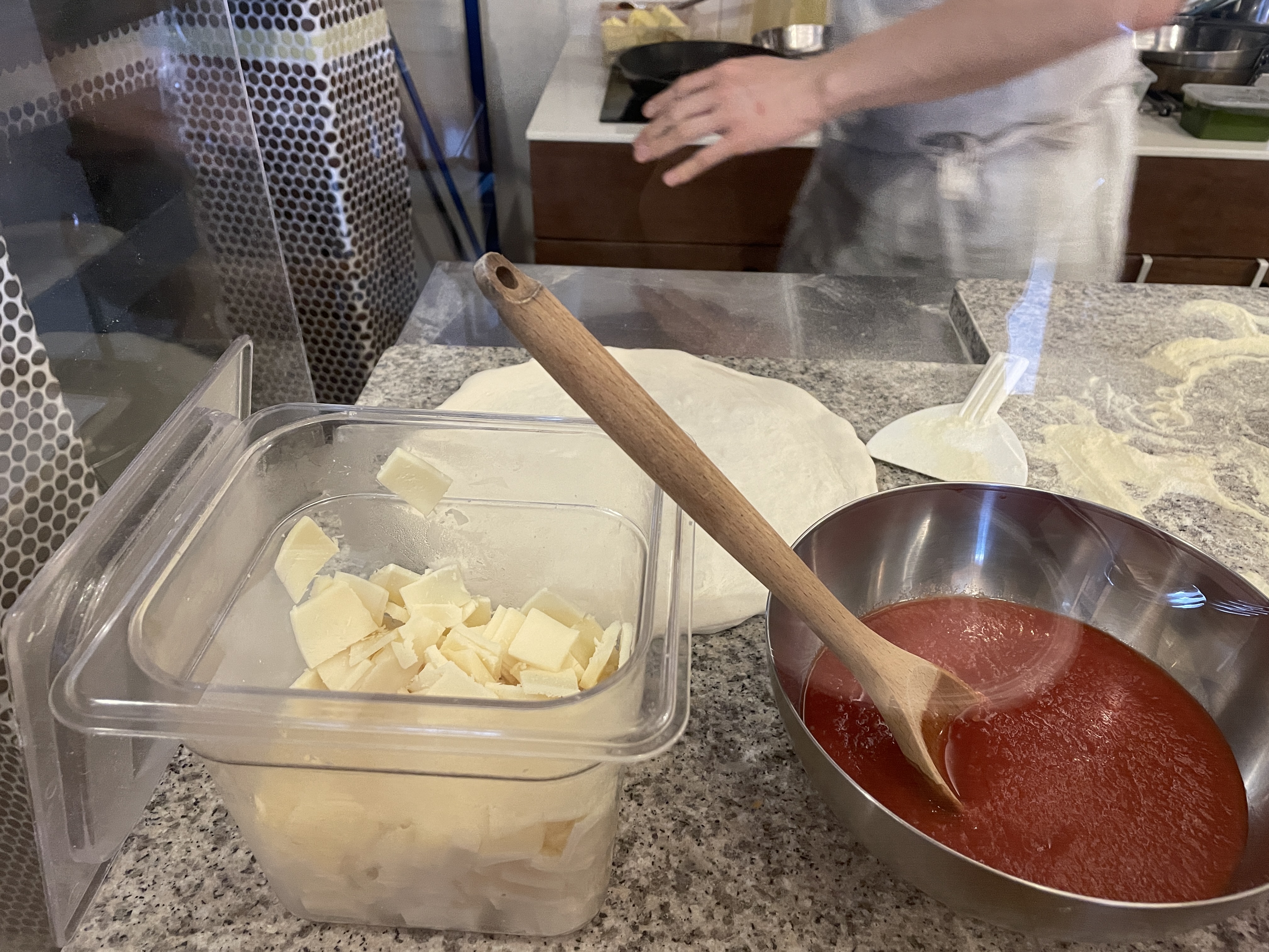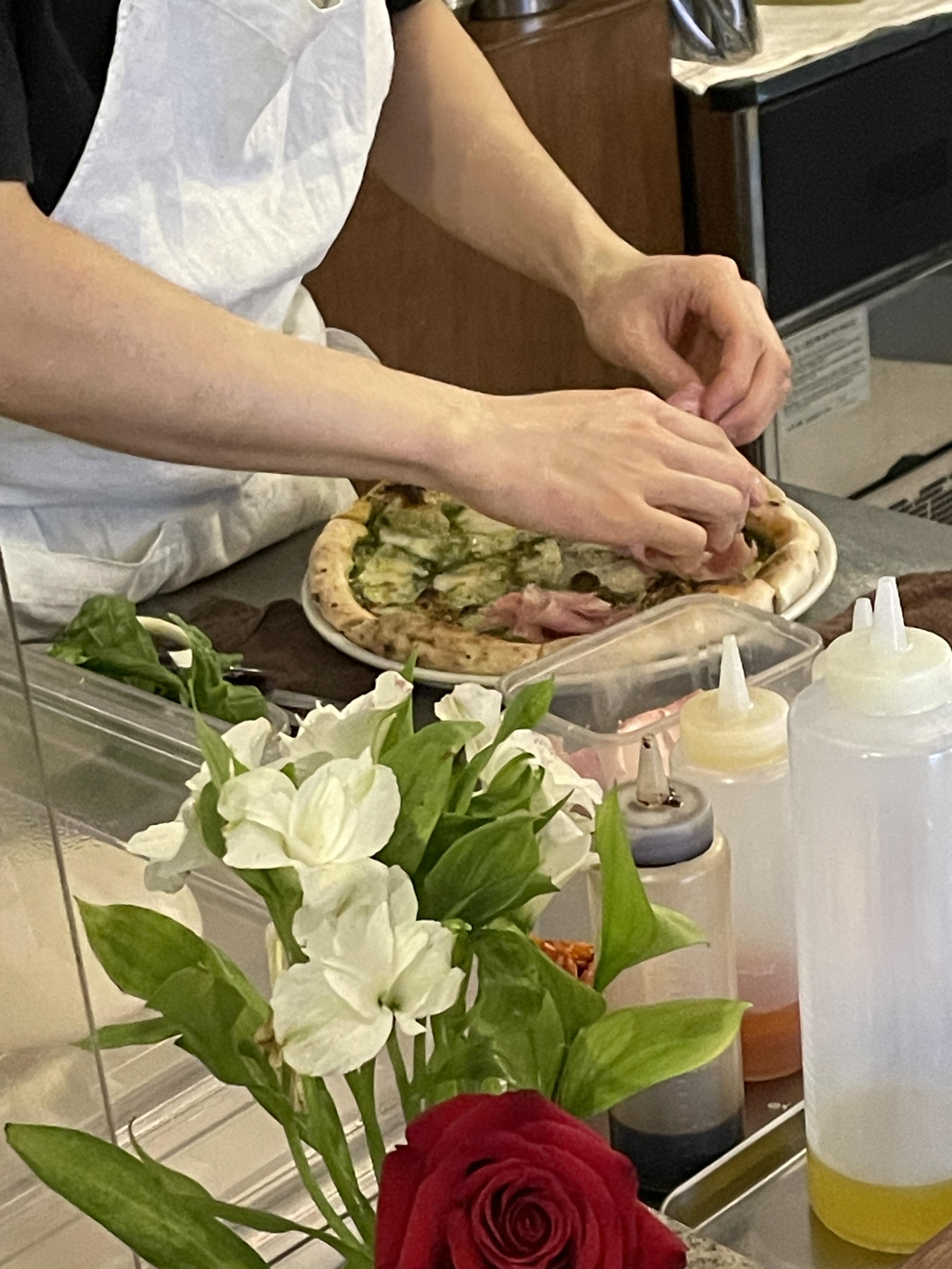 피자를 주문하면 세몰리아 깔고, 숙성된 도우를 하나씩 꺼내 피자를 만드시기 시작한다.