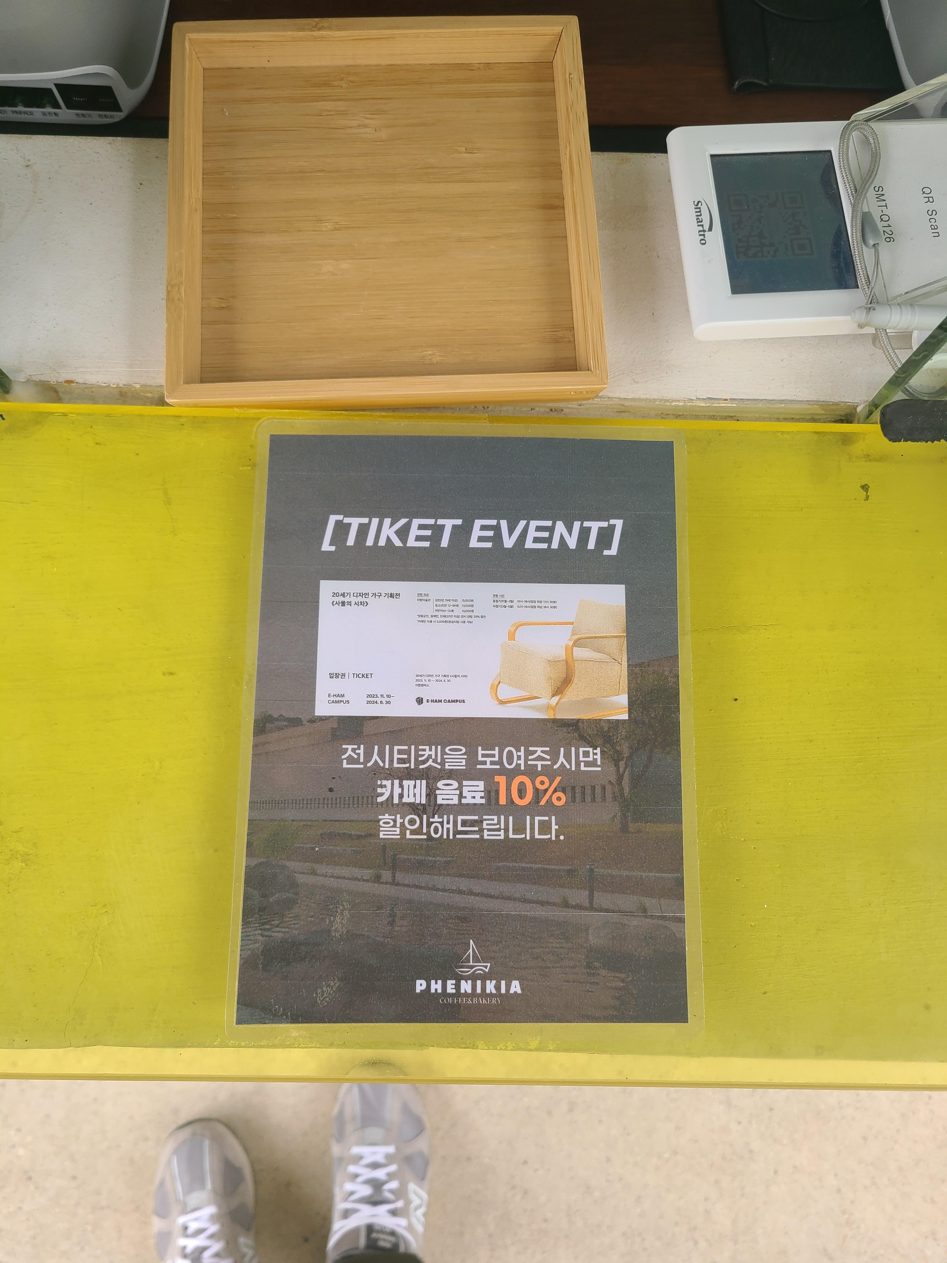 전시티켓을 보여주면 캠퍼스 안에 있는 카페 페니키아에서 음료를 할인 받을 수 있다.