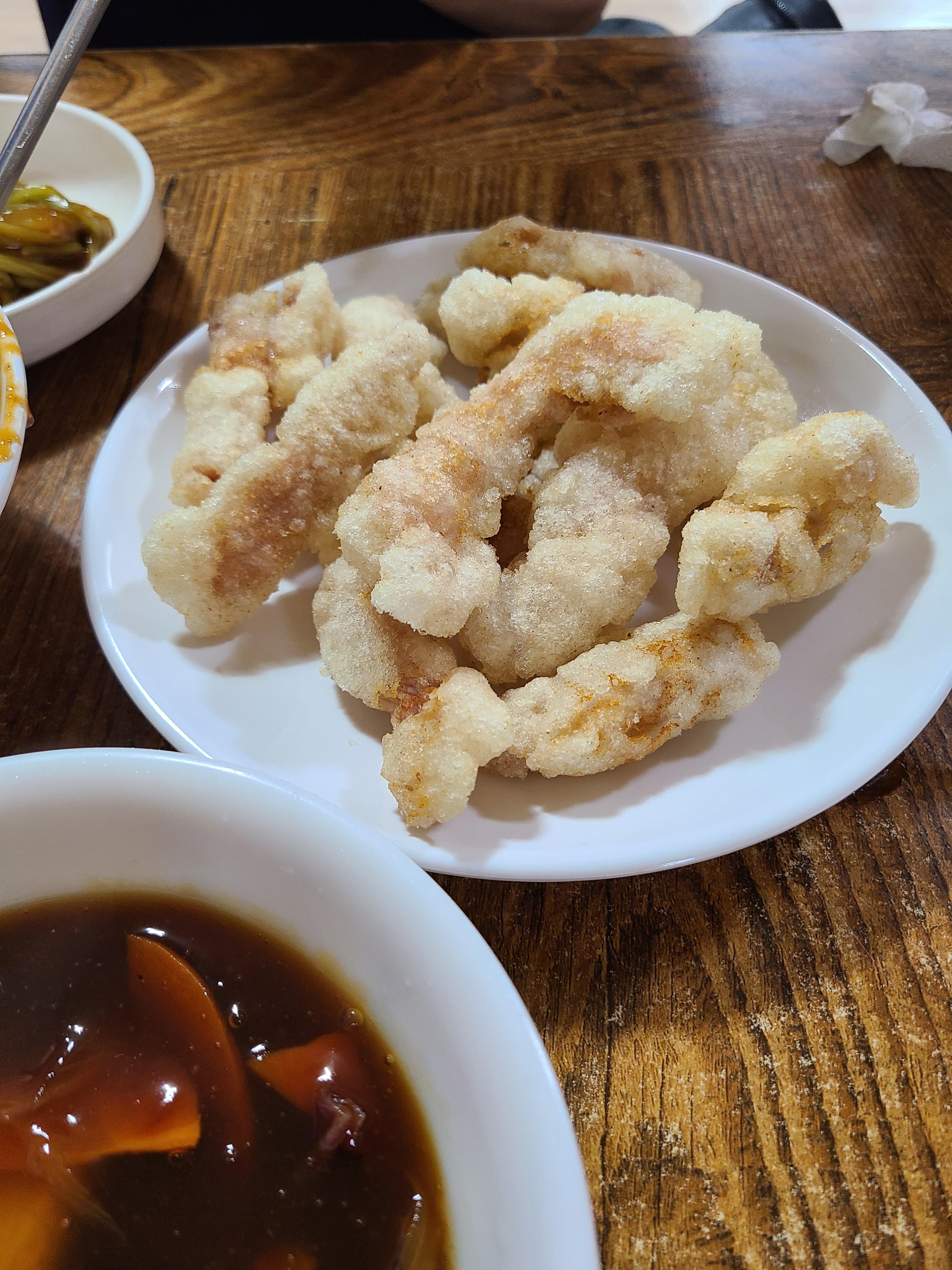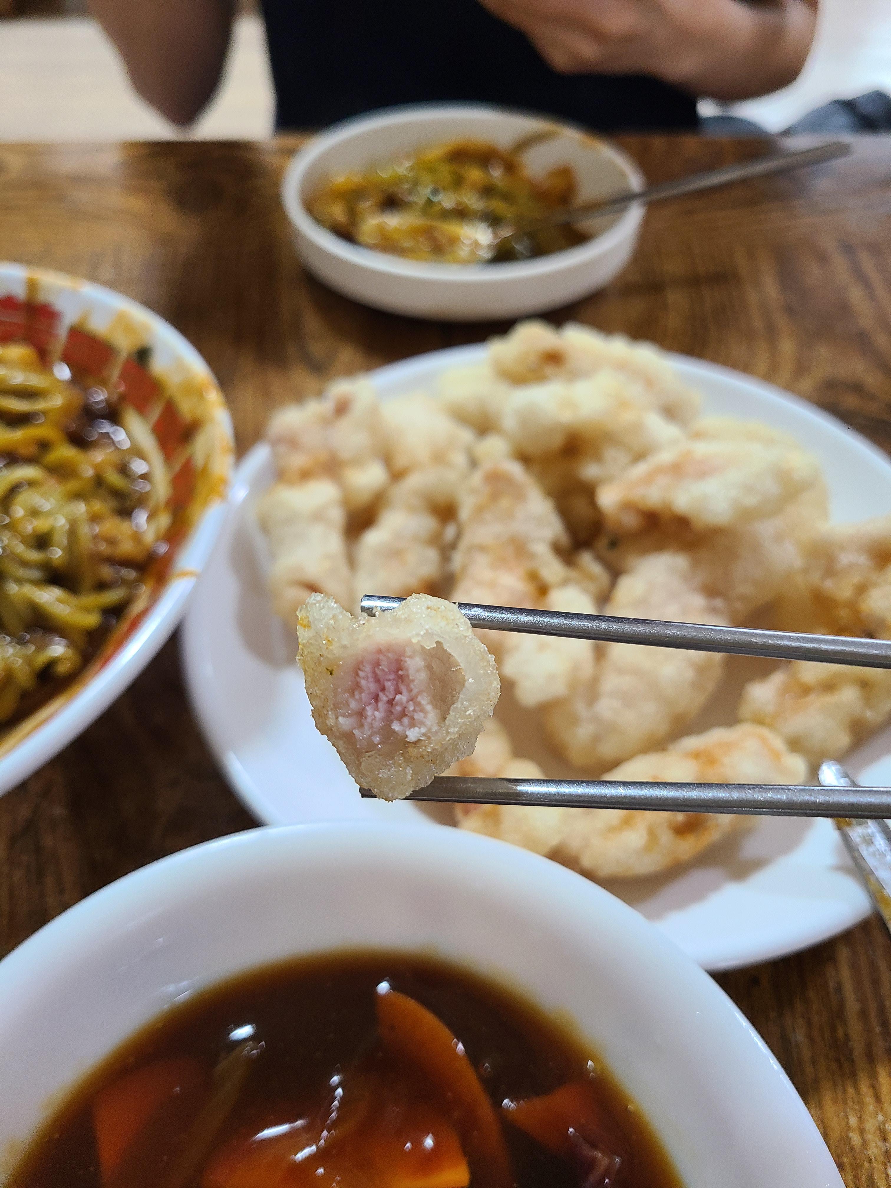 따뜻할 때 먹는 고기 튀김은 맛있죠. 반죽이 두껍지 않아서 마음에 들었습니다. 양이 많지는 않아서 딱 짬짜면 각 하나씩 하면서 곁들이기 좋은 양이었습니다. 부족하지는 않고 막 많지도 않은 적당함.
