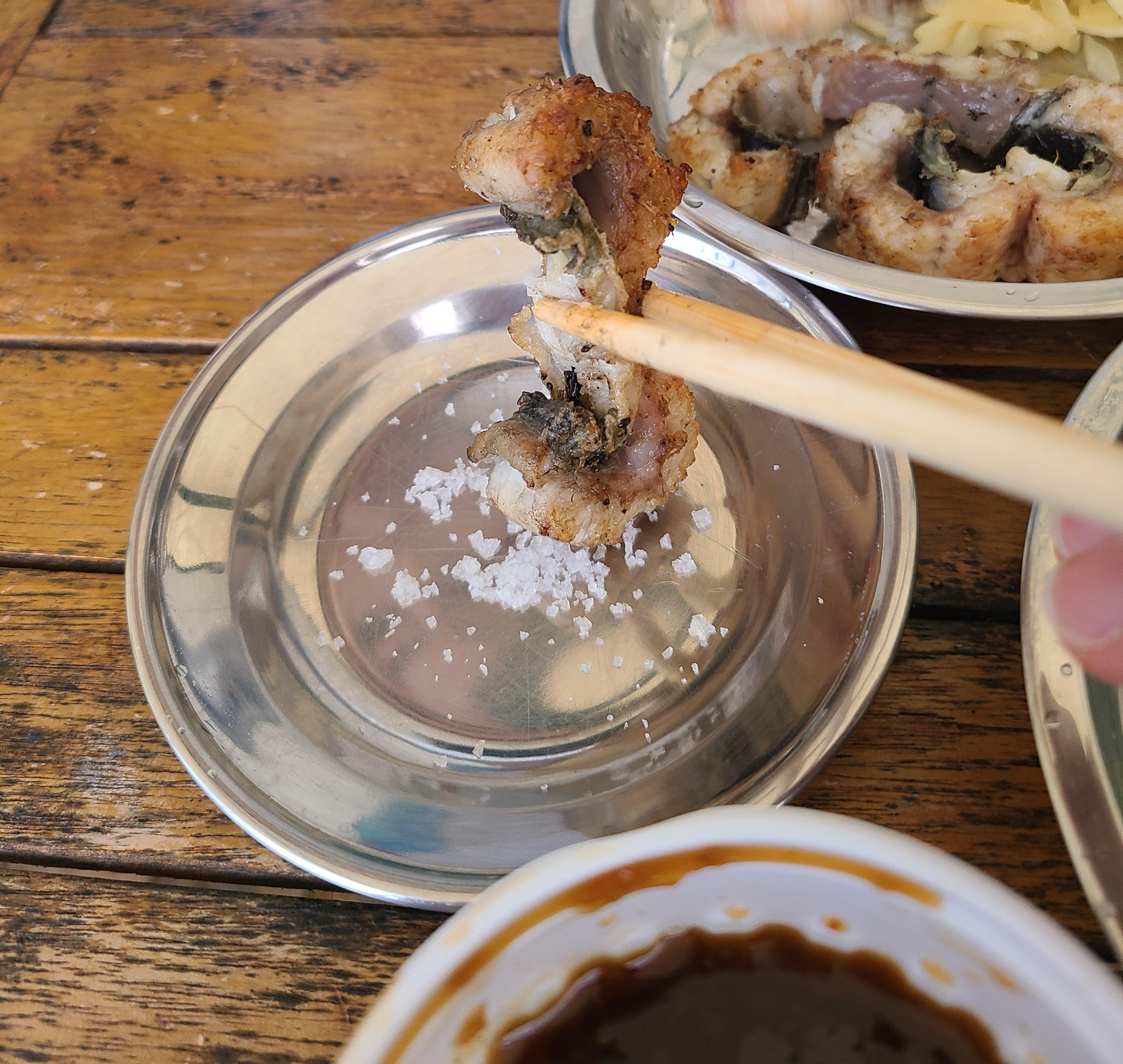 소금만 찍어도 맛있고, 함께 넣어주신 소스를 찍어도 맛있네요. 소스를 바르면서 구우면 더 맛있었겠지만 캠핑인지라 그냥 찍어 먹었습니다. 집에서는 붓을 이용해서 적당이 구워가면서 먹거나 장어 덮밥으로 먹어도 맛있을 것 같습니다.