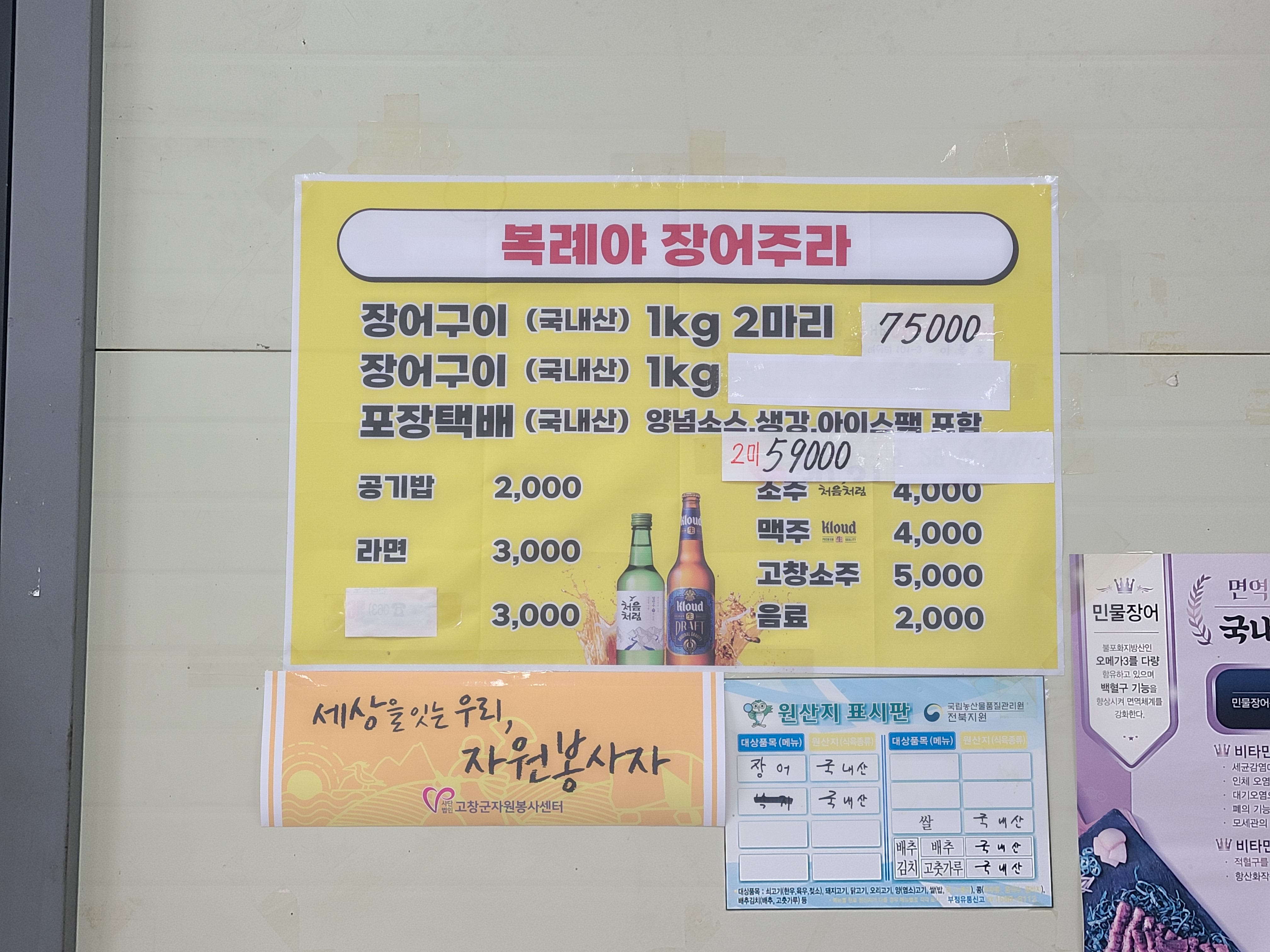 간판은 복례야장어주라였는데 지도에는 고창심원 풍천장어라고 되어 있고 장어 굽는 설명서에는 또 다른 상호로 되어 있어서