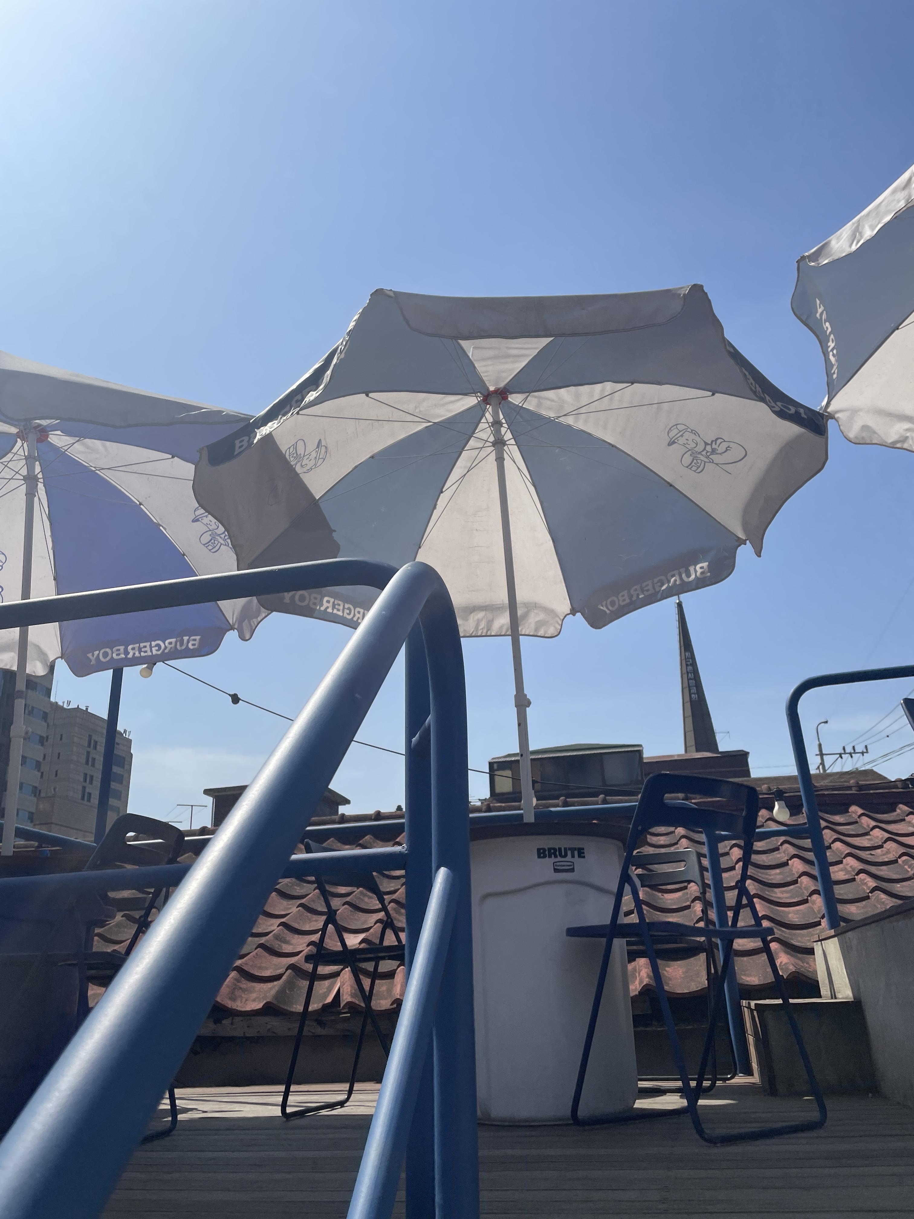 일단 요즘 날씨 좋으니 옥상에 앉는 것을 추천합니다. 넓지 않고 테이블 3개 뿐이지만 그냥 하루 종일 실내에 있으니까 점심만이라도 밖에서 식사하면 기분 전환도 되고 광합성도 하면 좋으니까요. 뷰는 뭐.. 건물과 지붕뷰이기는 합니다만, 따뜻한 햇살과 하늘을 보며 먹으니 햄버거 맛도 상승합니다.