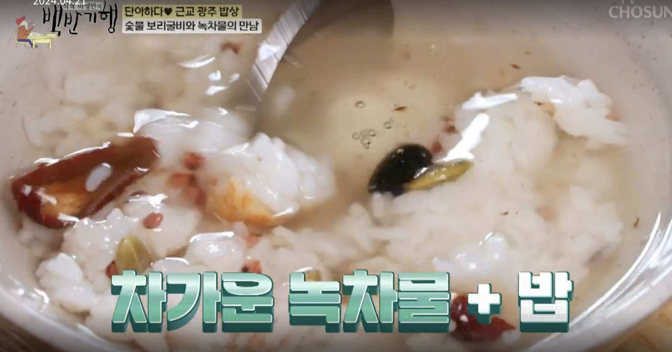 절대 빠질 수 없는 차가운 녹차물! 녹차물에 밥을 말아 보리굴비와 한 입하면 환상 조합. 40년 된 이 집의 노하우를 경험할 수 있다.