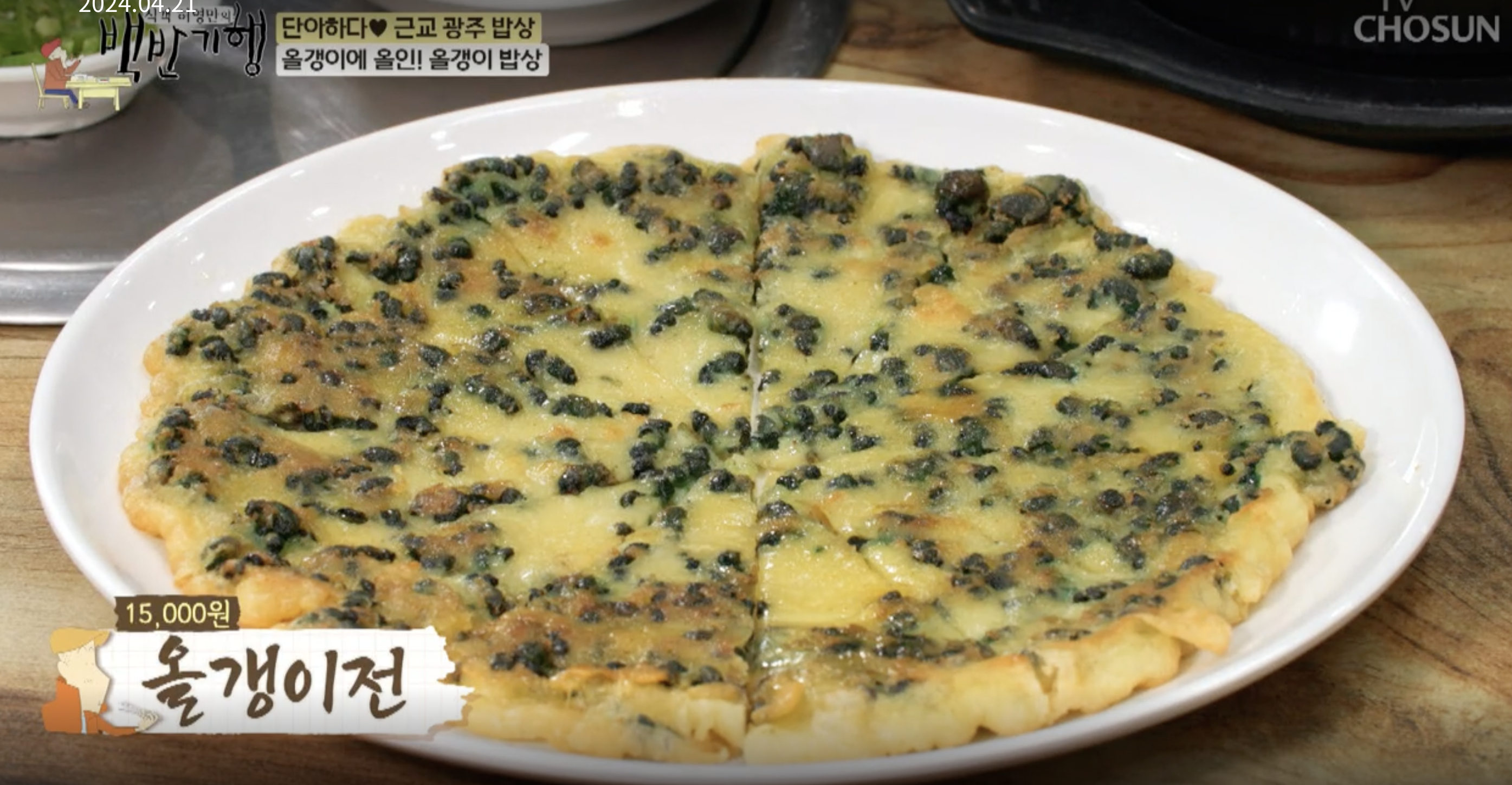 식감이 바삭한 올갱이전. 올갱이의 쌉싸름한 맛이 매력적인 전이다.